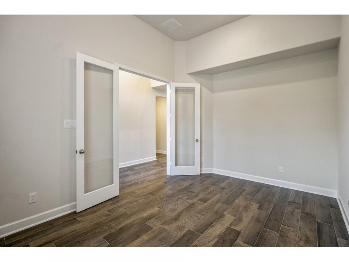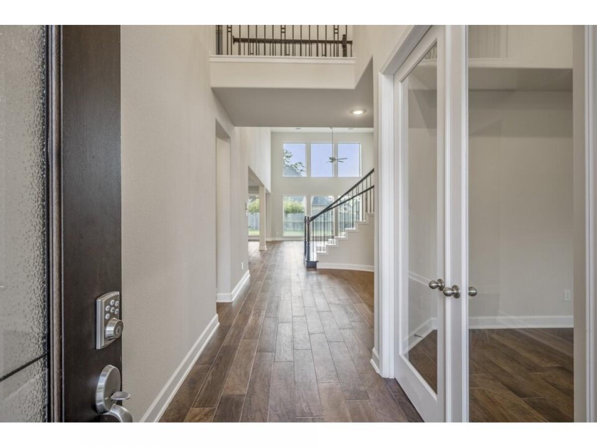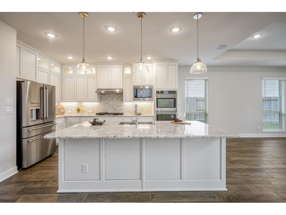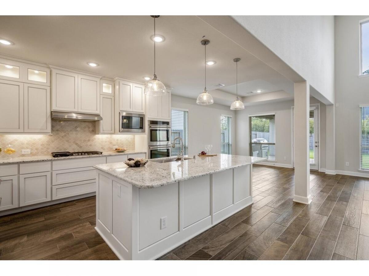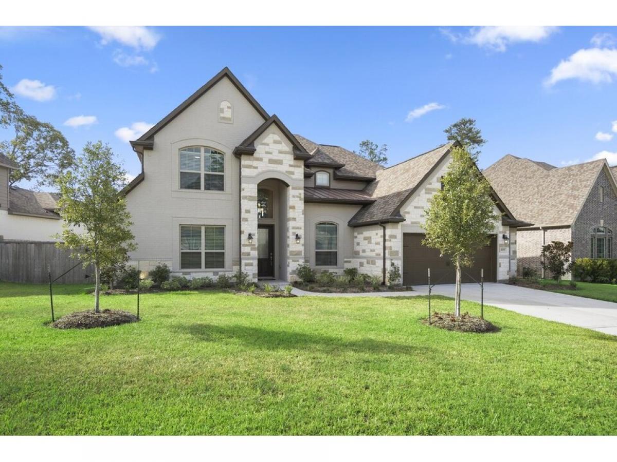 3 car tandem garage + side extension for extra storage PLUS EPOXY floors! Outdoor Kitchen and covered patio! Gourmet kitchen with upgraded appliances including Double oven, amp; microwave! Custom cabinetry w/ pull out trash, pots and pans drawers! lighted upper glass cabinets that extend to ceiling! Under counter lighting! Primary Bedroom + an additional secondary bedroom downstairs! Wood looking tile floors throughout living areas downstairs! Study w/ French doors! Circular stairs w/ Wrought iron balusters lead upstairs to a Game room, True Media room, 1/2 bath for guests when entertaining +2 more large bedrooms w/ Jack amp; Jill bath! Living room has wall of windows overlooking backyard + fireplace! Sprinkler System amp; Blinds are in! Move in ready! Woodtrace is a GATED community w/ a 23 acre lake for canoeing or Kayaking, walking trails, community pool amp; parks! Easy access to 249! Shopping just minutes away!