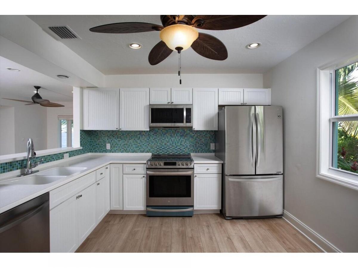 Simply stunning views from this Bay Front 3-Bedroom 2-Bathroom tropical retreat in Big Coppitt! This spacious split floor plan has ample room for entertaining and boasts large impact windows looking out over tranquil Open Water. Recently updated appliances, HVAC and flooring, and impact doors and windows are only a few of the interior creature comforts that beckon within, and the whole house provides a soothing island feeling. Out of the French doors, lush tropical landscaping adorns the private yard, highlighted by a sprawling travertine pool deck and a large heated saltwater waterfront pool for you to cool off after summer sun. Approximately 185amp;apos; of concrete seawall and dock, including a three-sided step down, affords space to comfortably host several vessels, and the open water of Jewfish Basin is only minutes away by boat. The separate pool house is perfect for storing all your water toys, and is nestled on the North side of the property marking entry to a serene garden path. Fully fenced-in, including charming coral rock wall with bamboo entrance gate, and 100amp;apos; concrete wall opposing, the yard exudes privacy, even as you are just minutes from all the action in Key West. The rare attached 1-car garage offers bonus storage for your tools or toys, and keeps your vehicle out of the elements. Excellent options for dining and drinks are within close proximity, as well as access to two public boat ramps on the island, further adding to the allure of this one-of-a-kind Lower Keys oasis!