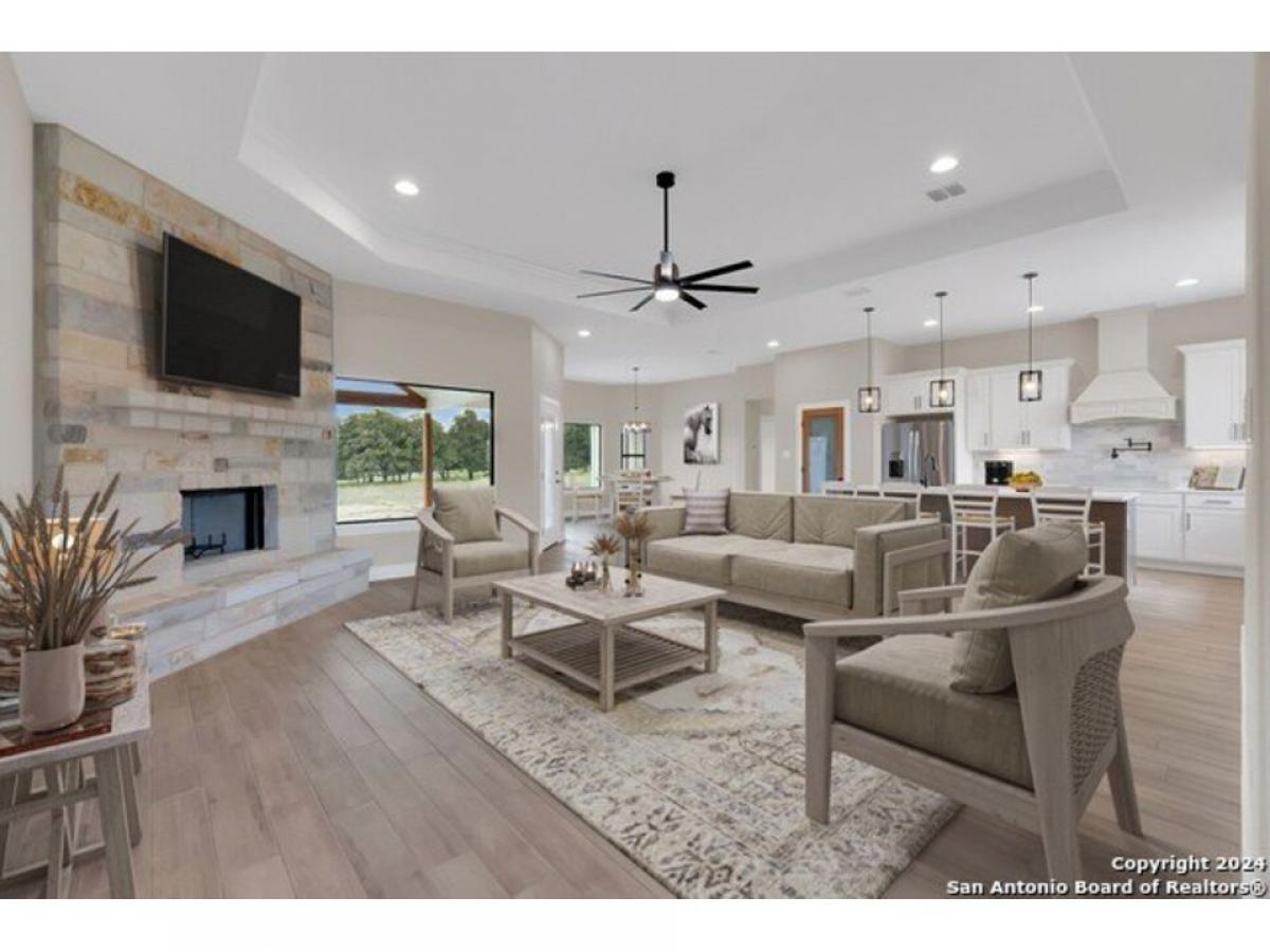 OPEN HOUSE-**SUNDAY MARCH 30TH FROM 12PM TO 3PM AND APRIL 6TH FROM 12PM TO 3PM!** Amazing lender incentives await on this incredible dream home at 101 Hondo Vista, nestled in the serene setting of La Vernia, TX. This stunning brand new construction modern farmhouse-style abode is perfectly designed for families who cherish both comfort and elegance. As you step inside this magnificent 4-bedroom, 3-bathroom house, you#039;re greeted by the warmth of wood look ceramic tile flooring that flows seamlessly throughout the home. The heart of this residence is undoubtedly the spacious living area, featuring a large natural stone wood-burning fireplace that sets the stage for cozy family gatherings. The open-concept layout boasts a split floor plan that ensures privacy for the master suite. The gourmet kitchen is a chef#039;s delight with an oversized island, quartz counters, and slow close two-tone cabinetry. Cooking enthusiasts will appreciate the pot filler over the 5 burner cooktop and the large pantry for all your storage needs. The open-concept layout boasts a split floor plan that ensures privacy especially for the master suite. The ensuite offers a spa-like experience with a soaking tub and a walk-in custom tiled shower equipped with dual shower heads, including a luxurious rainfall option. Remote work is a breeze in the dedicated office space, while the three separate entrances to the expansive back patio provide effortless indoor-outdoor living. The patio, with direct access to a full bathroom, is perfect for entertaining. Situated on a generous one-acre lot in the esteemed La Vernia ISD, this property is just 10 minutes from local shopping and schools. With a 2-car parking space and thoughtful design in every corner, 101 Hondo Vista is where your family#039;s memories are waiting to be made.
