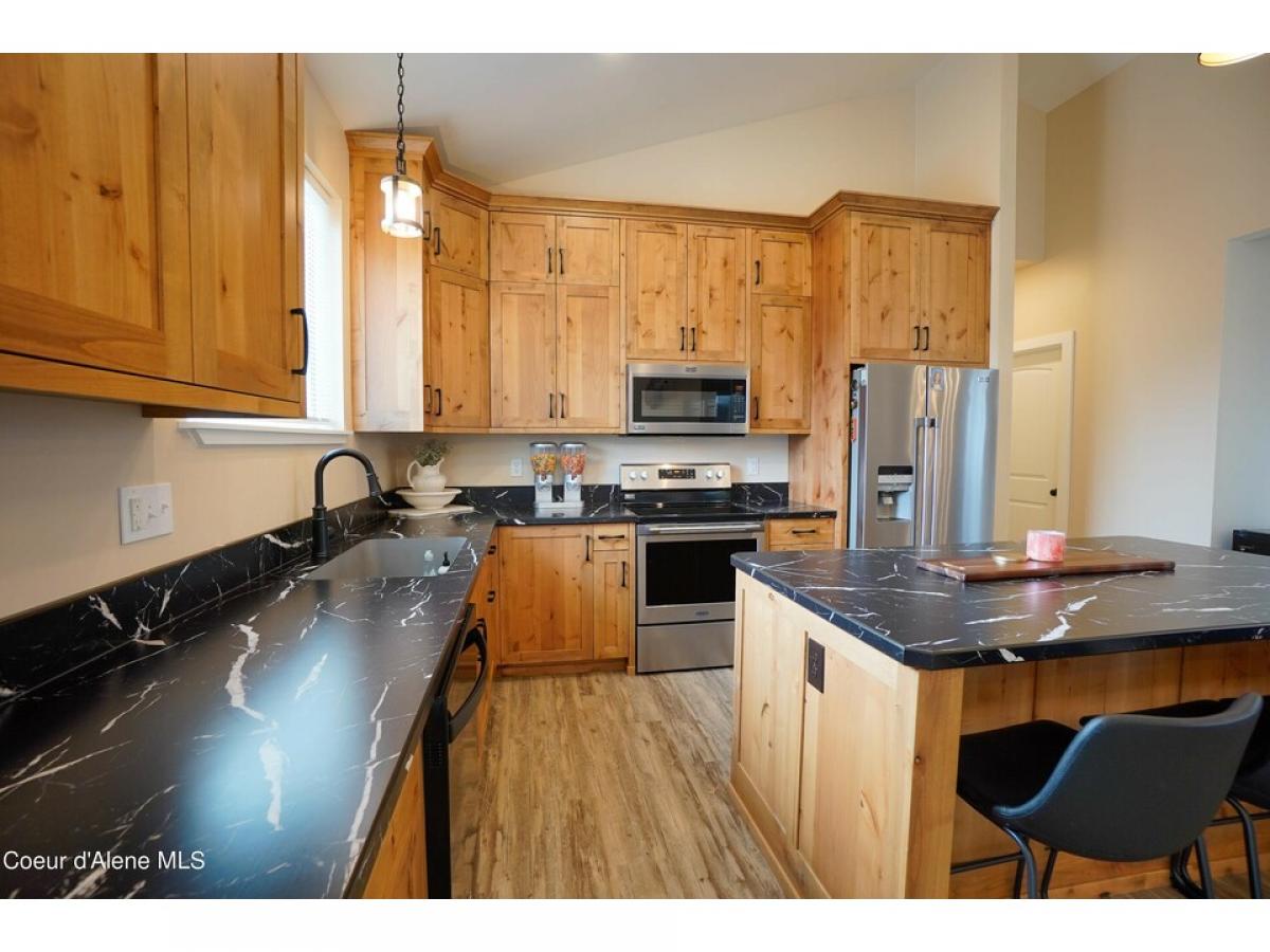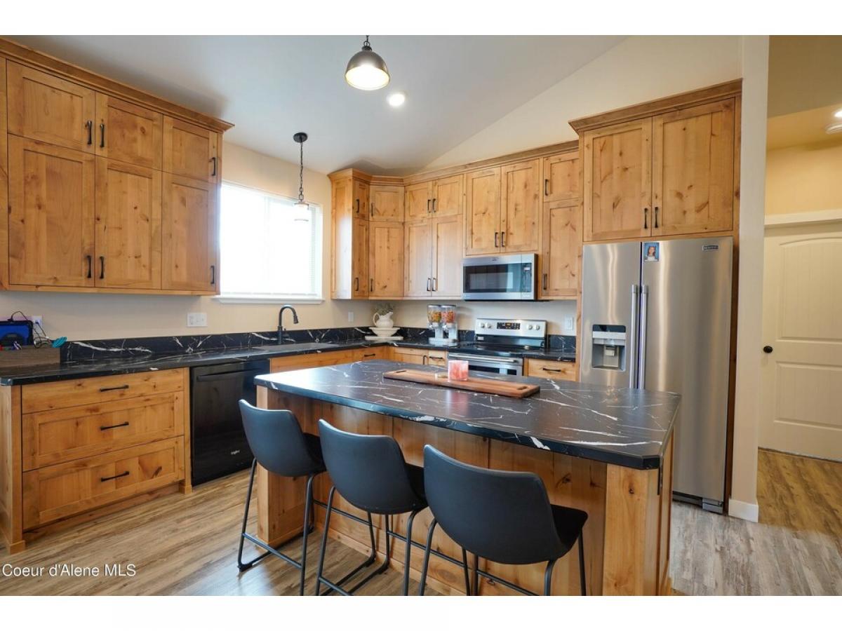 Easy Single Level Living- Built just two years ago and better than new! This warm & welcoming 1512sf 3BD 2BA rancher sits on an oversized .88A corner lot in a desirable neighborhood of newer, quality built homes. You will appreciate it's open flowing floor plan and it's artfully decorated interior w/ features that include a chef's Kitchen w/ custom soft-close cabinets, SS appliances, sizable island w/ seating, cozy coffee nook & on-demand hot water. The great room has vaulted clgs & same easy care vinyl-plank flooring. A spacious M Suite w/ private bath is decorated to make you feel like you've entered your own private oasis. Plus 2 guest rooms, full guest bath & laundry/boot room off of the Att 2 Car Gar. Exterior has concrete garage pad, sidewalks, covered front porch & small rear patio. Just 15 min from town in a quaint neighborhood you will be happy to call home.
