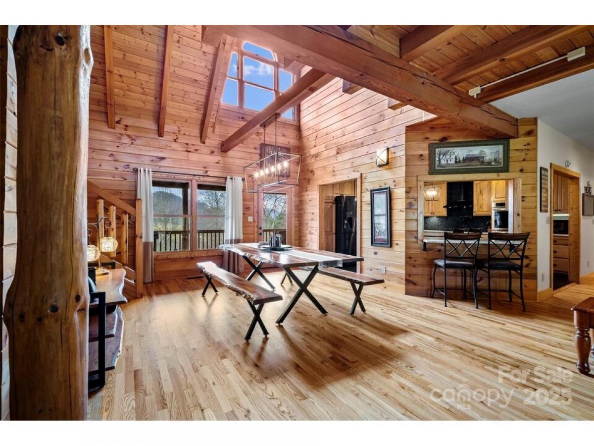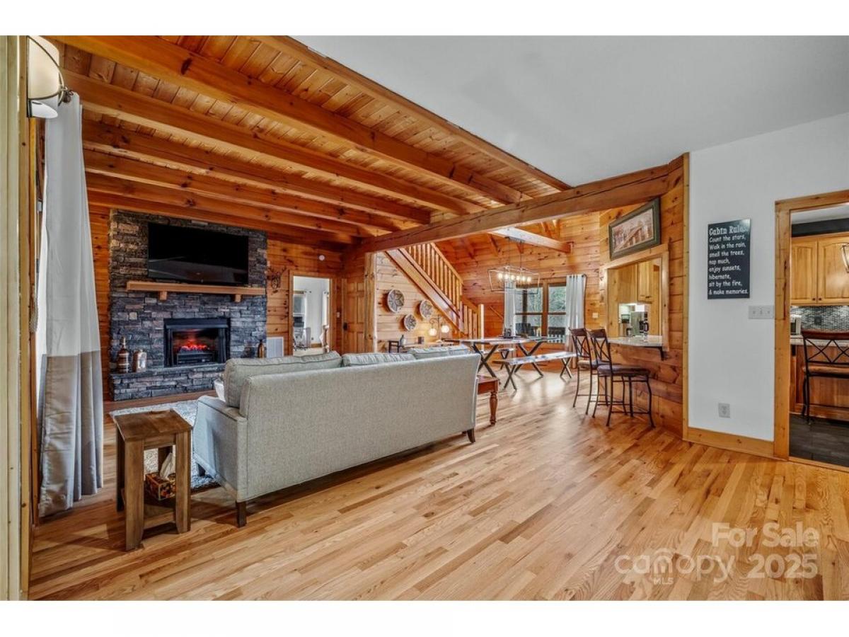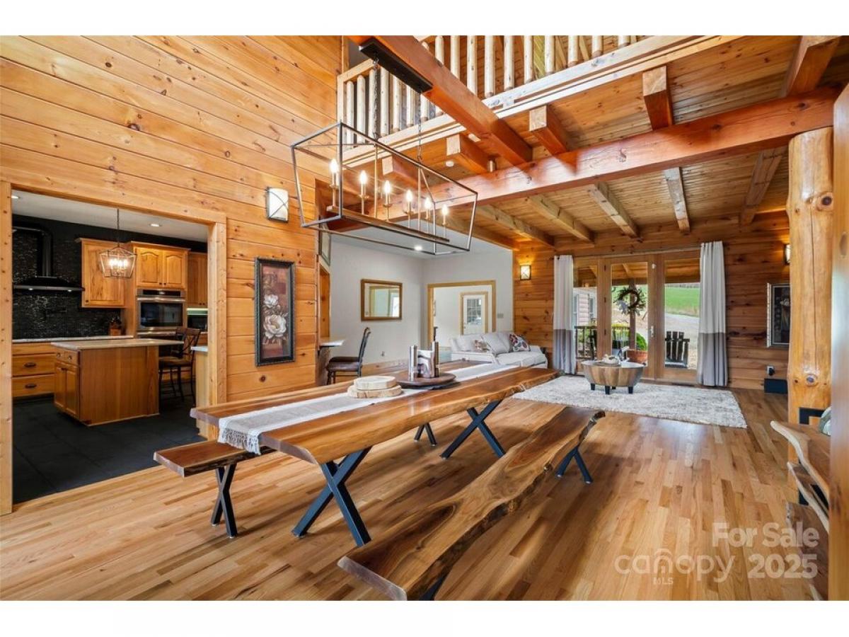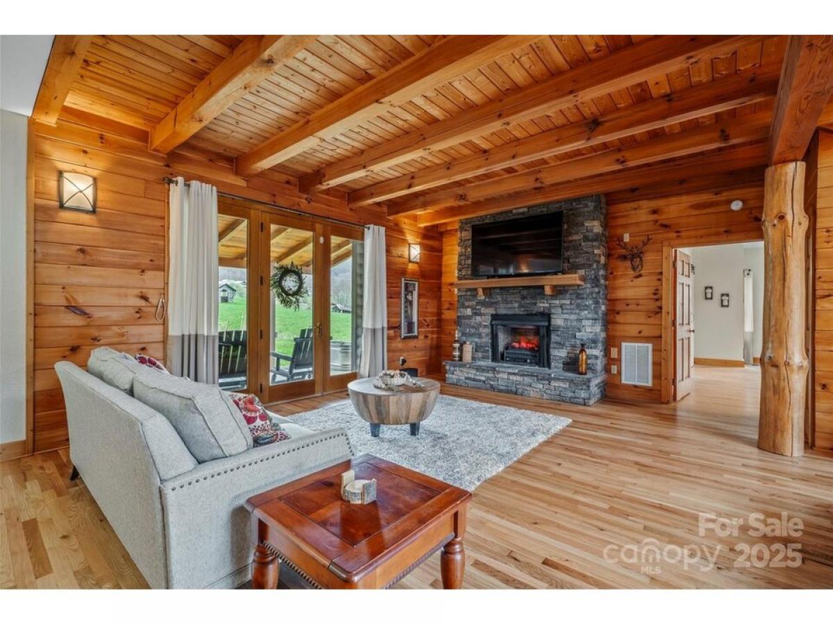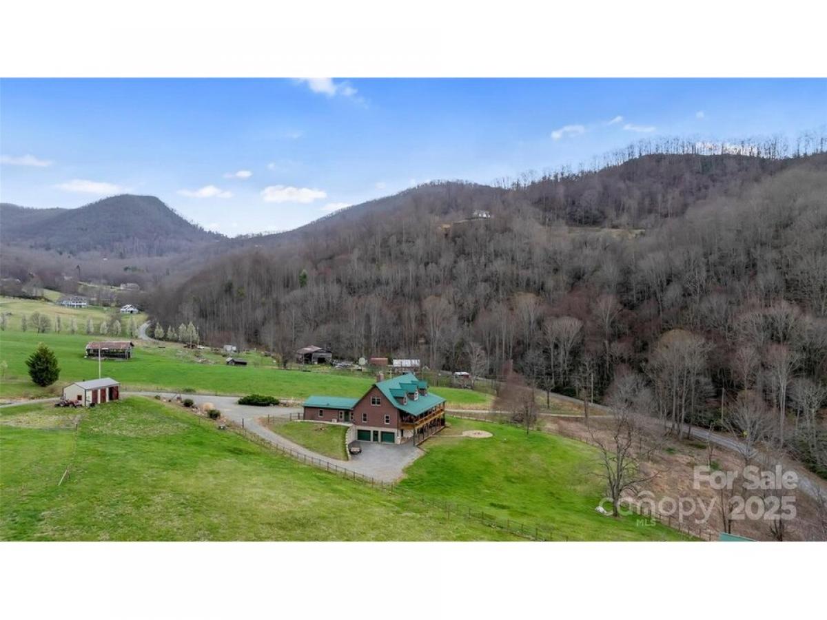 Leave the world behind and embrace mountain magic in this luxury cabin on 3.22 acres, surrounded by mountain amp; pastoral views. Rustic amp; modern elegance intertwine with soaring wood-beam ceilings, a dramatic stacked-stone fireplace, and windows that frame the beauty outside. The kitchen stuns w/a striking backsplash, new granite counters amp; refinished cabinets. The main-level primary suite offers a spa-like bath amp; walk-in closet. Upstairs, a loft, two bedrooms, amp; full bath complete this space. The finished basement provides a 2nd living areamdash;kitchen, living room, dining, and bathmdash;perfect for guests or an income opportunity. Unwind on the rocking chair front porch or soak in views from the covered back deck. A 4-car garage amp; fenced pasture w/a goat shed complete this dream-worthy escape. Per seller: Newly renovated w/new interior paint, appliances, lighting amp; window treatments, new flooring throughout, refinished wood floors, all bathrooms updated, and a new HVAC in the basement amp; entry.