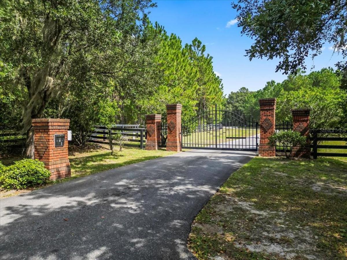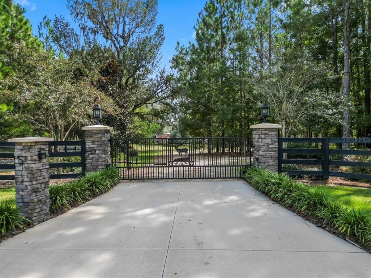 Welcome to your dream home on 5 acres of secluded paradise, nestled behind the secure gates of this stunning property. This meticulously designed current 4-bedroom, 3.5-bath, the original design was a 5 bedroom 4 bath can easily converted to the original plan -5 bedroom/4 bath, oasis boasts 3,769 square feet of pure luxury living space. As you step through the exquisite etched glass front door into the foyer, you'll immediately notice the attention to detail, from the crown molding that graces the ceilings to the gleaming hardwood flooring that extends throughout the entire home.The open concept living area features tray ceilings and 10-foot ceilings, creating an airy and inviting atmosphere. The heart of this home is the gourmet kitchen, complete with a walk-in pantry, 42-inch upper cabinets with undermount and under-cabinet lighting, and soft-close cabinets. Granite countertops, a center prep island, and stainless steel appliances make this kitchen a chef's delight. Tray ceilings with lighting and crown molding add an elegant touch. The adjacent dining area boasts crown molding and chair rail, with a convenient door leading to the screened back porch, where you can enjoy the beauty of your 5-acre estate.The master bedroom is a sanctuary of tranquility with its tray ceilings, hardwood floors, and cased windows. The master bath features tall counters, granite, a tile shower, and a jetted tub, along with a luxurious closet system. On the main floor you'll find two bedrooms, with one currently used as a bedroom and the other as an office. The hall bath offers tile flooring, a tile shower, tall cabinets, and granite countertops. The laundry room is both functional and stylish, featuring ample granite counters, undermount lighting, and a door leading out to the deck area. A drop zone area with cabinetry, tile backsplash, and tile floors adds to the convenience, and a full bath nearby features tile shower and floors.Upstairs, there's also an open area with a half bath and closet, which could easily be transformed into two additional bedrooms or a spacious flex room.This property is a true outdoor paradise, featuring a 2,200-square-foot screened porch with a 5-foot deep heated swim spa. Additionally, a 1,200-square-foot metal building with 20-foot ceilings, air conditioning, and two electrically operated entry doors can accommodate a Class A motorhome and includes a half bath. The garage is also air-conditioned, with acid-etched color on the concrete flooring and epoxy finish.Custom designed and constructed by the owner for his personal residence, this home boasts numerous additional features, including storage galore, a generator for both the home and outbuilding, cased windows, crown molding, and 8-foot doors throughout. Wood flooring extends throughout the home, and the entire property is fenced for privacy and security. A comprehensive security system and sound system with cameras are in place, along with a 12-zone irrigation system. The landscape and hardscape are beautifully maintained, featuring LED site lighting and a stone fire pit. A lime rock base is ready for paving, and there are two gates providing access to the property. A special bonus is the A/C Christmas storage room.This one-of-a-kind property offers a luxurious and secluded lifestyle, where every detail has been thoughtfully considered. Don't miss the opportunity to make this exceptional residence your own. Welcome home!