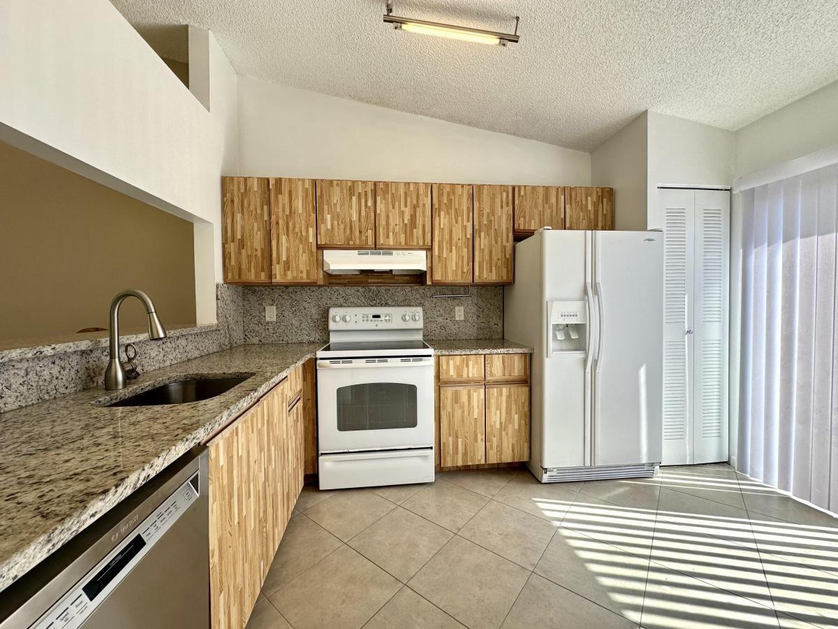 Welcome to Boca Bend HOA! This is an amazing opportunity to own a beautifully updated 2-bedroom, 2-bath villa in Boca Raton. The home features vaulted ceilings, ceramic tile flooring throughout, and a full-size side-by-side washer and dryer. The Kitchen retains its original charm while offering modern touches with granite countertops and newer appliances. Plenty of closet space & a walk-in closet in the master bedroom. Private, fenced-in front patio and open backyard, perfect for relaxation or entertaining. Located in a highly desirable school zone with top-rated Boca Raton public schools. Super-low monthly HOA dues, which cover common areas, roof maintenance & insurance, landscaping, and access to the community pool. Investor-friendly, unit can be rented immediately after closing