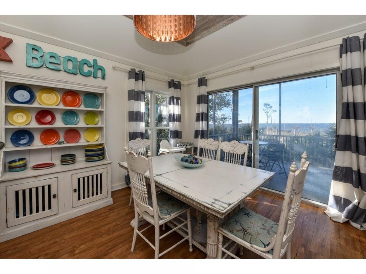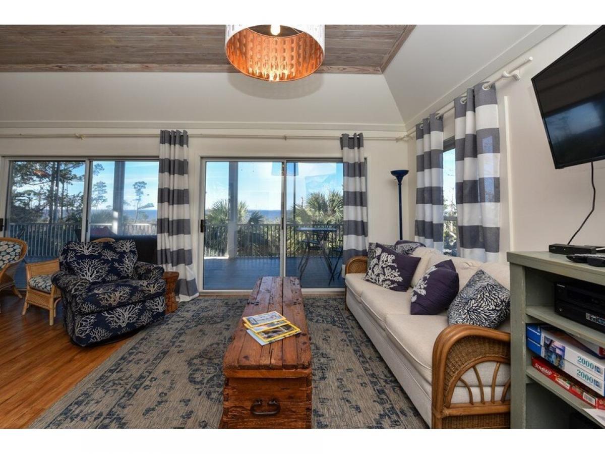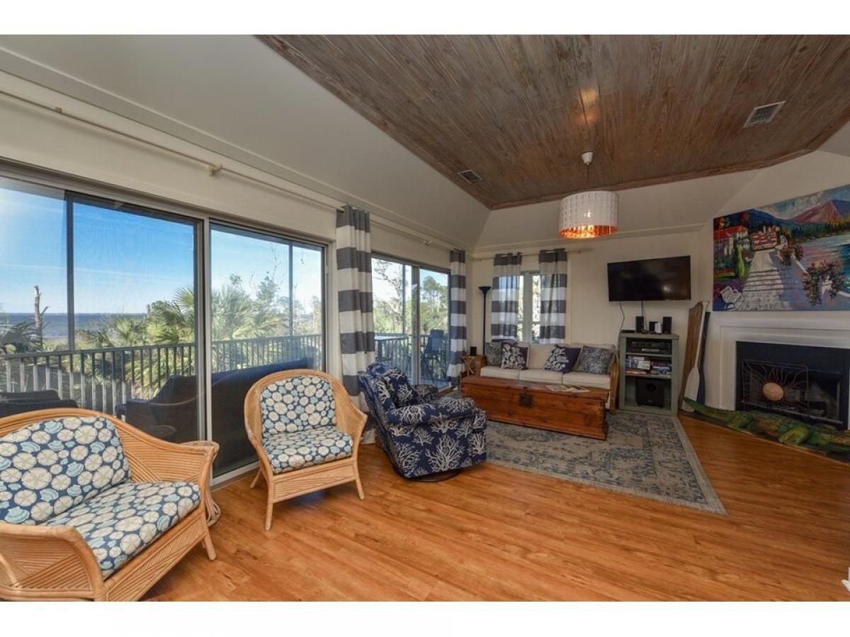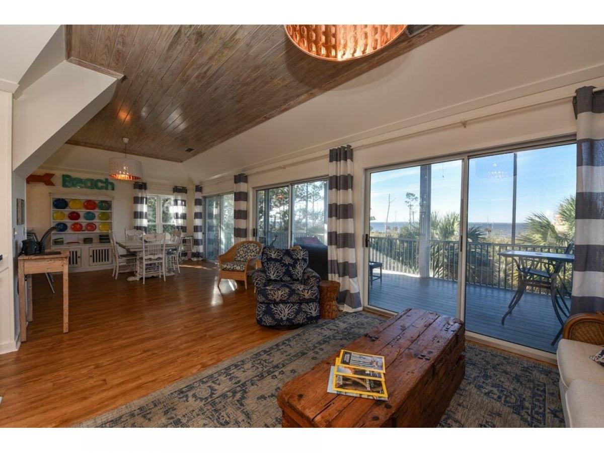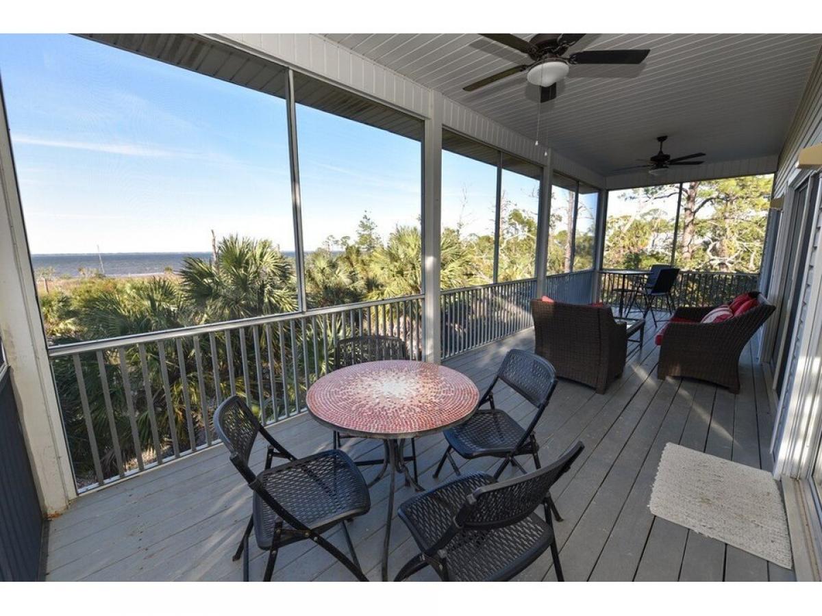 quot;Baydreaminquot; St George Island Bay/Gulf View home. Nestled privately on 2 Lots abutting State land and naturally landscaped with mature palm trees and native vegetation. The home suffuses with natural light and open water views from all rooms. A nature lovers paradise, graced with Bald Eagles, Herons, Great Horned Owls and Osprey. Panoramic Island views and stunning sunrise and sunset vistas abound from the Widows Walk. Two 1st floor Master Bedrooms with en-suite Baths open to a spacious Bayside veranda. The top floor living/kitchen/dining area with fireplace and powder room opens to a screened veranda with open view of Apalachicola Bay. Expansive underhouse entertainment area; beautiful natural grounds with Bayview pier and foot path to a natural pond. Best of both Coastal worlds! Easy access to 2 miles of nature path along Apalachicola Bay on State lands and a short stroll or golf cart ride to acclaimed white sand beach on the Gulf of Mexico! Offered fully furnished in charming Coastal style.