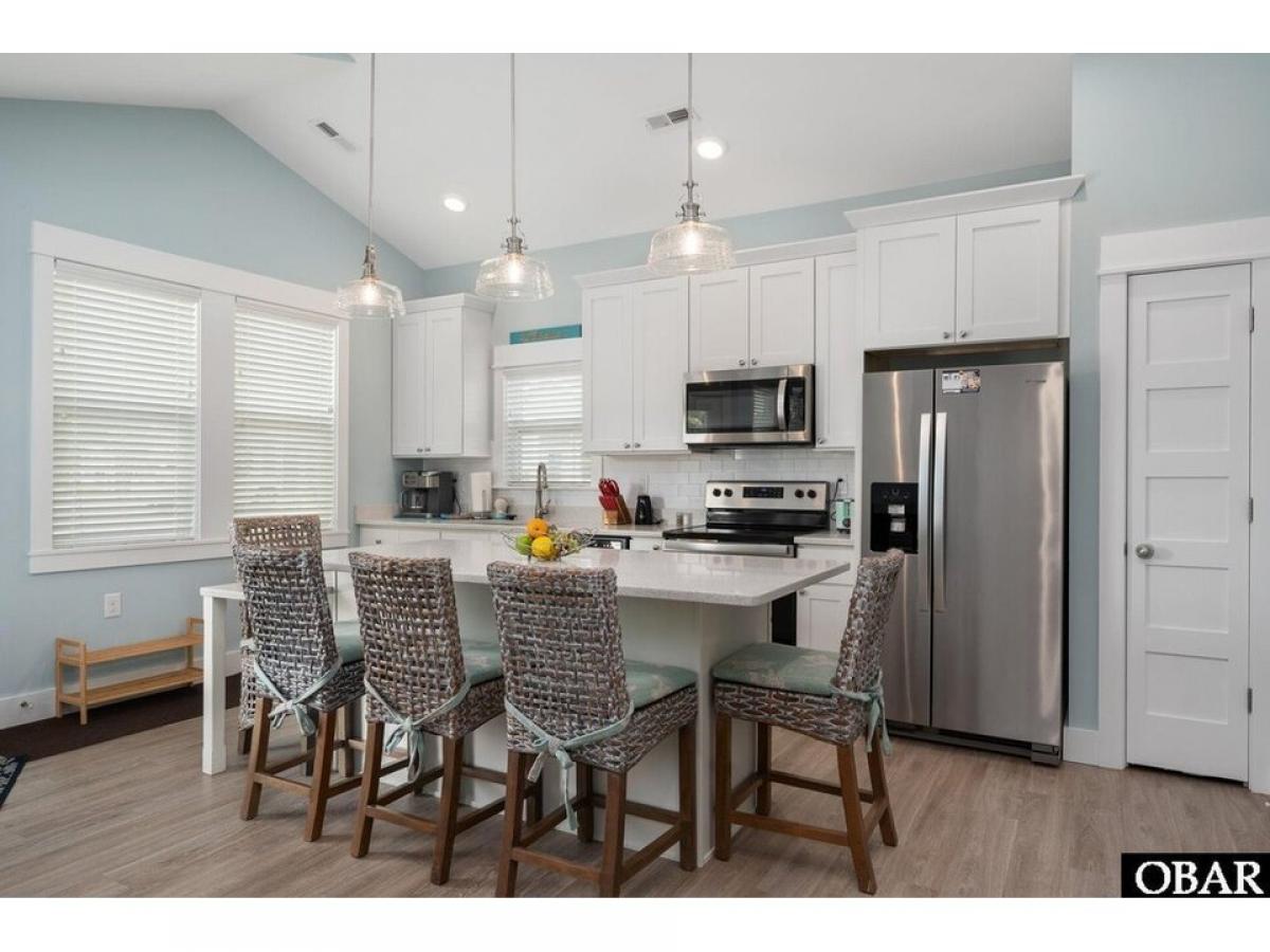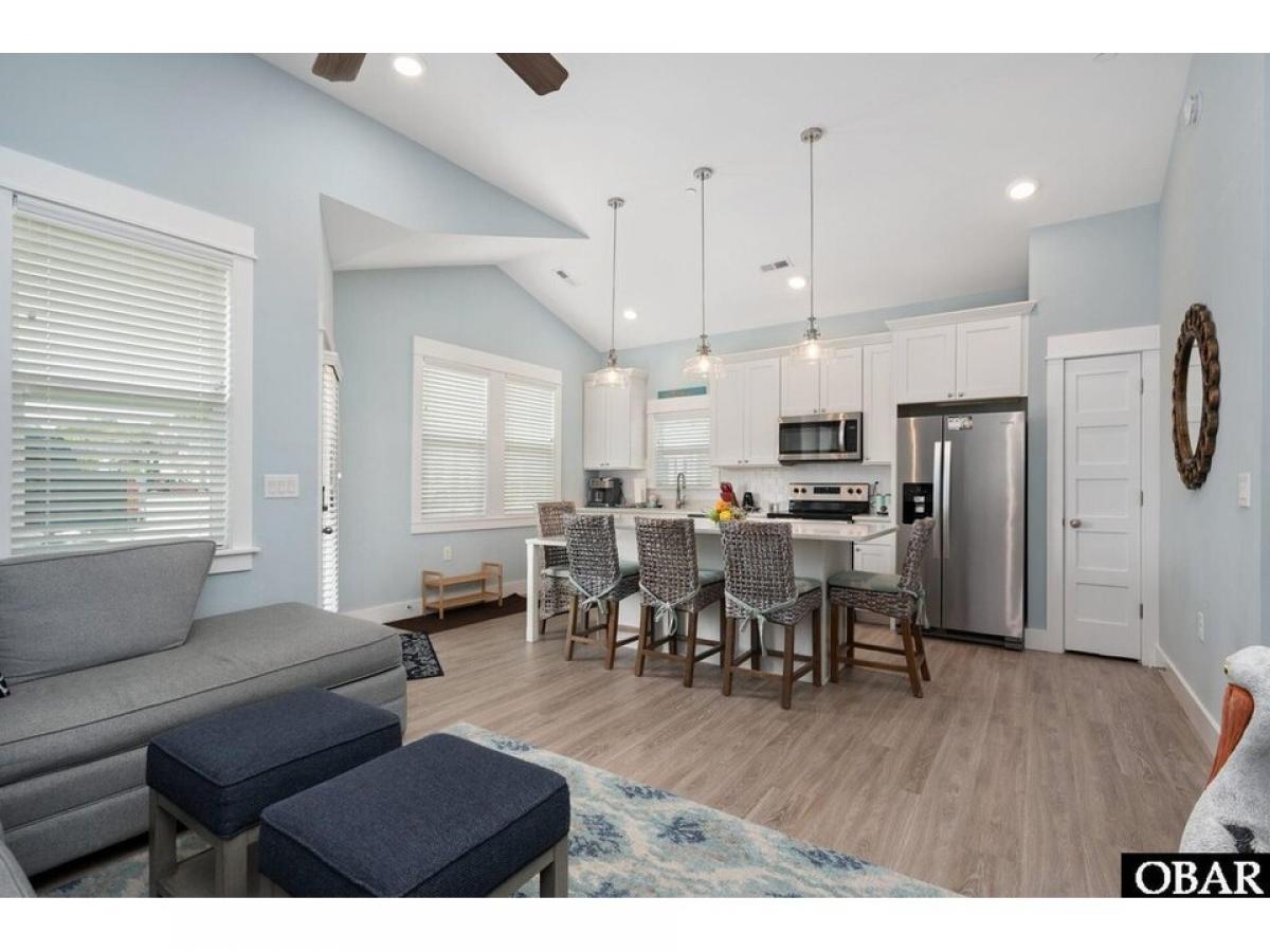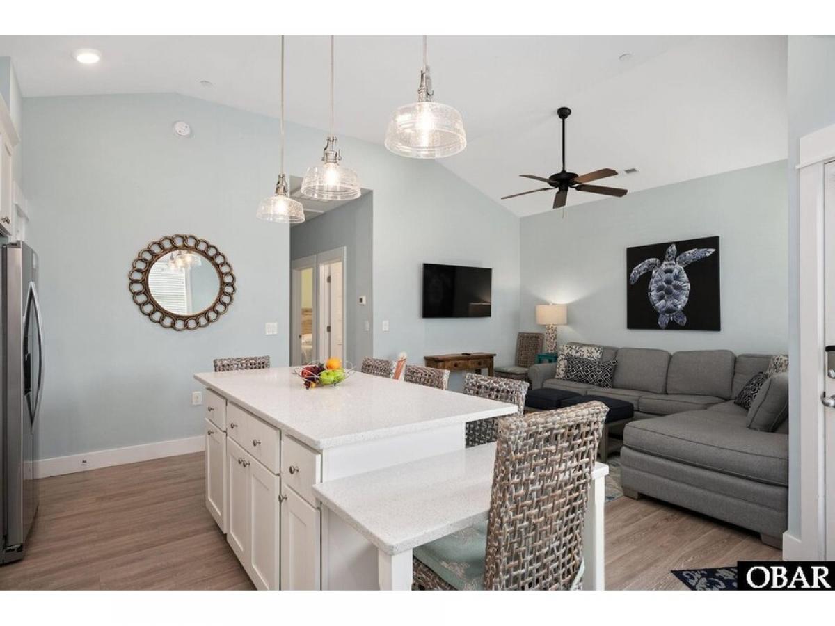 Check out this stunning ADA accessible unit at Beacon Quarters in sought-out Corolla Light! Across from the Corolla Grass Course, Lighthouse, Community Pool, short distance to the Beach, nearby Dining and Shopping and just a couple miles from seeing free roaming Wild Horses in Carova 4X4! Possibilities of this home are endless... First home, Second home, Vacation Rental or even Employee Housing! Upon entry of this 2 bedroom and 2 bath condo, you are welcomed by the open concept living space, chef#039;s kitchen and dining. The 11-foot ceilings really open the space! The kitchen includes all wood cabinetry, quartz countertops, island with a partially lowered bar for easy wheelchair access, modern stainless-steel appliances and trendy lighting. Down the hall there is a laundry room and bathroom. The 2 bedrooms at the end of the hall include one primary suite with tile shower and mosaic inlays, grab bars and additional shower head. The home has high end furnishings throughout, LVT flooring in all areas and quartz counters in both kitchen and baths. Enjoy ground floor living with no stairs in an X flood zone, completely maintenance free! There is also a separate outdoor storage, private outdoor grill and shower!