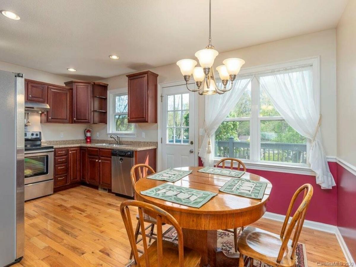 Walk to Biltmore Village, brewery, restaurants, cultural activities. One level, compact floor plan: wood/ceramic tile flooring. Open, U shaped kitchen, quality cherry cabinetry, SS appliances. Tray and vaulted ceilings. "Knock down" ceiling finish (no popcorn). Good closet space - large linen/storage in MBA. Covered front porch views woods across street. 10 X 16 back deck, steps to backyard; looks out and down to creek (back lot boundary across creek). 10 X 12 storage building on concrete pad.