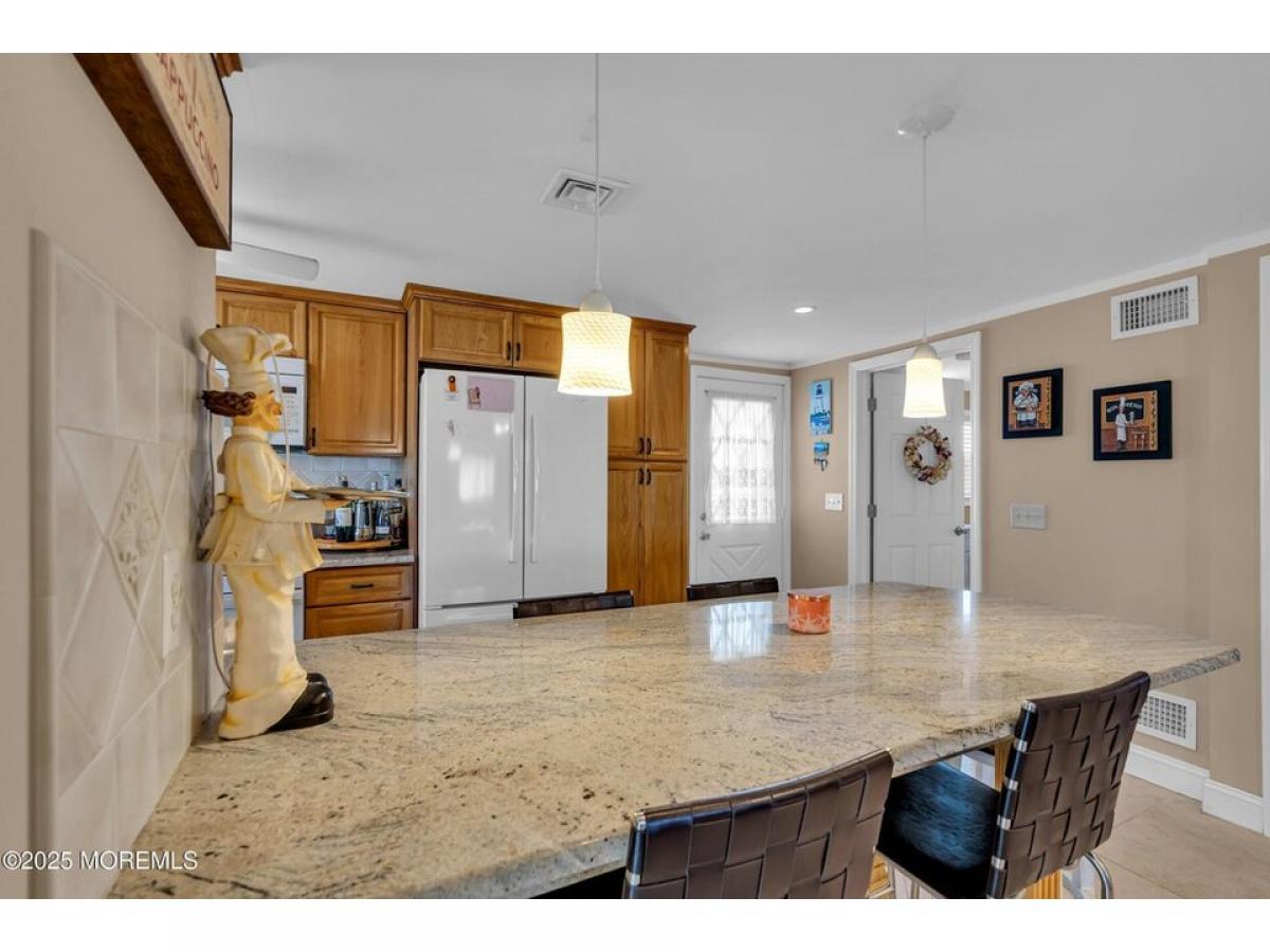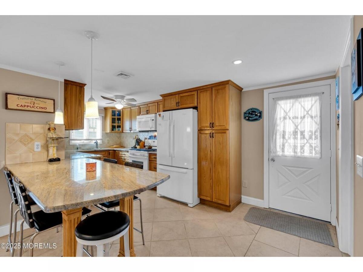 RARE FIND on the Barrier Island; Silver Beach custom home easily sleeps 15-20+ adults. NOT a cookie cutter modular home, this 4/5.5 bedroom, 5 bathroom custom-built home was crafted with meticulous attention to detail. Situated one block from the ocean, it offers the perfect blend of comfort and coastal charm. Designed for both relaxation and entertaining, the deceiving large home boasts many unique opportunities. Beginning with a beautiful tiled foyer the scene is set to impress. A modern kitchen offers wide granite countertops, high-end matching appliances, and custom cabinetry. High quality flooring lead to a welcoming dining area and generous living room, complete with a brick fireplace. The main level Master BR has an updated master bath. Also offer a bonus room (potential 5th BR). The laundry room on the first floor connects with an extra half bedroom. The private backyard is completely paved with a large custom outside shower . There#039;s even a handy storage shed for your beach toys. This fenced in yard is perfect for outdoor gatherings or unwinding after a day at the beach. Upstairs, you#039;ll find three generously sized bedrooms, each with its own dedicated bathroom, providing ultimate privacy and convenience for family and guests. The impressive primary suite is truly unique with a connecting bonus half bedroom, walk-in closet, a comfortable sitting area and a primary bathroom. This home has never been rented and features thoughtful touches, quality craftsmanship and off-street parking. A prime location just steps from the Ocean, Bay Beach, and tennis courts. Very convenient to local restaurants and charming shops as well. Whether you#039;re searching for a full-time residence or the ultimate vacation escape, this builder#039;s own home offers an unparalleled coastal lifestyle. Schedule your private tour today and make your seaside dreams a reality! Home was FEMA certified as NOT SIGNIFIGANTLY DAMAGED by Superstorm Sandy.
