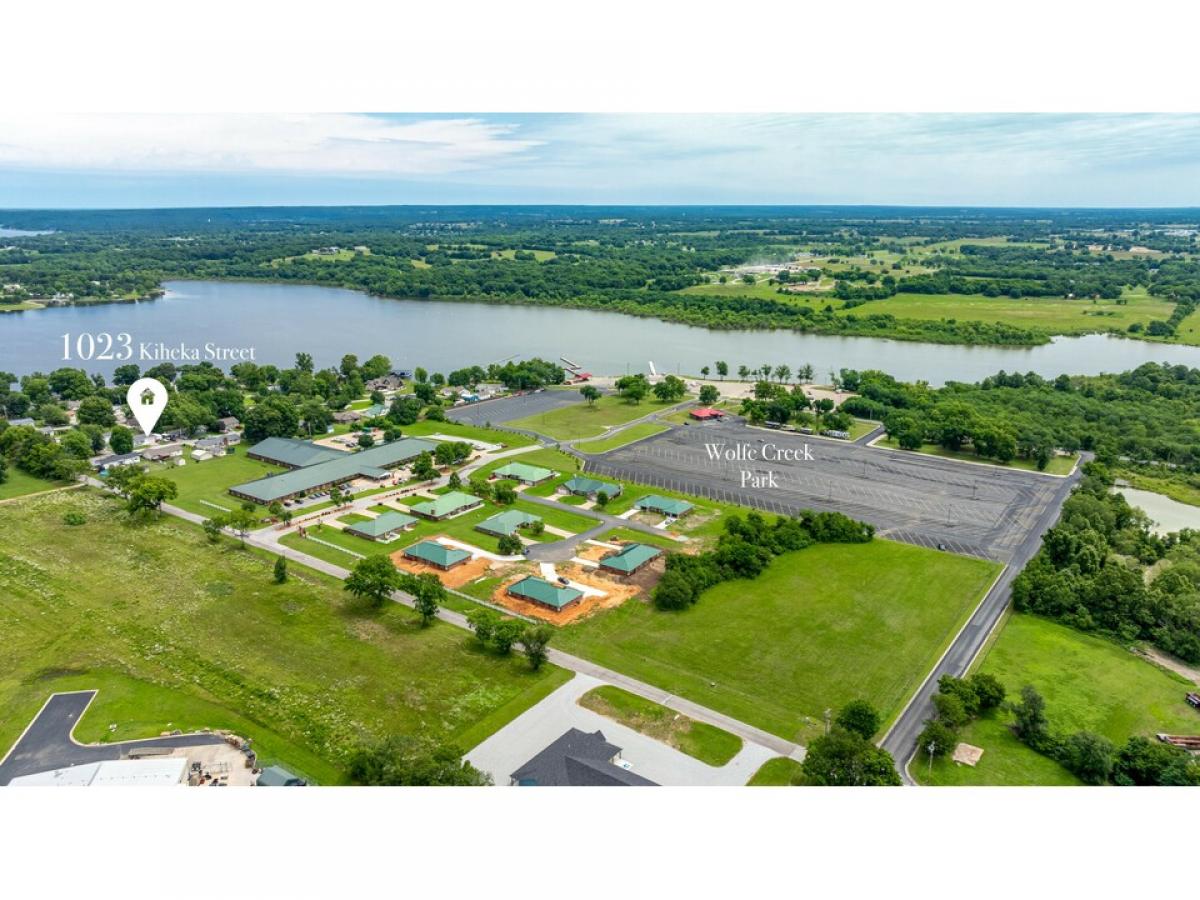 A Lake Home with lake access on Wolf Creek in Grove, where there is a public boat launch at the Wolf Creek Park down the street which also has fishing docks and a boat launch. This darling 3 bedrooms and 1.5 Bath ,1311 SF home with a 1 car garage attached. It also has a 720 SF workshop with overhead door, window air and heater. Chain link fenced in Back yard!!! New Roof in 2020. Platform patio area for entertaining which would be a great place for an above ground swimming pool.