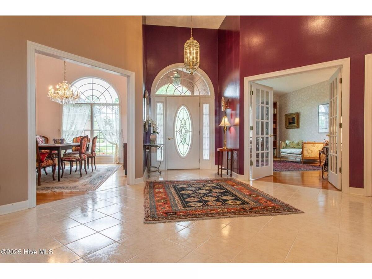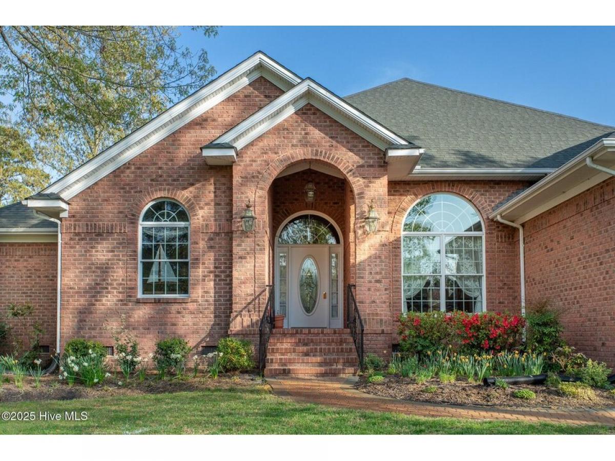 This is a gorgeous brick, 3-bedroom, 4 full-bathroom home in The Albemarle Plantation Community, located on the pristine Albemarle Sound. Key features include, open floor plan with 14 ft. ceilings, formal dining room with built-in cabinets, a study-office combo and formal living room. The large kitchen, includes high-end appliances, with a prep sink, creates a functional and inviting space for cooking and meal preparation. A generous master bedroom and bathroom suite offering a soaking tub, walk-in shower and dual sinks. The family room features a beautiful gas log fireplace and view of the Albemarle Sound, creating a warm atmosphere. An ample two-car garage makes for work or hobby space. Overall, this charming home offers a comfortable living space with appealing features, a wonderful waterfront community with a range of amenities and activities making it a comfortable and luxurious retreat home! This community offers endless opportunities to enjoy life on the water. Their stunning amenities boast one of the largest private full-service, deep water marinas on the east coast and a private waterfront world-class golf course designed by Dan Maples. With tennis courts, fitness facility, community center, community gardens, and several dog parks, residents always have something to look forward too.