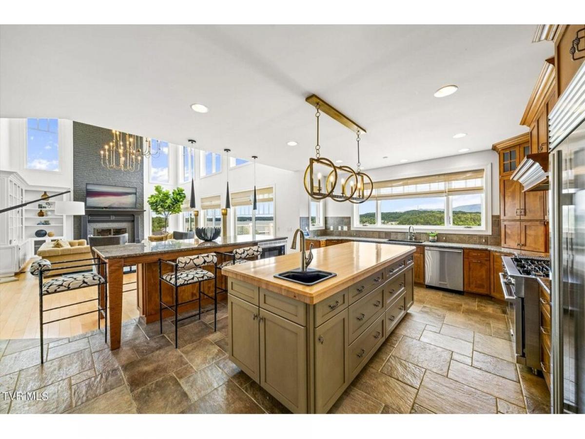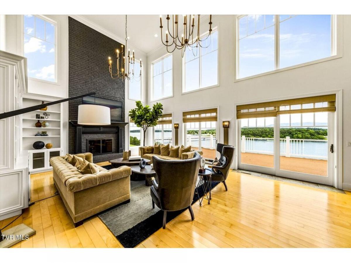 RARE OPPORTUNITY! YOUR DREAM HOME IS FINALLY HERE!! Located in the heart of Dandridge, this sprawling 4-bedroom, 5 1/2-bathroom home with over 6,500 square feet of luxurious space.The views from every room of this magnificent home will simply take your breath away. No expense was spared in creating this one-of-a-kind, unique property. As you enter the front door, you are immediately met with a spectacular living room with two chandeliers and vaulted ceilings over 24 feet high. The floor-to-ceiling windows invite you to enjoy the spectacular lake and mountain views as you sit by the beautiful floor-to-ceiling brick fireplace. The kitchen boasts two oversized islands and all high-end appliances: two dishwashers, two sinks, wine fridge, double-oven, large gas range and sub zero fridge. The walk-in pantry and abundance of cabinets provide more than ample storage space. The elegant dining room opens up to an additional outdoor dining area directly overlooking the lake. The stately all-black study containing its own bathroom and walk-in closet - ideal for a home office or additional bedroom. As you head upstairs, you are immediately greeted by breathtaking lake and mountain views. The sprawling master suite is simply spectacular, containing a large sitting area and an indoor/outdoor gym. The master bathroom contains an oversized jacuzzi tub and a massive walk-in shower with vaulted ceilings and 4 shower heads. The home conveniently has a separate laundry room on all 3 levels. This house can easily accommodate the needs of car enthusiasts - boasting 5 spacious garages with additional storage rooms. The lower level of the home contains a theatre space and game room ideal for hosting family and friends.