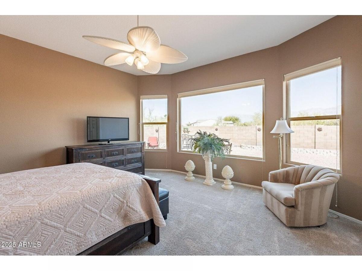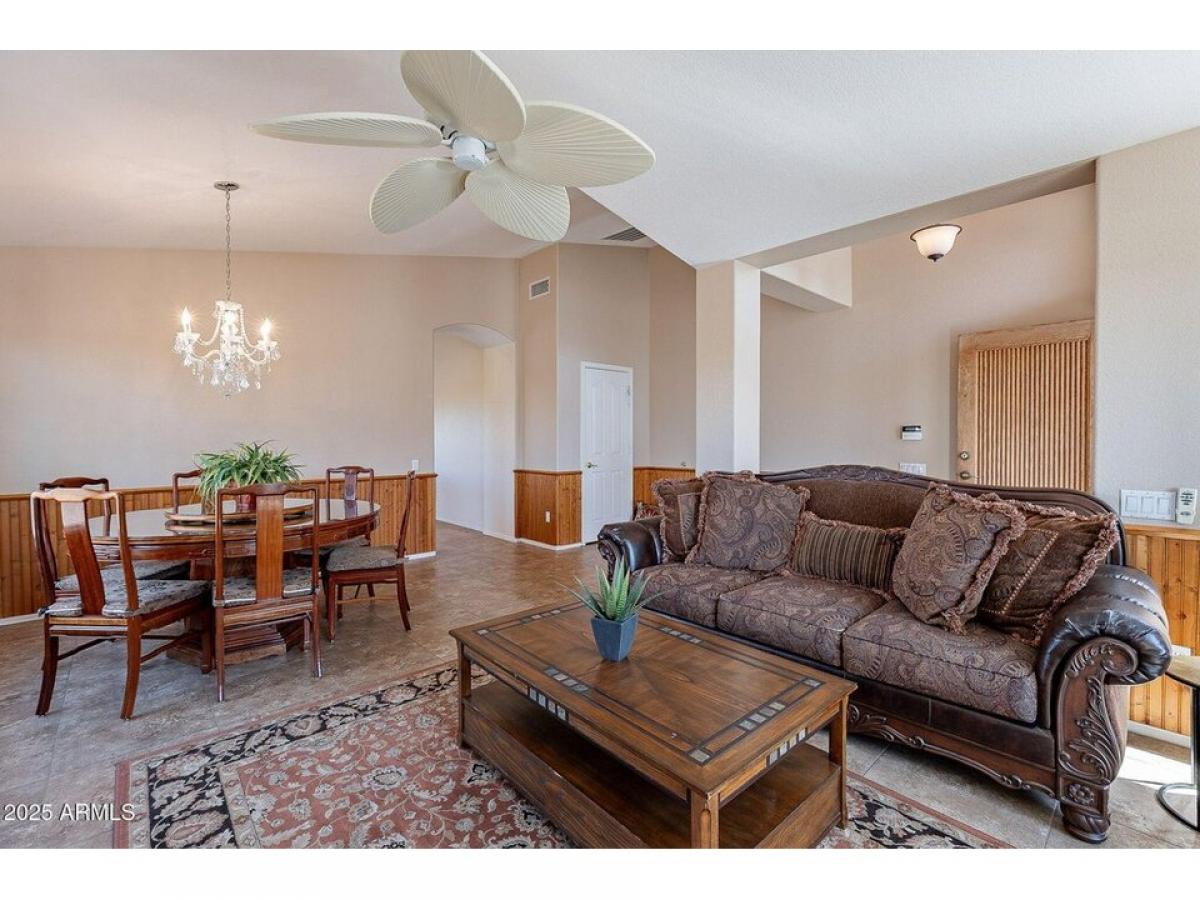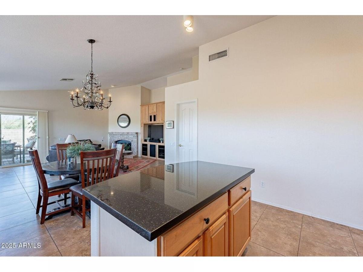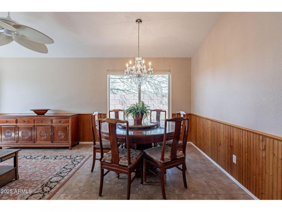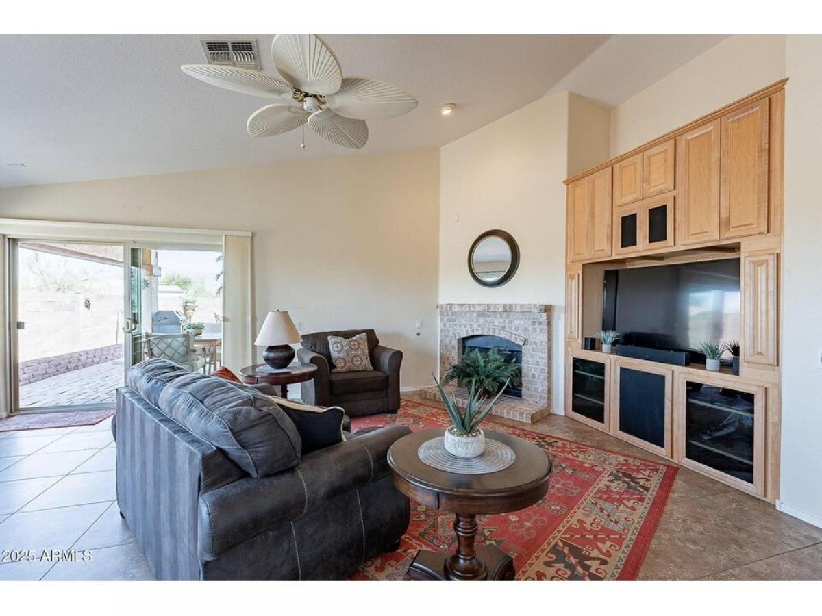 Beautiful home located at the end of a cul-de-sac bordering desert preserve and boasts stunning Superstition Mountain views!!! Spacious formal living/dining room with wood wainscoting greets you when walking in the front door. The eat-in kitchen has newer granite counter tops and a Kitchen Aid Gas cook top stove with electric double ovens, island and walk-in pantry. Kitchen overlooks the family room which has a custom built-in entertainment center wired for surround sound and a gas fireplace! The large Primary bedroom boasts Superstition Mountain Views, separate shower and jetted tub, dual sinks, and walk-in closet has a solar tube to bring in light. Laundry room has solar tube also. Two car EXTENDED LENGTH GARAGE has overhead storage, new garage door in 2015 and PVC garage flooring tiles. Freezer and refrigerator in garage convey to Buyer. There is an electric panel installed in the garage that is made for a generator. Easy care for backyard has stunning views of the Superstition Mountains! Enjoy relaxing out on the back paver patio and take in the beauty of the ever changing colors of the Superstition Mountains!