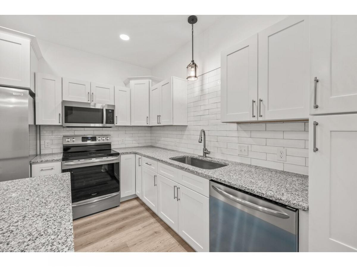 Welcome to this charming townhome featuring a spacious 2-car driveway and a convenient single-car garage. The home boasts impressive 9 ft ceilings on the lower level, complemented by luxurious vinyl plank flooring throughout. The kitchen showcases elegant white shaker cabinets, granite countertops, and a generously sized island that seamlessly connects to the inviting living room. Enjoy outdoor living with both front and back patios.Upstairs, the primary bedroom offers a retreat with a walk-in closet, while two spare bedrooms share a well-appointed bathroom. The second floor also houses a convenient laundry room for added convenience. Both bathrooms exude sophistication, featuring a tiled shower with glass doors in the master and a tiled tub in the second bathroom. This home effortlessly combines practicality with modern aesthetics, creating a welcoming and comfortable living space for you to call home. HOA covers street lights, lawn maintenance, annual landscaping, repaving street.