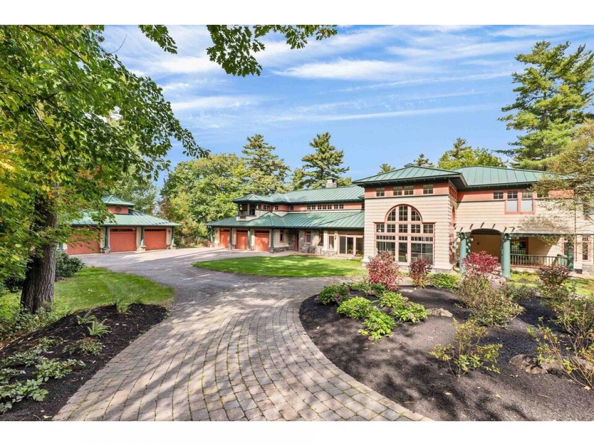 Welcome to an exquisite waterfront property on Lake Winnipesaukee in an area of magnificent homes. Extensive private waterfront, docking and beach accessed through a woodland path to crystal clear water and sandy bottom. BOATHOUSE SITE WORK DONE. PERMIT PENDING. This is a custom build by notable TMS Architects. Eighteen rooms - three floors of living space include a stunning circular staircase with Lake views through beautiful floor to ceiling windows. The cherry paneled Library Billiard Room with Bar is a highlight adjacent to the formal Living Room; Seven Bedrooms, nine Bathrooms accommodate family and friends. Two Bedroom Suite is Handicapped Accessible; Two Offices and an In-law Suite provide ample space for all. An Endless Pool, Sauna and Gym space are state-of-the-art amenities for exercise and comfort. Juliet Balconies add to the charm and romance of the home that provides elegance for Family and Guests. Live your best life on beautiful Lake Winnipesaukee, minutes to historic Wolfeboro, NH. Corporate Jet Airport 20 minutes; two hours to airports in Boston amp; Manchester. This is a one-of-a kind home like no other on very special Lake Winnipesaukee.