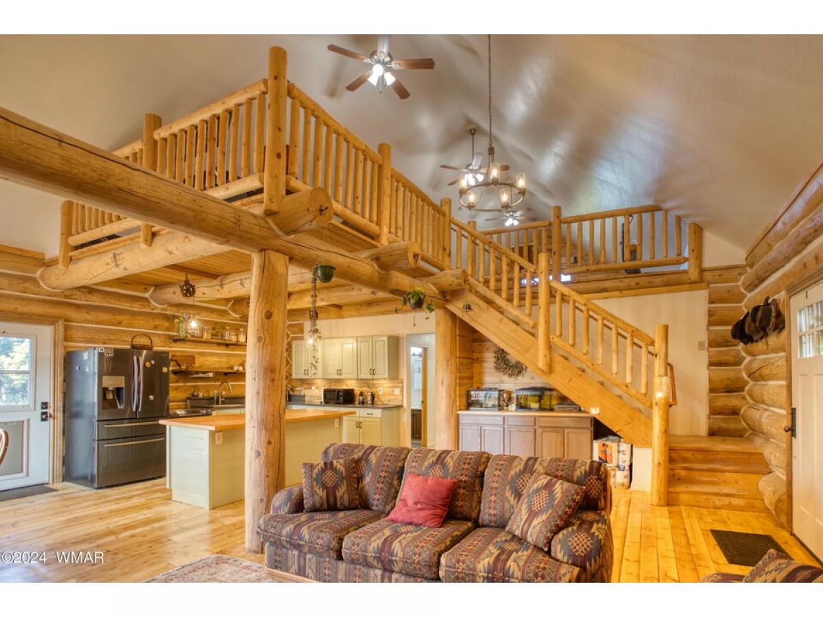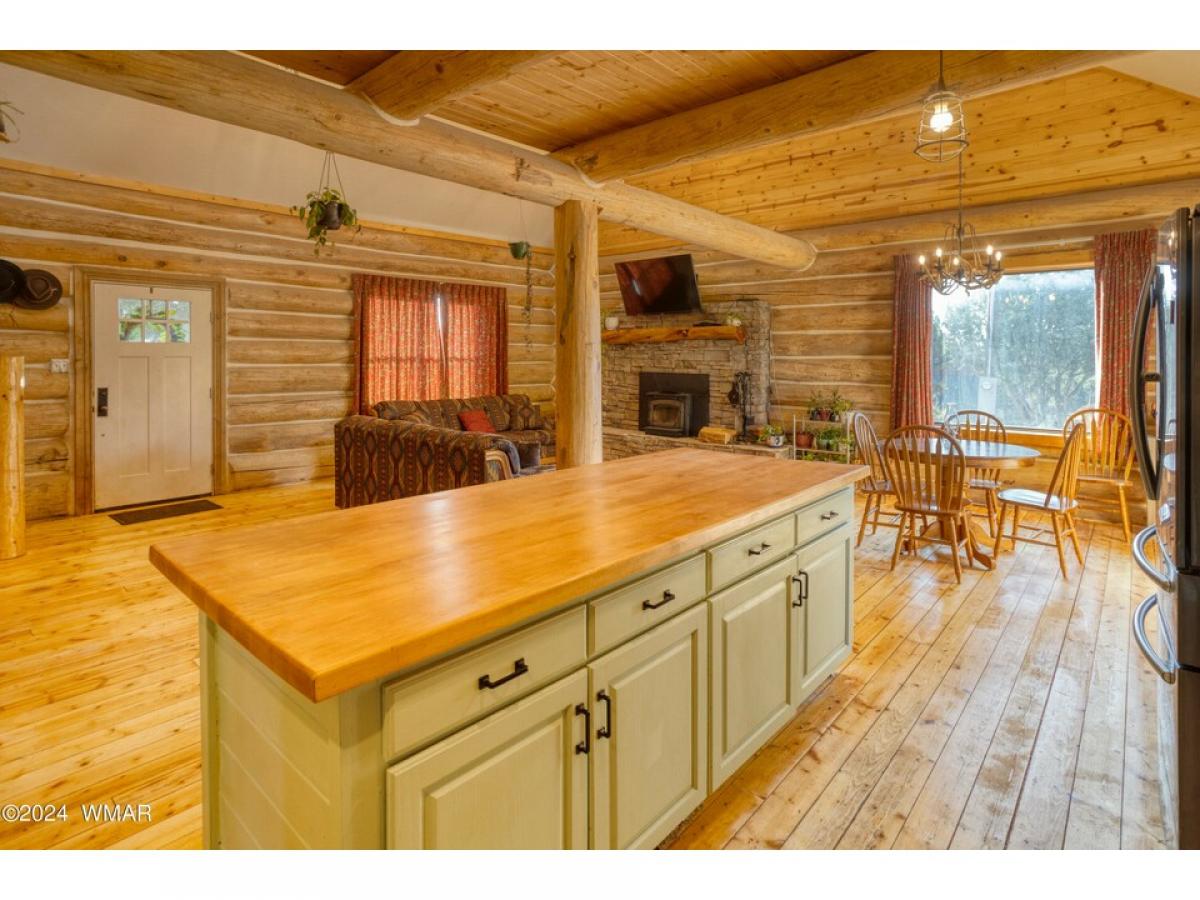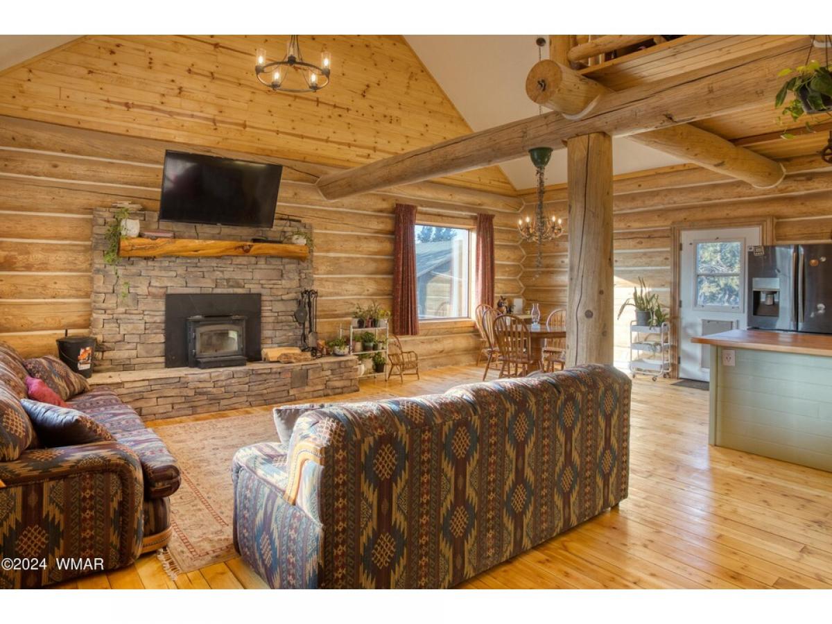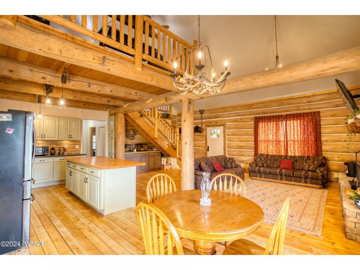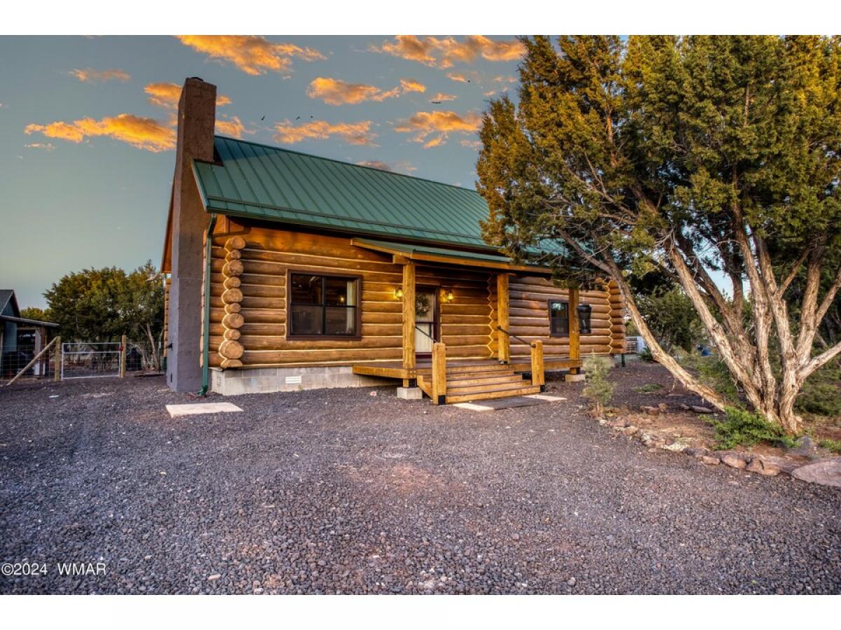 Tucked away in the White Mountain landscape, this custom-built, full-log cabin offers a perfect blend of rustic charm and modern updates on an expansive 10.57-acre lot. Featuring 2 spacious bedrooms, 2 bathrooms, and a grand loft, this home provides ample space for relaxation and enjoyment. Step outside to enjoy the covered porch and open deck, perfect for soaking in the natural beauty that surrounds you. The property is heavily treed, creating a private, tranquil setting. Inside, admire the beautiful hardwood floors and exposed logs that highlight the cabin's craftsmanship. The charming, updated kitchen is equipped with modern amenities, perfect for any culinary enthusiast. The exterior of the cabin has been recently refreshed, and the floors have been carefully refinished by hand, ensuring this home is move-in ready. Animal lovers will appreciate the fact that the property is already set up for your furry friends. Come experience comfort in this White Mountain retreat.