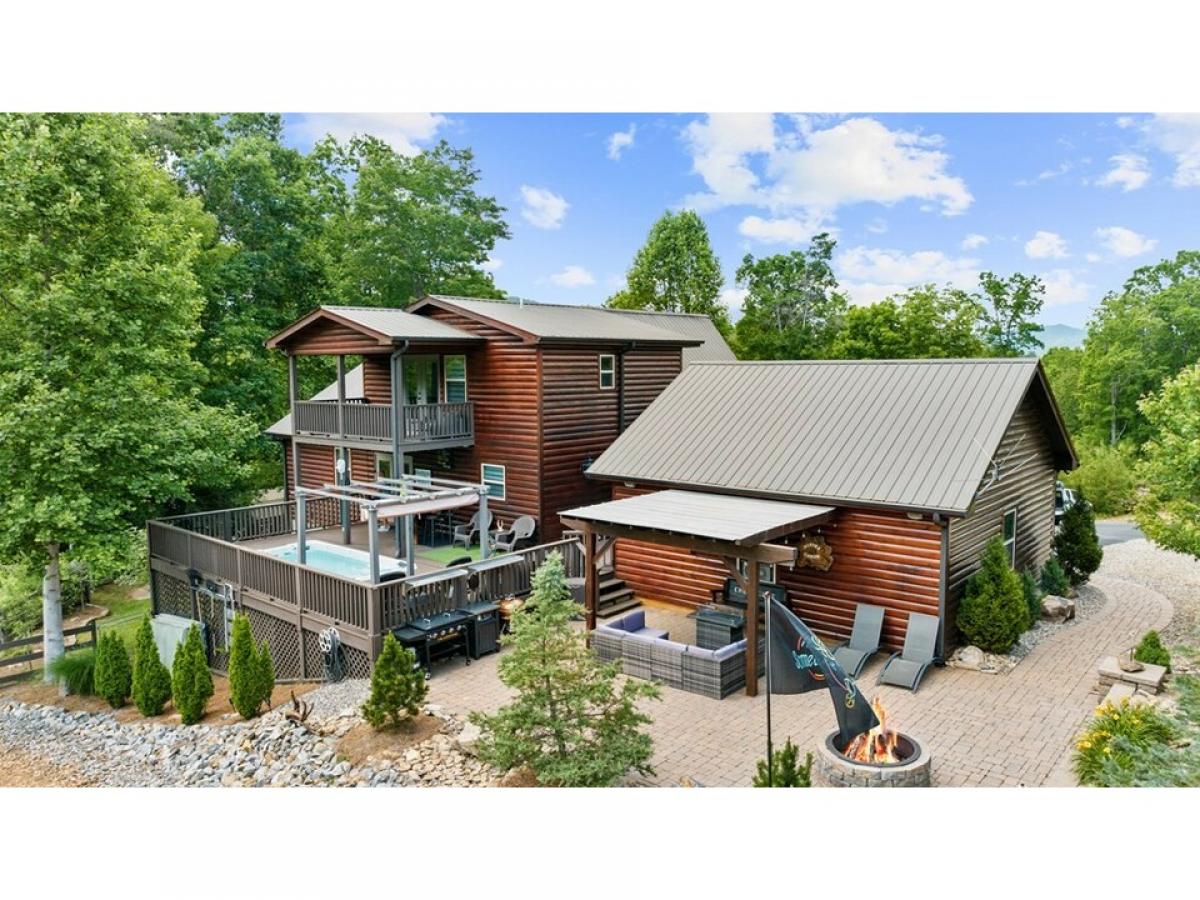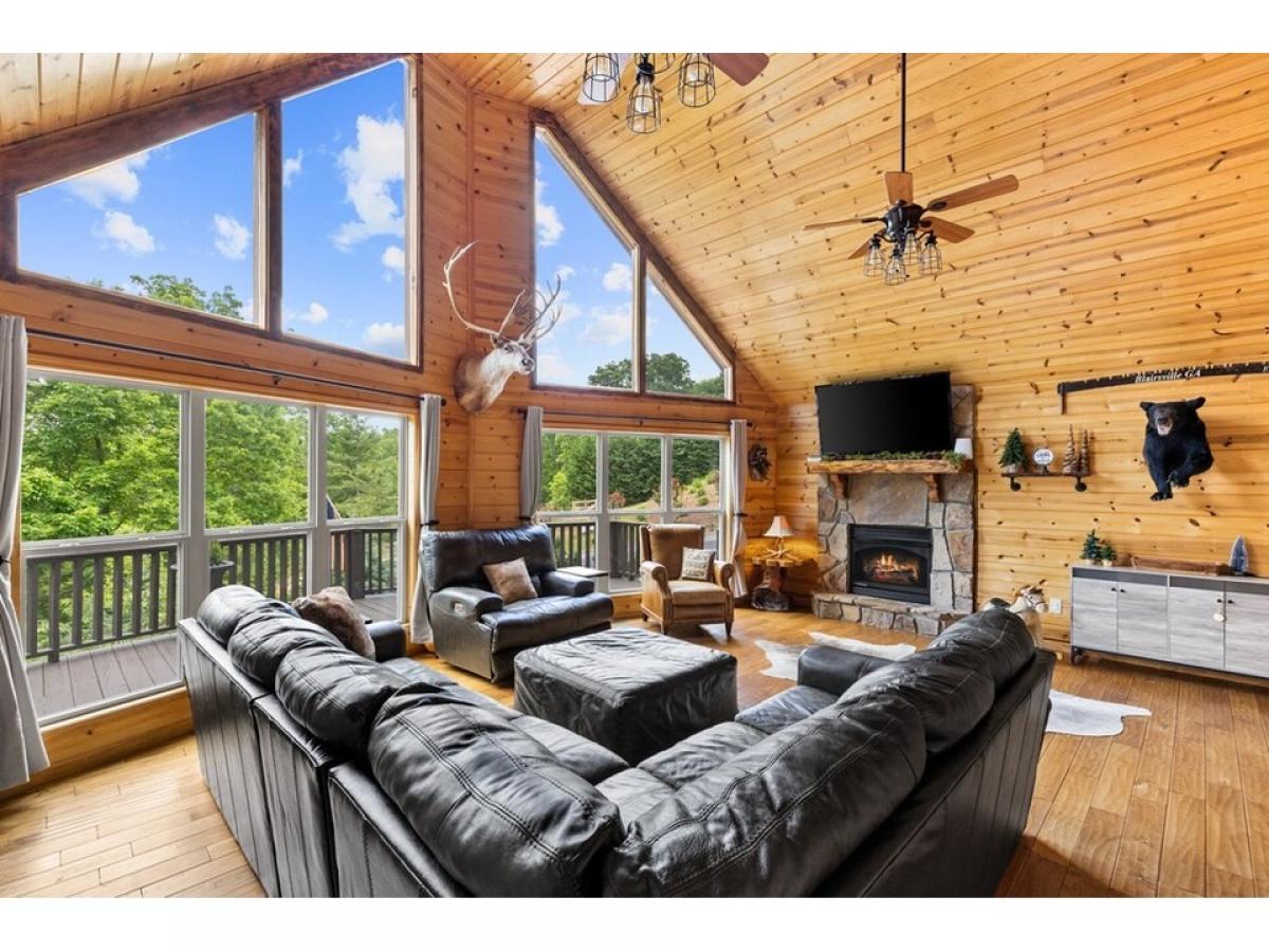 Welcome to your dream mountain retreat in the Appalachian Mountains! This stunning 5-bedroom cabin offers breathtaking views of a serene pond and majestic peaks, with no HOA. The living area features high vaulted ceilings and large windows, flooding the space with natural light. The open floor plan seamlessly connects the living room, dining area, and gourmet kitchen, perfect for entertaining or family time! The chef-inspired kitchen boasts new state-of-the-art appliances, modern quartz countertops, and ample storage. The main level includes 3 bedrooms and 2 baths, while the private primary suite on the third level features a 16-foot balcony, private bath and walk-in closet. The lower basement-level offers a separate oversized living space with a kitchenet, 2 bedrooms, and a full bathroom, making it ideal as a second private residence or in-law suite, with its own exterior entrance, driveway, and fenced yard. The private deck includes a $15,000 swim spa, perfect for relaxation. The property also features custom landscaping, a raised garden bed, fruit trees, and a covered pergola with a fire pit for outdoor gatherings. Recent updates include a new HVAC system with UV treatment and HEPA filtration (2022), a new hot water tank (2023), a 12x20 shed (2022), custom pavers (2023), a new swim spa pump (2022), all new kitchen appliances (2022-23), block rock retaining walls, and high-speed Fiber Optic internet (2020). Located just minutes from Vogel State Park, Helton Creek Falls, and the Appalachian Trail, this home offers the perfect blend of elegance and comfort. Don't miss the chance to make this mountain paradise your home.