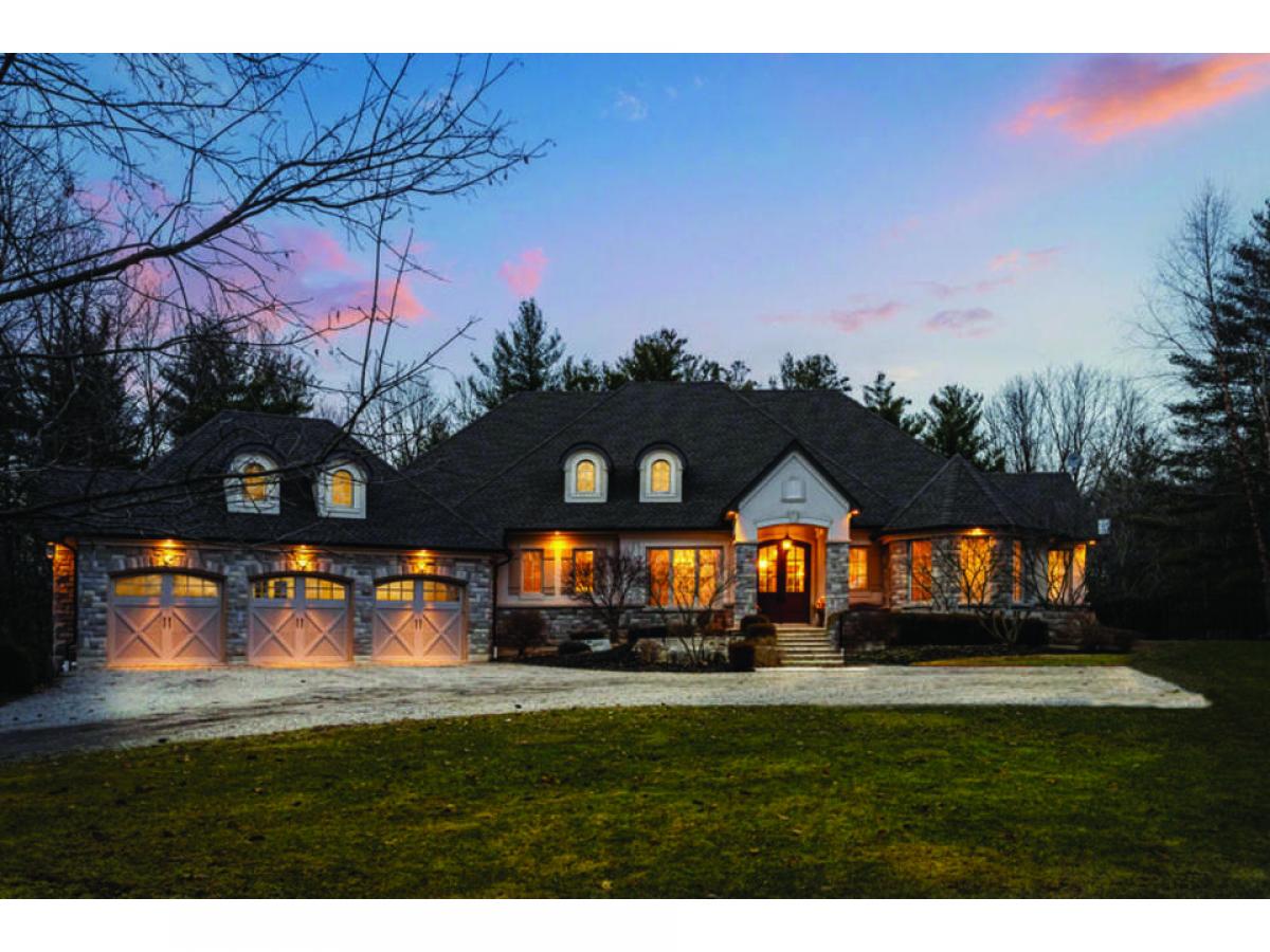 Spectacular custom bungalow by Neven Custom Homes, set on 4.1-acres only 5-mins to town. Almost 4300 sq ft of luxurious living including a finished walk-up basement, triple garage, and outdoor oasis (heated saltwater pool). Built with superior quality.