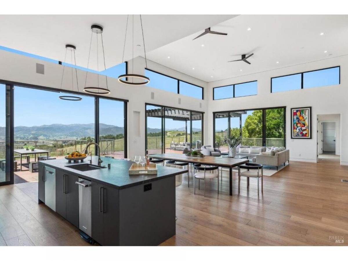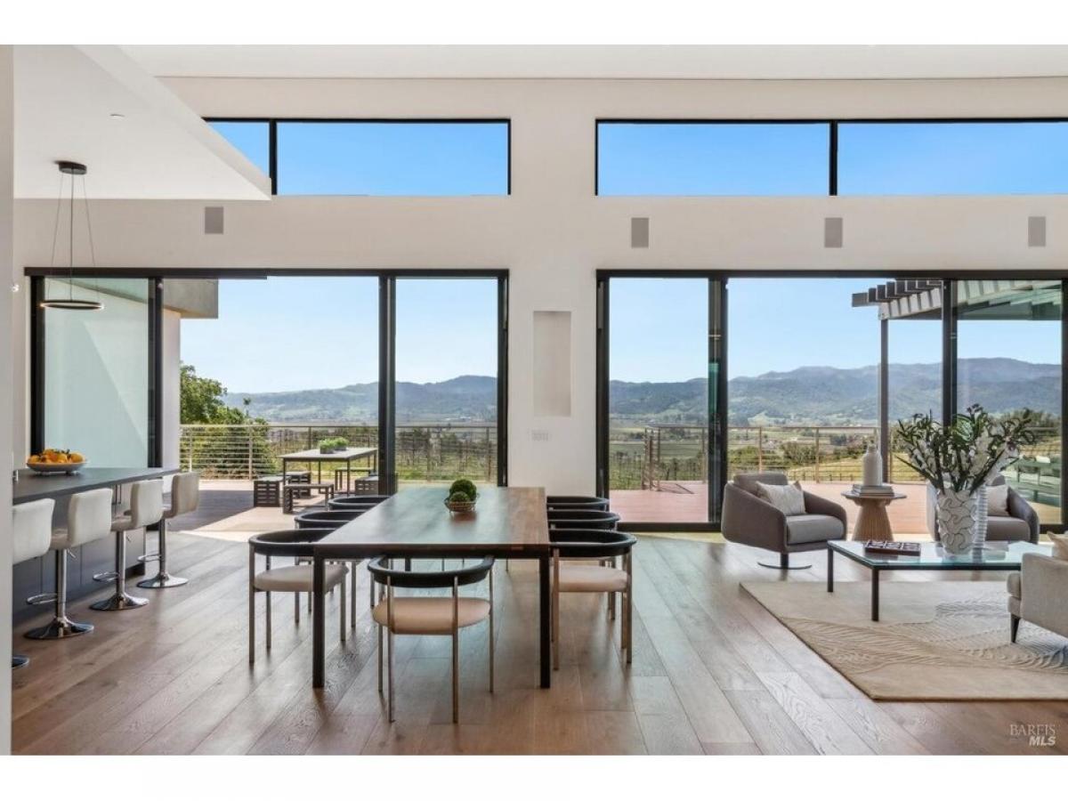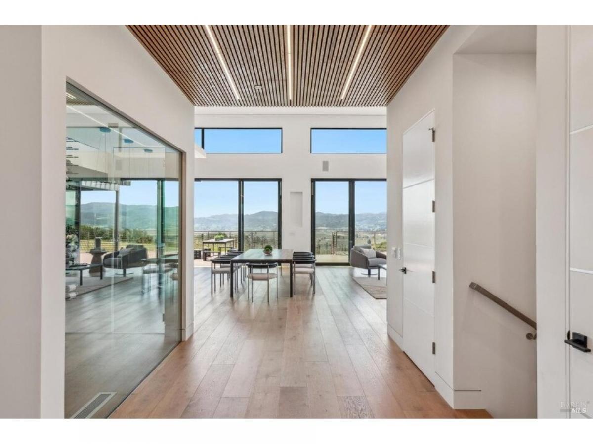 Completed in 2023 located on iconic East Side of Napa with stunning panoramic views amp; modern sophistication featuring 2 homes totaling 5000 sq ft amp; 5 ensuite BDR on 2.27 acres in a private gated setting. Main house with 3 ensuite BDR all on main level, 3811 sq ft amp; spacious great room with 18#039;ceilings amp; walls of glass that open to expansive outdoor entertaining area including roof top deck all with extraordinary views! Open floorplan concept offers gourmet kitchen with counter seating, large dining area, family room, frameless glass temperature-controlled wine cellar amp; wet bar. All ensuites have view decks with outdoor seating areas amp; feature spa-like baths with outdoor showers. Main ensuite offers a gas fireplace amp; 2 view decks. Single level guest house (GH) with 1189 sq ft amp; 2 ensuite BDRMs also features a great room with sliding glass doors that open to outdoor dining amp; living areas. Resort-like amenities featuring large pool, spa, pavilion for outdoor dining amp; lounging amp; bathroom with outdoor shower. Each home has an attached garage with Tesla charger. Main house features an elevator from the garage all the way up to the rooftop deck with breathtaking views. Located in a private setting equal distance to the towns of Yountville amp; Napa!