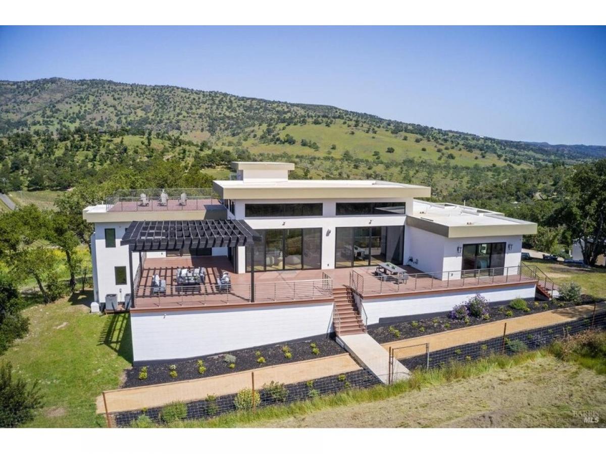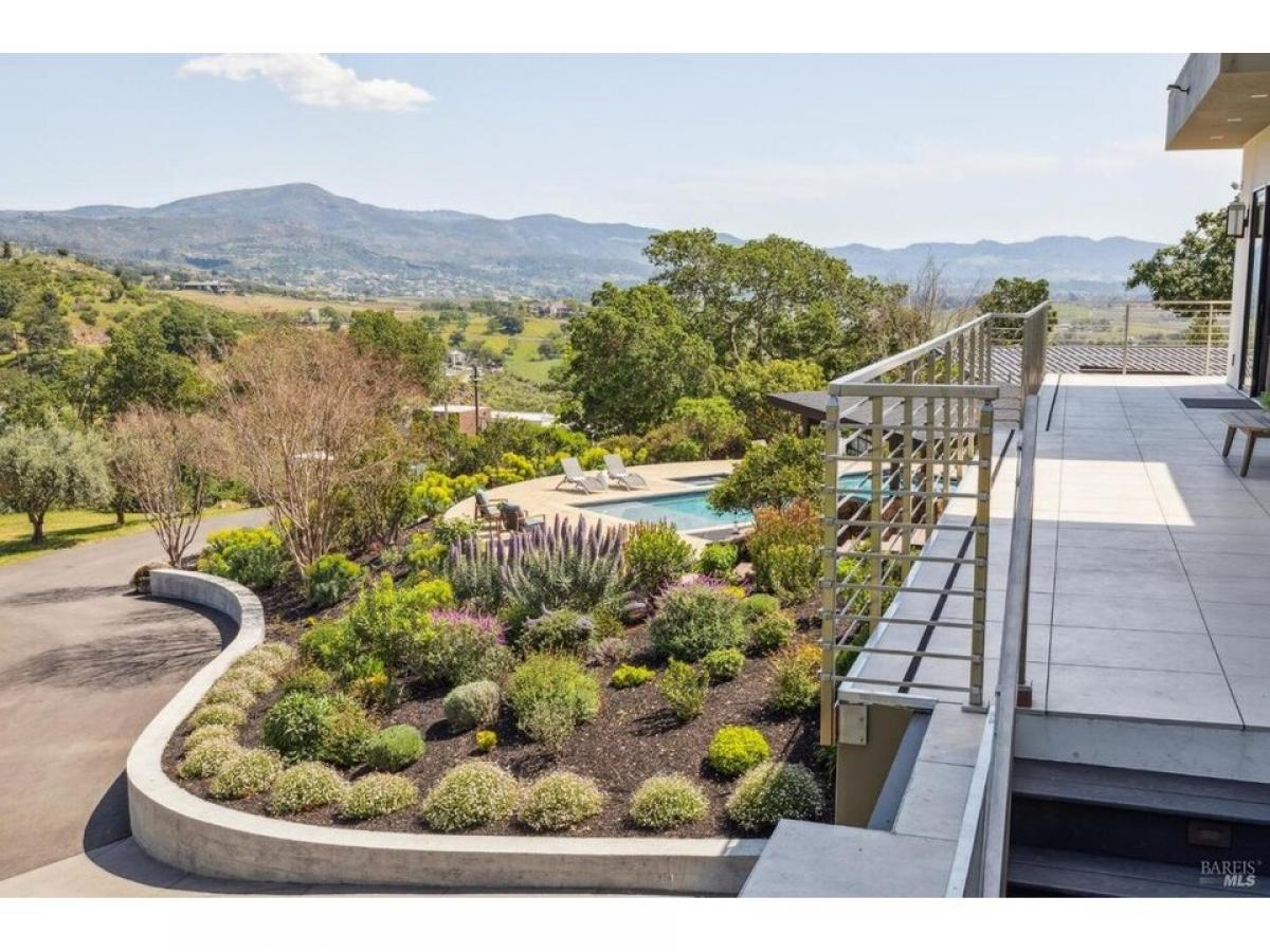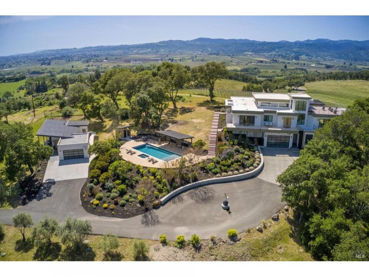 Completed in 2023 located on iconic East Side of Napa with stunning panoramic views amp; modern sophistication featuring 2 homes totaling 5000 sq ft amp; 5 ensuite BDR on 2.27 acres in a private gated setting. Main house with 3 ensuite BDR all on main level, 3811 sq ft amp; spacious great room with 18#039;ceilings amp; walls of glass that open to expansive outdoor entertaining area including roof top deck all with extraordinary views! Open floorplan concept offers gourmet kitchen with counter seating, large dining area, family room, frameless glass temperature-controlled wine cellar amp; wet bar. All ensuites have view decks with outdoor seating areas amp; feature spa-like baths with outdoor showers. Main ensuite offers a gas fireplace amp; 2 view decks. Single level guest house (GH) with 1189 sq ft amp; 2 ensuite BDRMs also features a great room with sliding glass doors that open to outdoor dining amp; living areas. Resort-like amenities featuring large pool, spa, pavilion for outdoor dining amp; lounging amp; bathroom with outdoor shower. Each home has an attached garage with Tesla charger. Main house features an elevator from the garage all the way up to the rooftop deck with breathtaking views. Located in a private setting equal distance to the towns of Yountville amp; Napa!