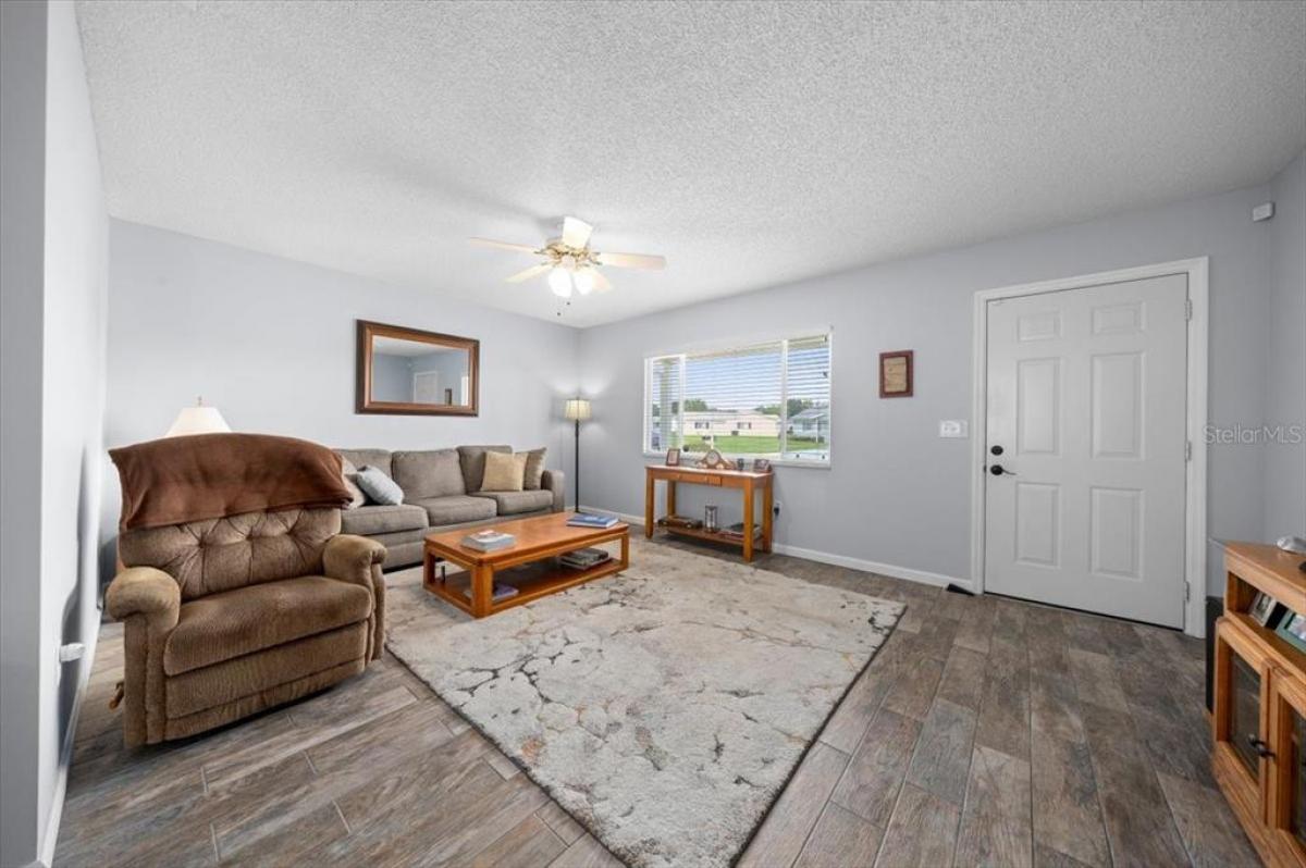 Graciously positioned on a .3-acre corner lot in Spruce Creek South, this updated 2-bedroom, 2-bath Evergreen model has a strong street presence with added breathing room in one of Summerfield’s premier 55+ golf communities. From the front, a curbed landscape frames the home with neat edges and inviting charm, and the wide front porch creates a welcoming entry with plenty of room to sit, stay awhile, and quietly take in the neighborhood.Inside, porcelain tile extends across the main living areas met by fresh paint, Bali window treatments, updated 6-panel doors, and new AC vent covers + ceiling fans in every room. Crisp and bright, the kitchen is smartly arranged with granite counters, stainless appliances, and a built-in microwave to suit the everyday cook.Sliding doors from the dining room open onto a full-length lanai lined with vinyl windows and cooled by ceiling fans. It lives like part of the interior, with space that supports year-round use and adds flexibility to the home's overall layout.The primary suite is spacious and serene, with a walk-in closet and renovated ensuite that includes soft-close cabinetry, granite surfaces, and a Bathfitter shower finished with classic subway tile. A generous guest room includes a walk-in closet and convenient access to a refreshed full bath with updated vanity, modern lighting, and a convenient tub-shower combination.Storage and utility are quite exceptional here. The two-car garage includes a new opener with security camera, insulated panels, attic access via built-in ladder, and updated springs. At the back of the property, a separate golf cart garage with roll-up door offers space for hobbies or seasonal storage.Recent improvements include a 2021 roof, 2023 HVAC, 2024 water heater, and a new electrical panel installed in 2025. The irrigation system, installed in 2022, is WiFi-enabled and fully operational. Kitchen appliances were replaced in 2023, with washer and dryer updated in 2024.Septic inspected and pumped 2024. Termite inspection July 2025 with transferable warranty.Spruce Creek South surrounds the Links Golf Course, an 18-hole, par-72 championship course designed by Terry Doss. Residents also enjoy access to a clubhouse, fitness center, pool, pub, library, billiards room, and an active schedule of social and recreational events. The community is located just minutes from The Villages, offering even more options for shopping, dining, and entertainment.