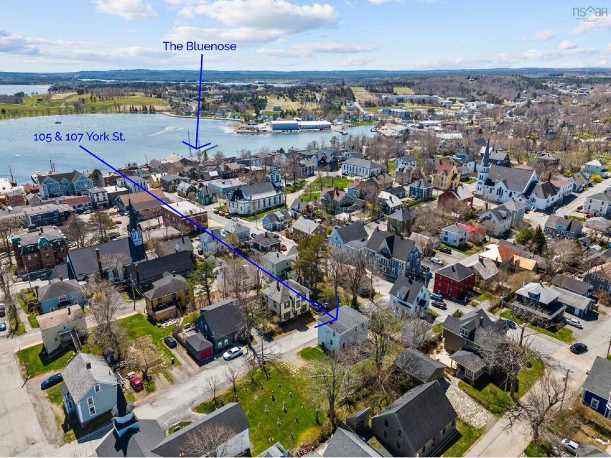 UGLY DUCKLING but great income! This recently completed property has had updated interior work done including all the flooring, bathrooms, kitchens and painting. Enormous potential with $1,300 per month for 105 York St and applications for $2,500 per month for 107 York St totalling $3,800 a month in gross rental income (tenants pay for heating and electrical). Built in 1897, this duplex has a private apartment on street level, plus a second and third level home with five bedrooms, a den, living room, kitchen, and dining room. One bedroom is hooked up for laundry or the second-floor den/office could be a sixth bedroom, so lots of options in terms of the layout. There is a full bathroom on every level. 2,132 square feet of finished living space on three levels, featuring an original archway, and built in dining room cabinets. The main floor living room opens onto a side balcony and there is a back yard deck as well. A charming quiet street with very little traffic, the location is walking distance to all amenities and submersed in the historical brilliance of the UNESCO-designated old town Lunenburg.