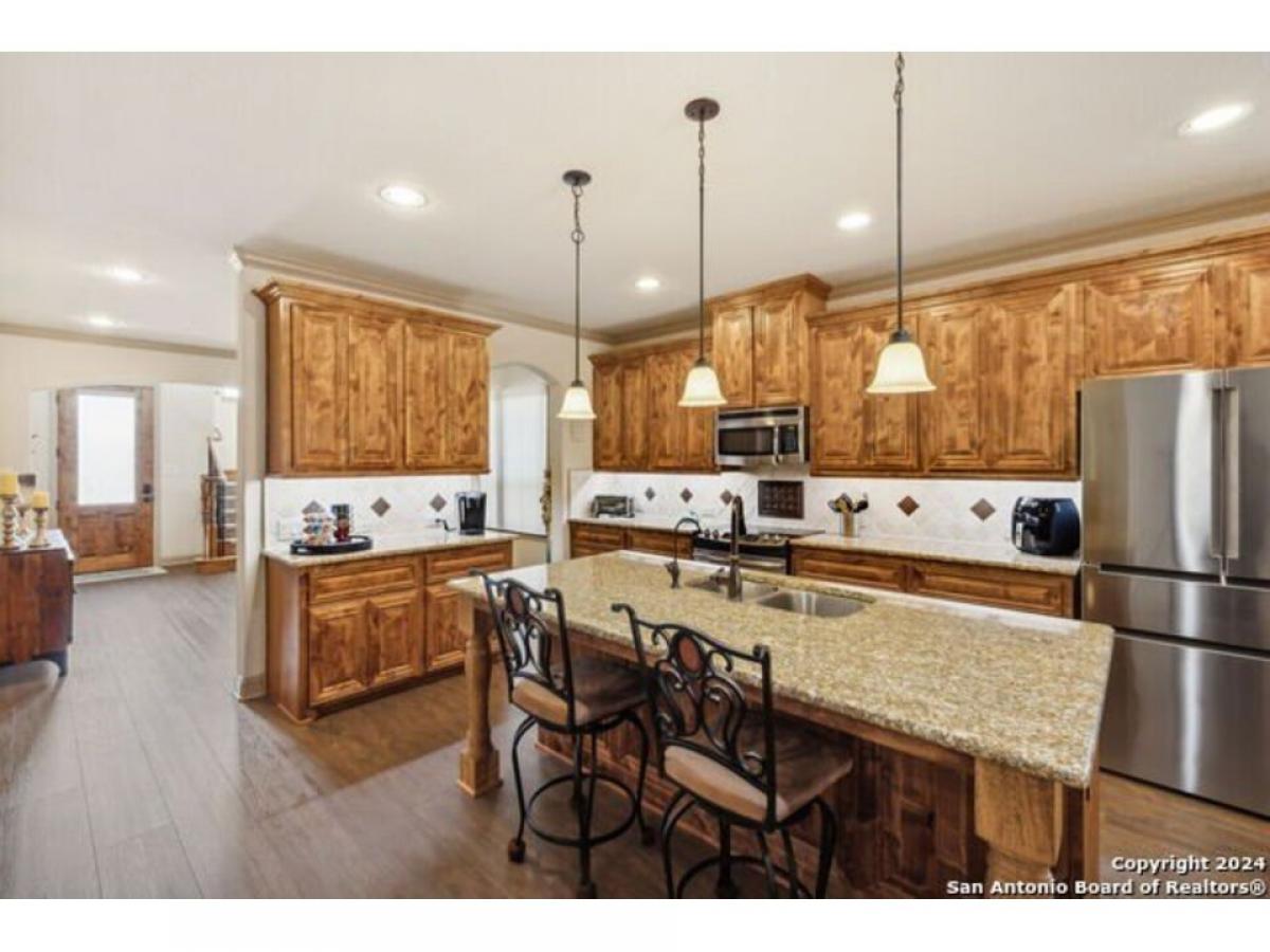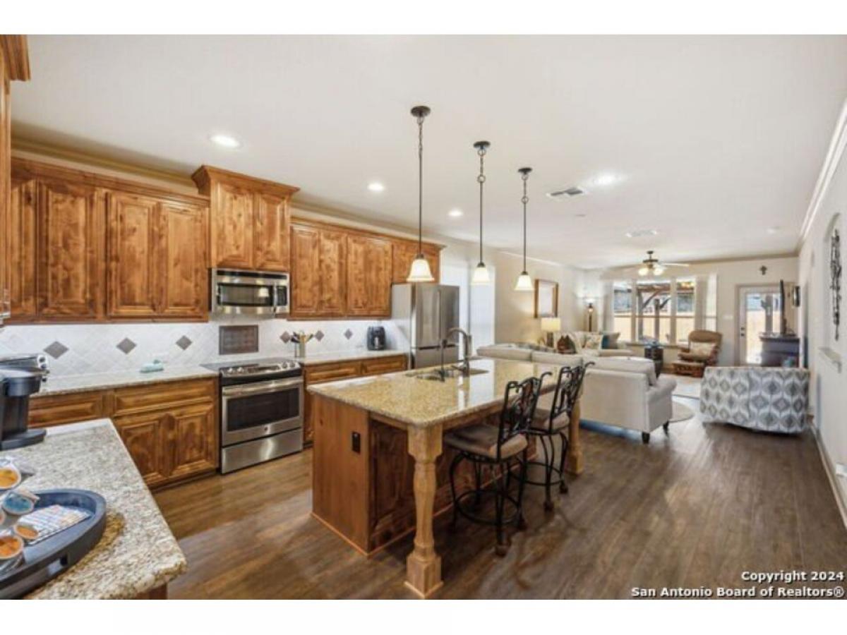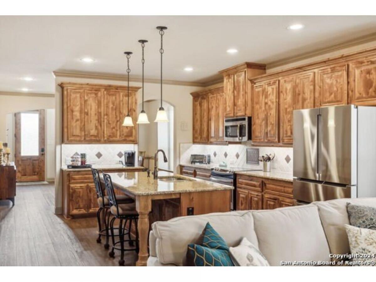 Beautifully designed home that blends comfort and style! This 2,329 sq. ft. residence offers three spacious bedrooms and two full bathrooms on the first level, and a versatile second level flex room with full bathroom. Enjoy the added value of a Bosch refrigerator, washer, dryer, custom window coverings, and a premium Kinetico water softener - inclusions that make moving in a breeze! Furniture is also negotiable. Step inside to a bright, open-concept living area with 9-foot ceilings, creating an inviting and comfortable space for everyday living and entertaining. The well-appointed kitchen with upgraded alder cabinets flows into the living and dining areas. Nestled in the Saddlehorn community, this home offers prime walkability to Boerne schools and is just minutes from downtown Boerne#039;s charming shops, restaurants, and entertainment. Outside, enjoy your own private retreat with an extended covered patio and beautifully maintained backyard-perfect for morning coffee, evening relaxation, or weekend barbecues. This home has it all!