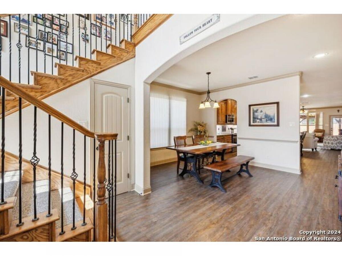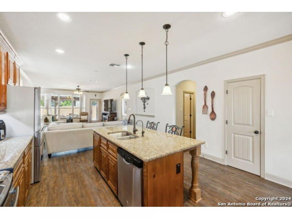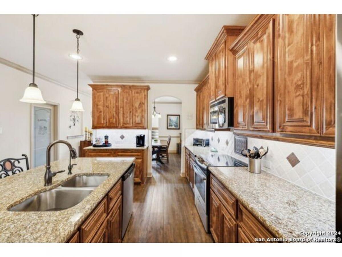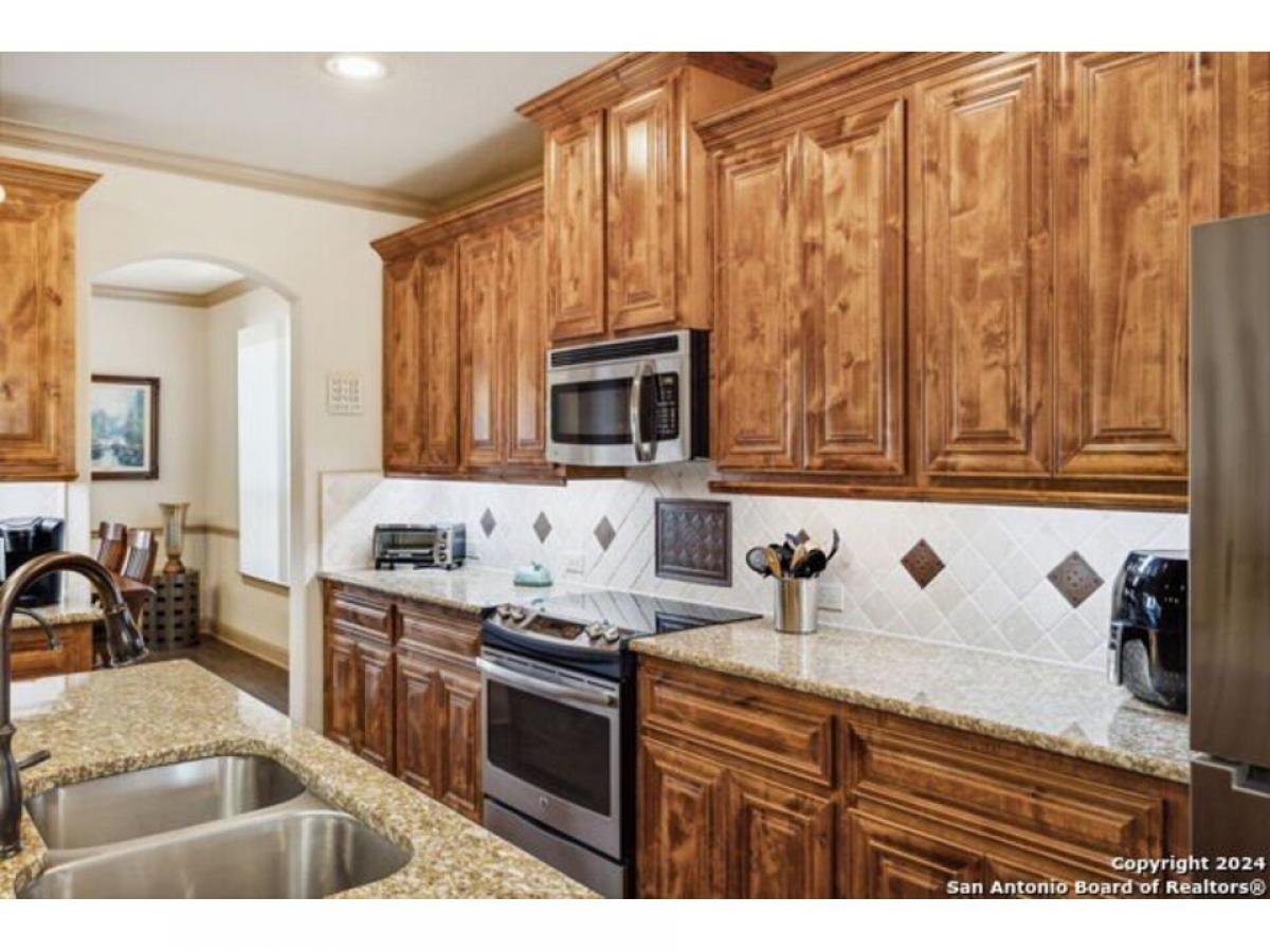 Beautifully designed home that blends comfort and style! This 2,329 sq. ft. residence offers three spacious bedrooms and two full bathrooms on the first level, and a versatile second level flex room with full bathroom. Enjoy the added value of a Bosch refrigerator, washer, dryer, custom window coverings, and a premium Kinetico water softener - inclusions that make moving in a breeze! Furniture is also negotiable. Step inside to a bright, open-concept living area with 9-foot ceilings, creating an inviting and comfortable space for everyday living and entertaining. The well-appointed kitchen with upgraded alder cabinets flows into the living and dining areas. Nestled in the Saddlehorn community, this home offers prime walkability to Boerne schools and is just minutes from downtown Boerne#039;s charming shops, restaurants, and entertainment. Outside, enjoy your own private retreat with an extended covered patio and beautifully maintained backyard-perfect for morning coffee, evening relaxation, or weekend barbecues. This home has it all!