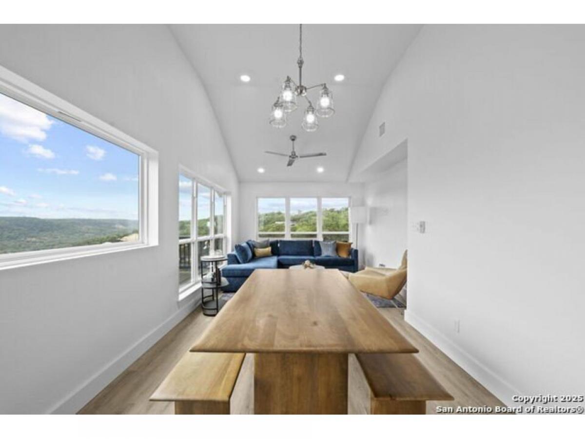 Incredible never-ending Hill Country views from every level! This brand-new construction home in Canyon Lake is perched on a hillside in an ideal location near the lake, boat ramps, Guadalupe River, Whitewater Amphitheater, and local shopping and dining. The spacious layout features a large kitchen with granite countertops, a butcher block island, modern paint colors, and an open dining and living area-all with stunning views. The primary suite is on the main level, while the downstairs family room and additional bedrooms also enjoy those same breathtaking views. Stylish tilework accents the kitchen and bathrooms, and sleek modern finishes are found throughout. The home is being sold as-is, where-is, and a fully furnished, turn-key option is available-furniture is brand new with tags and appliances are under warranty. (Inquire for pricing details on furnished option.) Short-term rental potential is huge!! Investors can hit the ground running! Choose the turn-key option and start booking guests right away with summer just around the corner. This home is being sold together with the corner lot next door. Build on the corner hill side or keep for a larger yard/ entertaining space! Even more opportunity: The home next door, nearly identical in layout and finish, is also available with a turn-key option. Don#039;t miss out! Schedule your showing today and take in these views for yourself!
