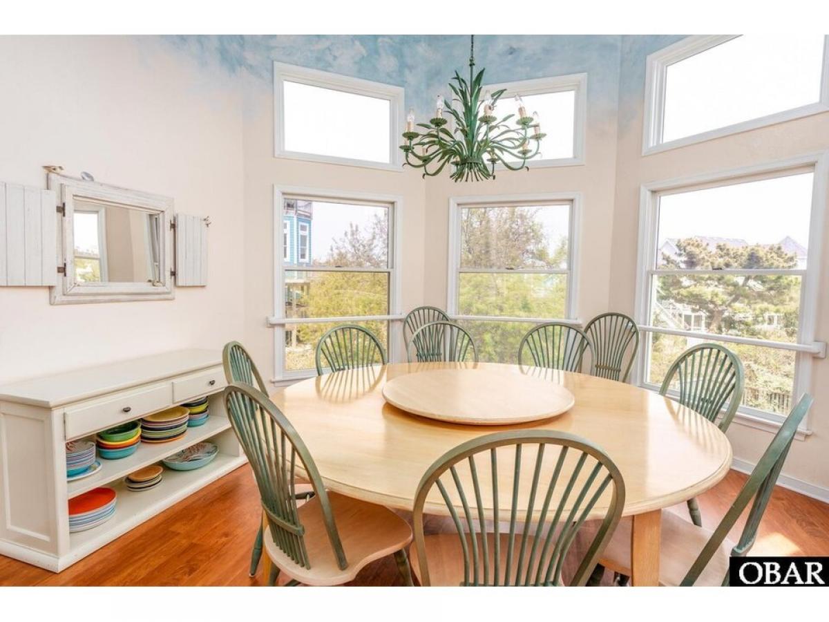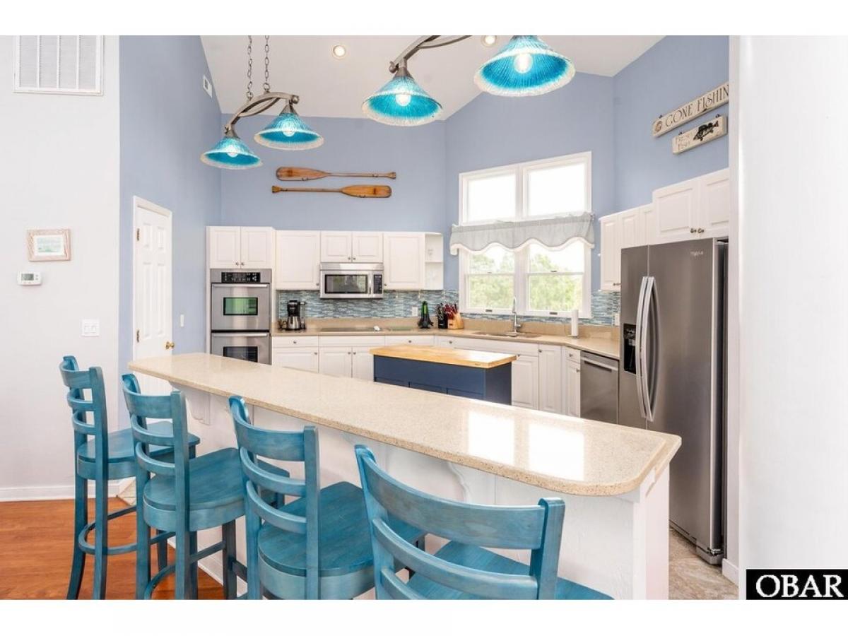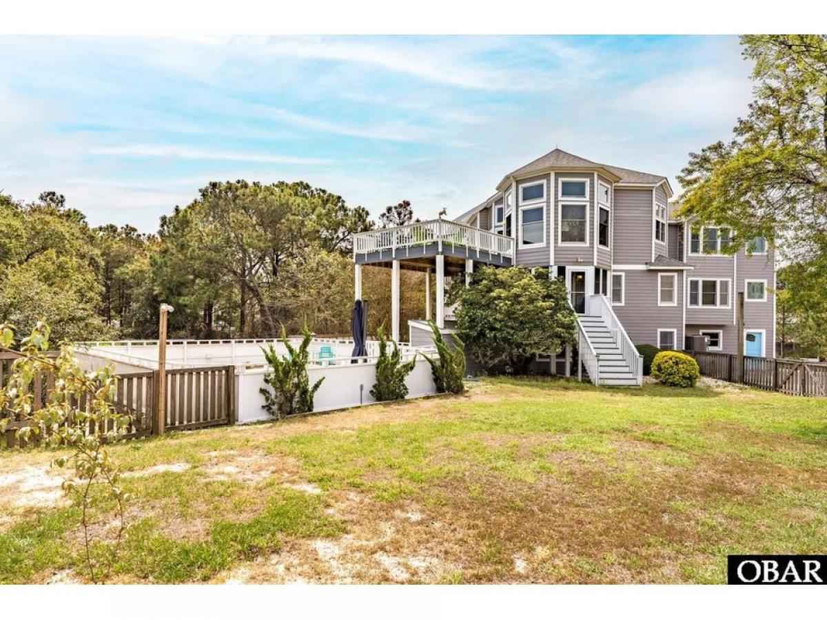 Situated on one of the most elevated sites in Whalehead Beach and nuzzled in beautiful coastal vegetation, this magnificent beach home has it all. It boasts 5 bedrooms, 5 full baths and one partial bath. Two of the bedrooms are master ensuite bedrooms with wonderful modern bathrooms. This stunning home has a spacious great room with a gas fireplace and sliding glass doors that open onto a large sundeck with an ocean view. Just off the great room is a Ships Watch area that includes a game table. The home has a beautiful roomy kitchen adorned with quartz countertops, a prep island and stainless steel appliances including a range, double wall ovens, dishwasher and refrigerator with an icemaker. On the ground level there are two washers and two dryers as well as a rec room with a pool table, a small bonus room and a separate a sizeable den with a large screen TV and a kitchenette equipped with a refrigerator, microwave, and range oven. On the mid level there is an office that opens onto a cozy screen porch with steps down to a nice fenced in yard, perfect for children and pets. The large private pool has a spacious concrete pool deck for sunbathing. Just outside the pool area is a small private patio in a garden area with a picnic table and extra chairs as well as a large gas grill. This home is located just a short walk to the prettiest beach in Corolla. No worry of flooding on this high lot and no flood insurance is required or needed. Short bike ride to historic Corolla Village, Currituck Lighthouse and Whalehead Club. Truly a dream home with lots of room and extras.