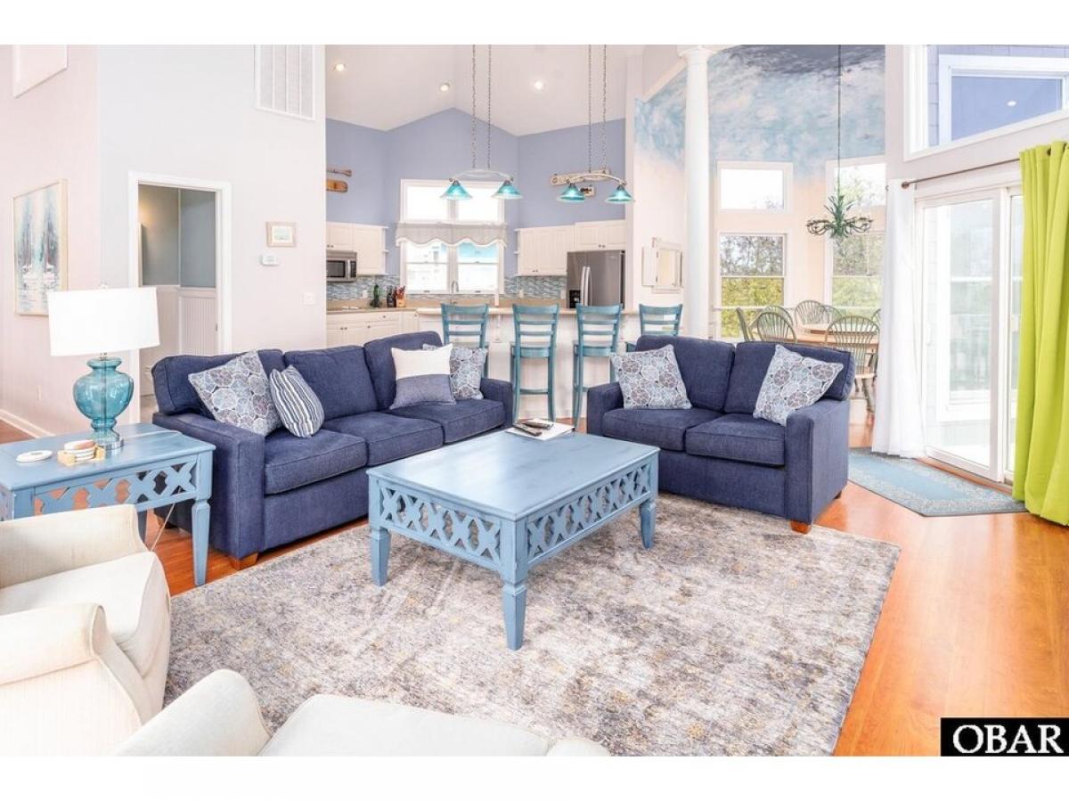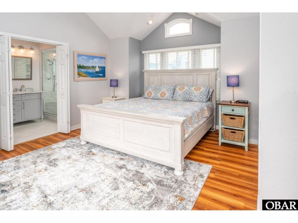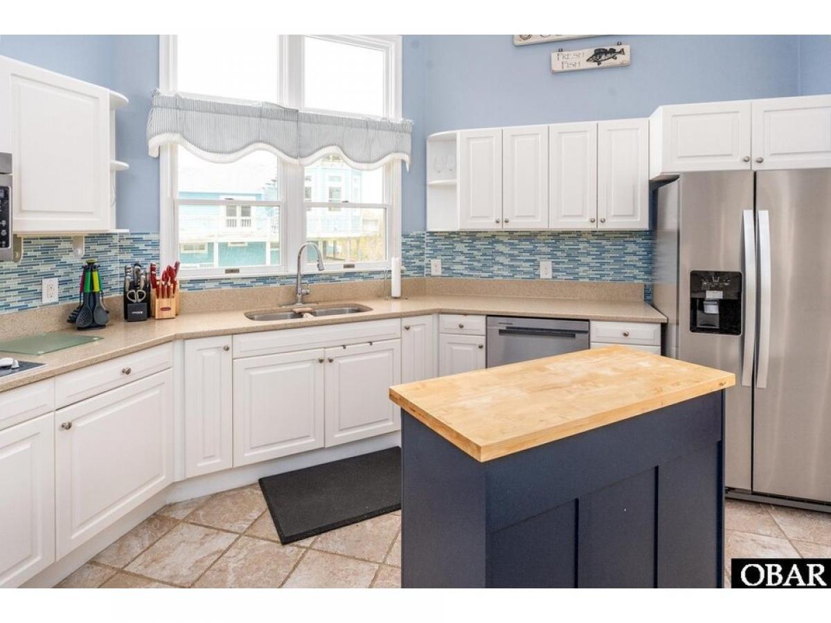 Situated on one of the most elevated sites in Whalehead Beach and nuzzled in beautiful coastal vegetation, this magnificent beach home has it all. It boasts 5 bedrooms, 5 full baths and one partial bath. Two of the bedrooms are master ensuite bedrooms with wonderful modern bathrooms. This stunning home has a spacious great room with a gas fireplace and sliding glass doors that open onto a large sundeck with an ocean view. Just off the great room is a Ships Watch area that includes a game table. The home has a beautiful roomy kitchen adorned with quartz countertops, a prep island and stainless steel appliances including a range, double wall ovens, dishwasher and refrigerator with an icemaker. On the ground level there are two washers and two dryers as well as a rec room with a pool table, a small bonus room and a separate a sizeable den with a large screen TV and a kitchenette equipped with a refrigerator, microwave, and range oven. On the mid level there is an office that opens onto a cozy screen porch with steps down to a nice fenced in yard, perfect for children and pets. The large private pool has a spacious concrete pool deck for sunbathing. Just outside the pool area is a small private patio in a garden area with a picnic table and extra chairs as well as a large gas grill. This home is located just a short walk to the prettiest beach in Corolla. No worry of flooding on this high lot and no flood insurance is required or needed. Short bike ride to historic Corolla Village, Currituck Lighthouse and Whalehead Club. Truly a dream home with lots of room and extras.