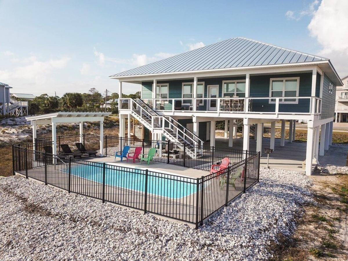 Check out this STUNNING 6 year NEW Home with beautiful gulf views amp; private heated Pool! quot;Blue Bayouquot; is a light amp; bright 2100 sq ft Custom Beauty - a popular vacation rental located on the South side of East Gulf Beach Dr. This home has amazing features with high ceilings, open floor plan with 4 bedrooms 3 with en-suite baths. Talk about easy one level living with the great room open to dining amp; expansive kitchen with granite countertops amp; stainless appliances. Bedrooms are located in each corner of the home providing optimal privacy. Step outside to amazing outdoor living with a beautiful heated pool amp; expansive decks overlooking the pool with views of the Gulf! You will notice huge attention to detail everywhere - Hardi-board siding, Trex decking, standing seam metal roof amp; whole house water softener to name a few! #MUSTSEE! #SGI #MakeThisYours! #GreatViewsToo!