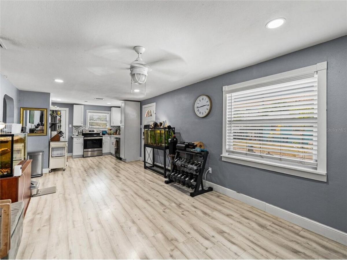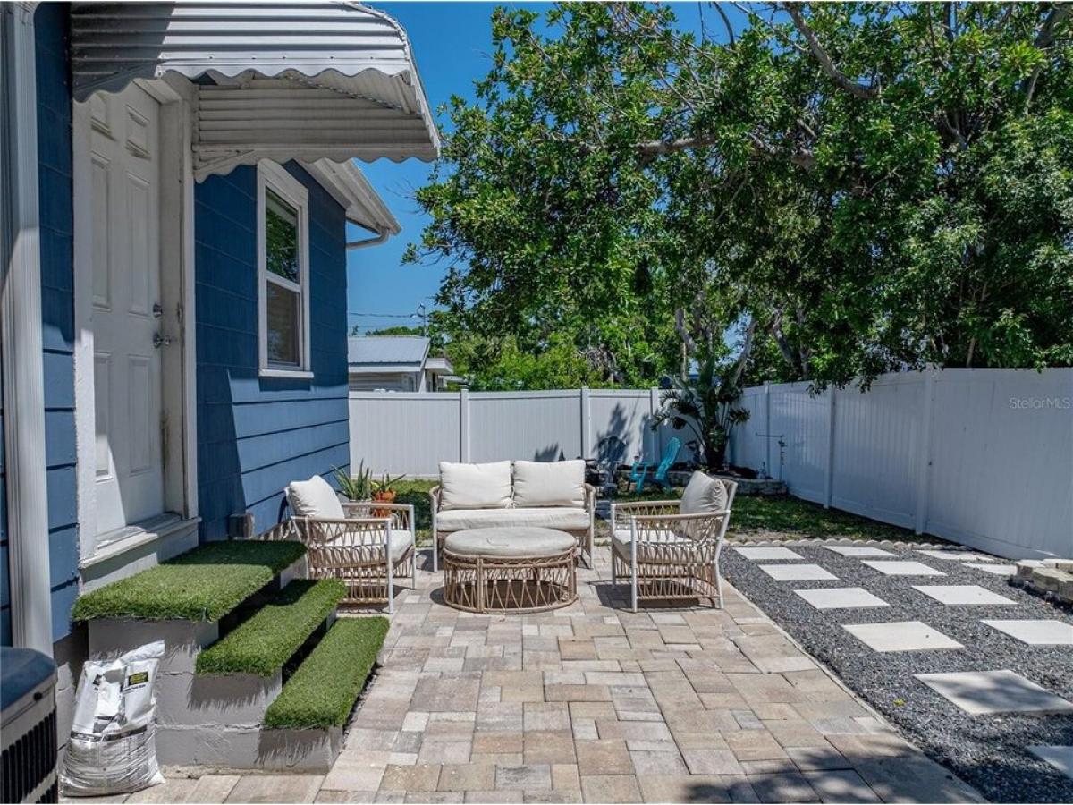 Charming 2BR/1BA bungalow located in Seminole only minutes away from beaches! Fresh and lively landscaping greets you upon arrival. Upon entering, you find the home has been updated throughout with laminate flooring. Architectural details include interior windows that are highlighted with trim and rosette corners and an arched doorway. The bright, open Living room flows into the Kitchen, great for get-togethers. The Kitchen boasts stainless appliances, quartz counters, and a beautiful herringbone tiled backsplash. The Primary bedroom is bright with custom shelving in the closet and access to the backyard oasis. The backyard has been completely landscaped and designed with a pavered patio, separate fire pit, and custom planters along the fence. This home is so close to entertainment and beaches, dining, shopping, and transportation, you will find yourself in heaven. Schedule your showing today!