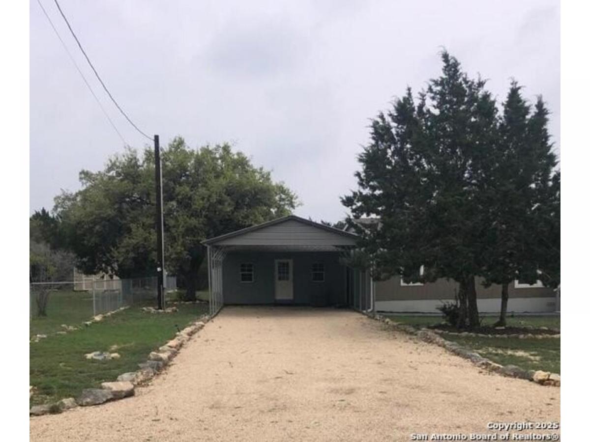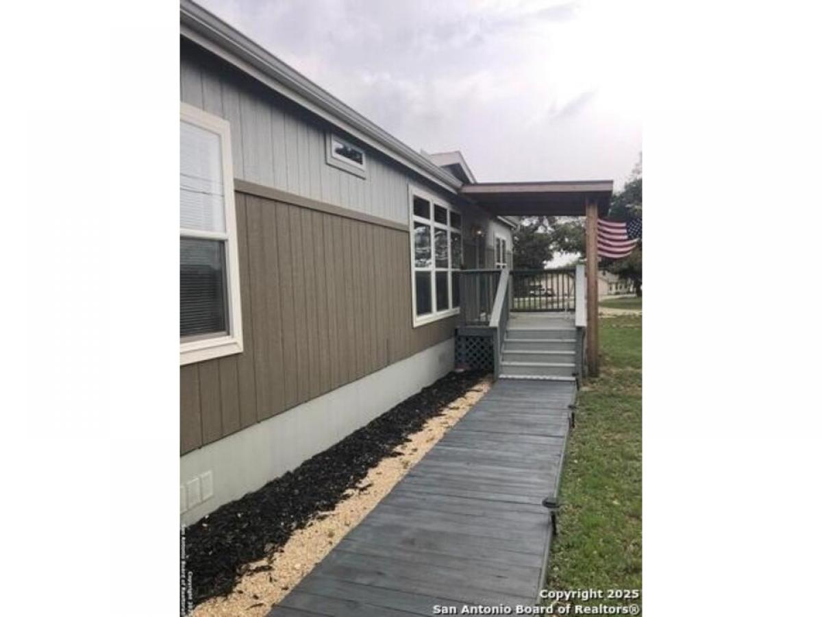 Move-in Ready!! Private Road 1501 in Bandera, Texas, is a mobile/manufactured home built in 2021. The residence offers approximately 1,664 square feet of living space. Residents can access amenities such as a clubhouse, pool, boat ramps, fishing pier, playground, and BBQ area within the gated community of Holiday Villages of Medina. The property is located within the Hondo Independent School District. Home provides a bright amp; inviting space for family gatherings amp; entertainment. Appliances are included. Outside- a carport with an attached shed has added convenience. The property is located across the street from the clubhouse. Schedule a tour today to see all it has to offer!
