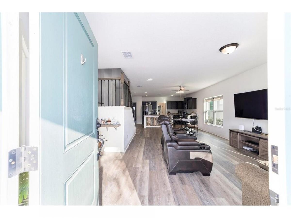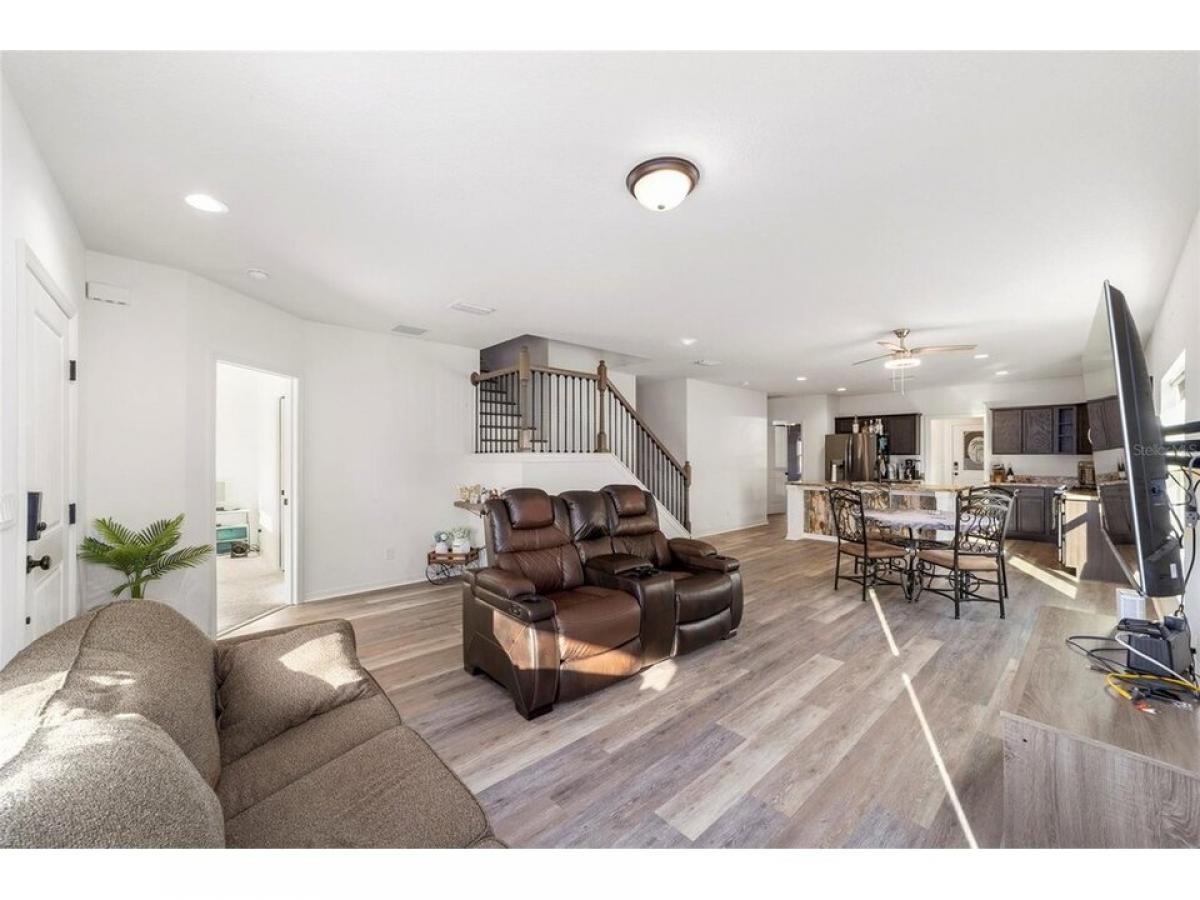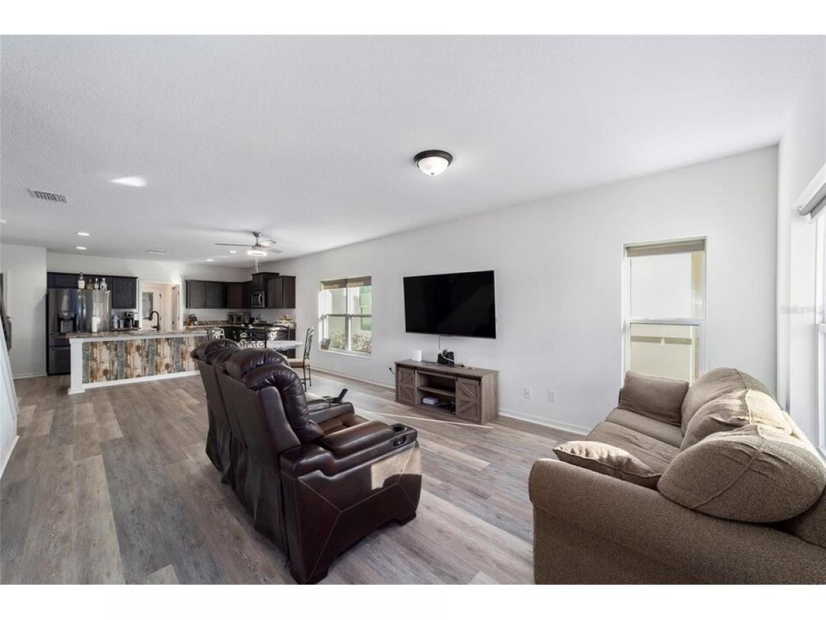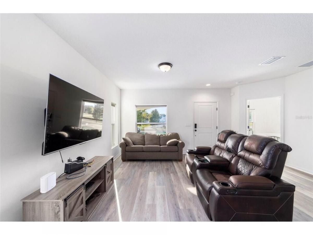 Welcome to Grand Oaks Manor just outside The Villages. Lovely new community with new homes being constructed. This luxury home is a Caroline II model and offers a spacious 4-bedroom, 3.5-bath layout with a study and media loft. Featuring new LVP flooring, this quality-built concrete block home boasts luxurious finishes and a thoughtfully designed floor plan. Open-concept design with a kitchen island and dedicated dining area. The kitchen includes a Gas range and Stainless appliances. Key features include private primary suite on the first floor and a private Guest bedroom with ensuite bath. Upstairs is a media loft and two additional bedrooms and a full bath. Also on the main floor is Interior laundry room with a convenient half bath across the hall. There is an extended screened lanai and patio for outdoor enjoyment and entertaining. A rear entry 2-car garage with brick paver accents on the driveway, walkway, and patio. Enjoy gas tankless water heater, gas range, and gas furnace. The water softener system will remain. Just minutes from stores, restaurants and medical care. Bring the family as this is NOT an AGE RESTRICTED community!!! Enjoy the Pool, Gym, Pickleball, Kitchen for parties and more at the Clubhouse. Golf carts are welcome!
