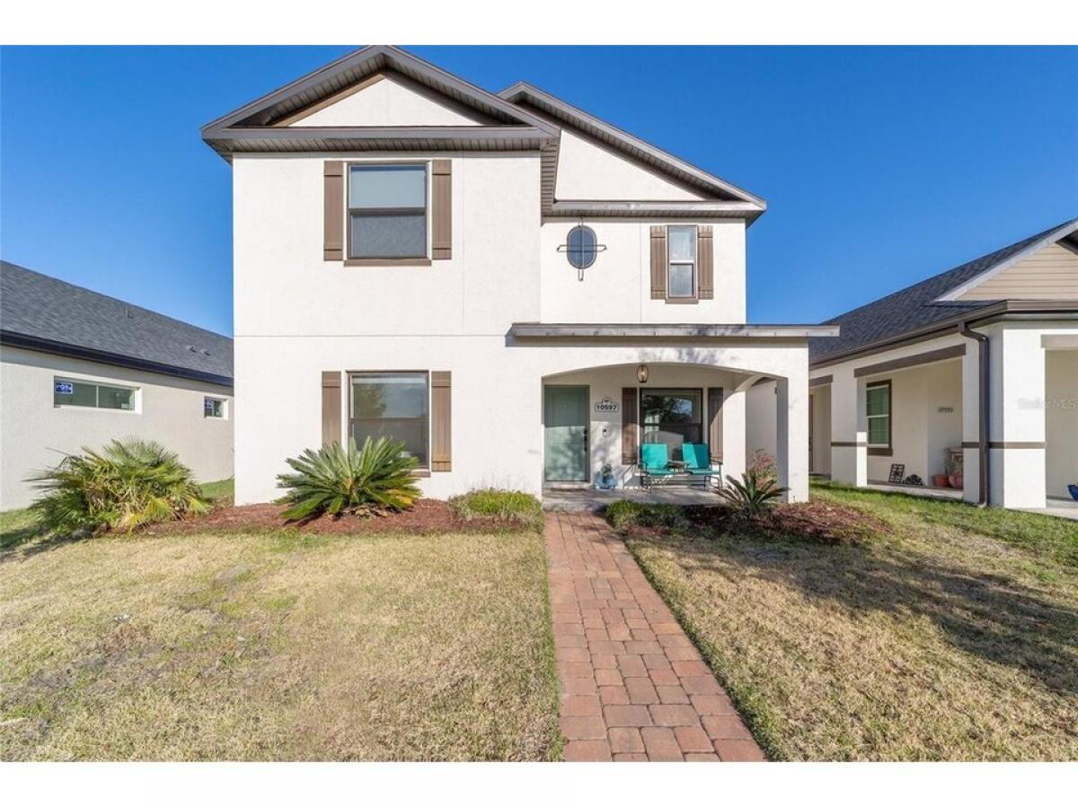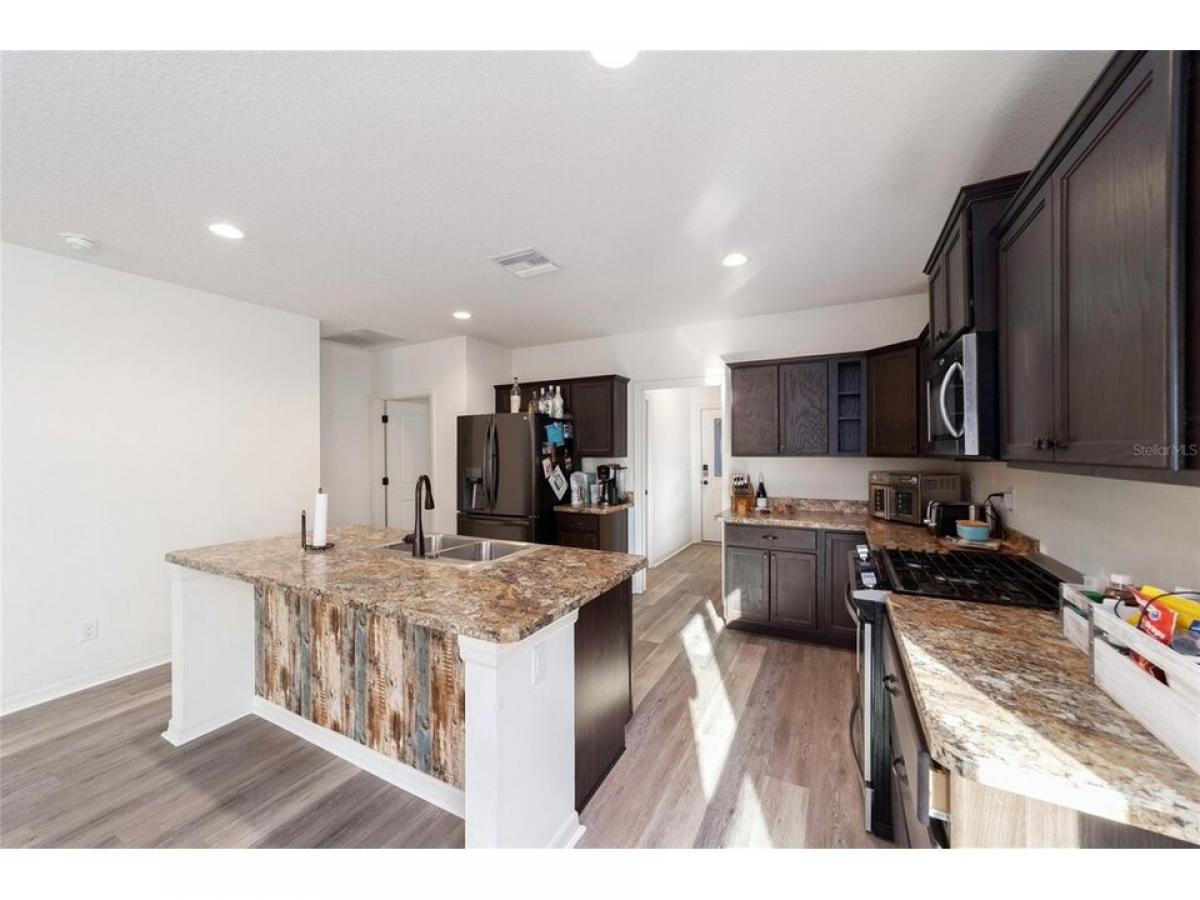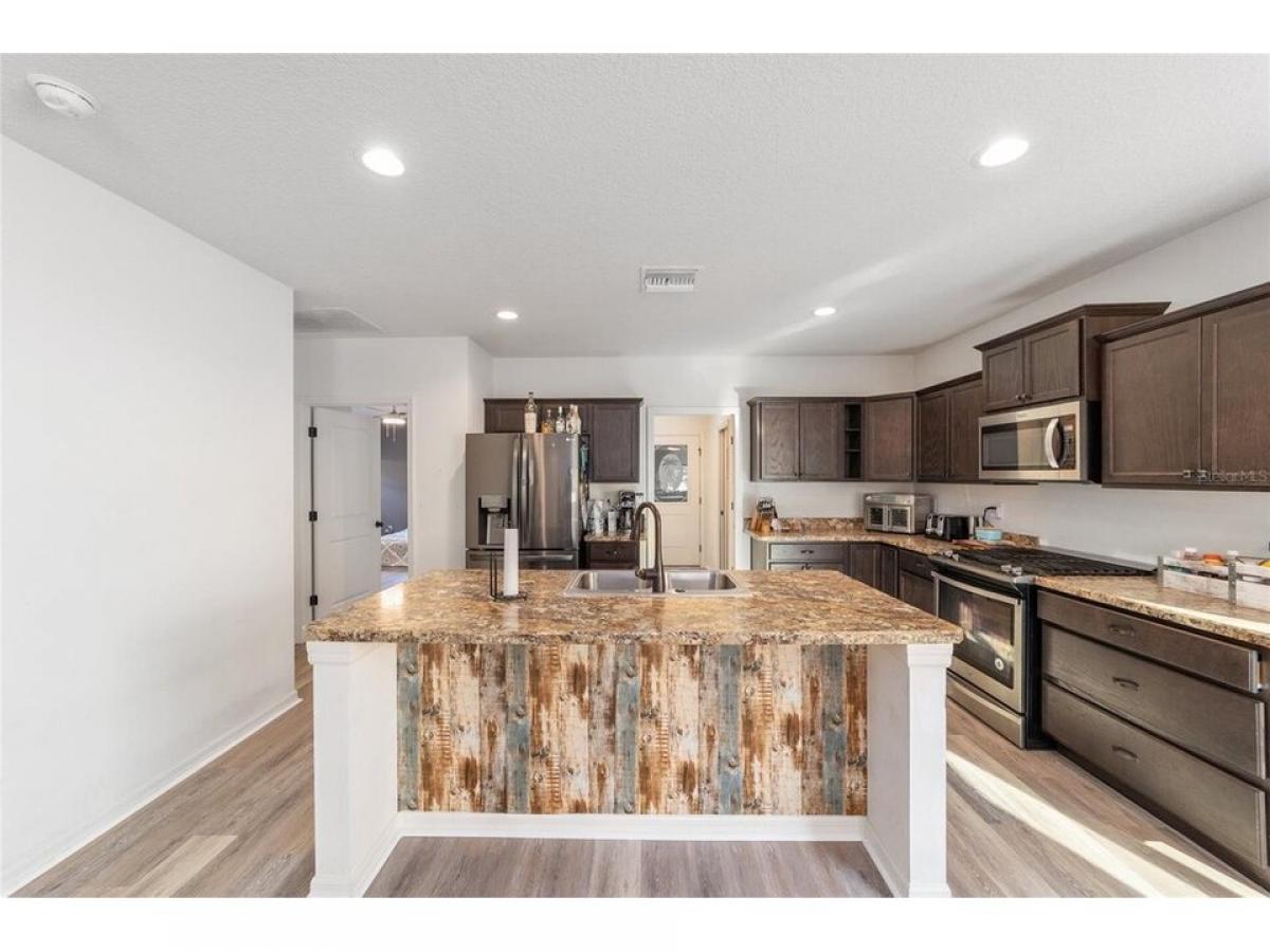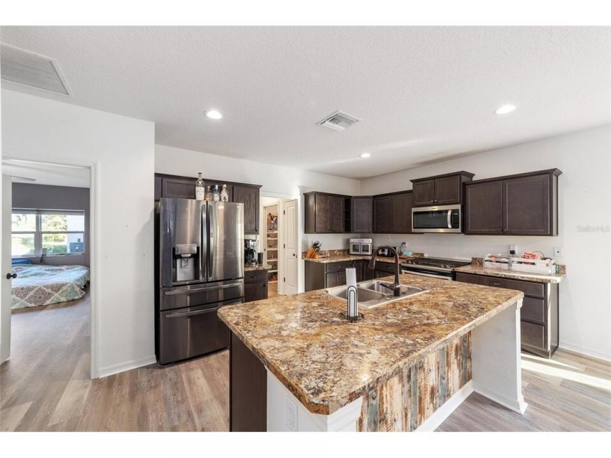 Welcome to Grand Oaks Manor just outside The Villages. Lovely new community with new homes being constructed. This luxury home is a Caroline II model and offers a spacious 4-bedroom, 3.5-bath layout with a study and media loft. Featuring new LVP flooring, this quality-built concrete block home boasts luxurious finishes and a thoughtfully designed floor plan. Open-concept design with a kitchen island and dedicated dining area. The kitchen includes a Gas range and Stainless appliances. Key features include private primary suite on the first floor and a private Guest bedroom with ensuite bath. Upstairs is a media loft and two additional bedrooms and a full bath. Also on the main floor is Interior laundry room with a convenient half bath across the hall. There is an extended screened lanai and patio for outdoor enjoyment and entertaining. A rear entry 2-car garage with brick paver accents on the driveway, walkway, and patio. Enjoy gas tankless water heater, gas range, and gas furnace. The water softener system will remain. Just minutes from stores, restaurants and medical care. Bring the family as this is NOT an AGE RESTRICTED community!!! Enjoy the Pool, Gym, Pickleball, Kitchen for parties and more at the Clubhouse. Golf carts are welcome!