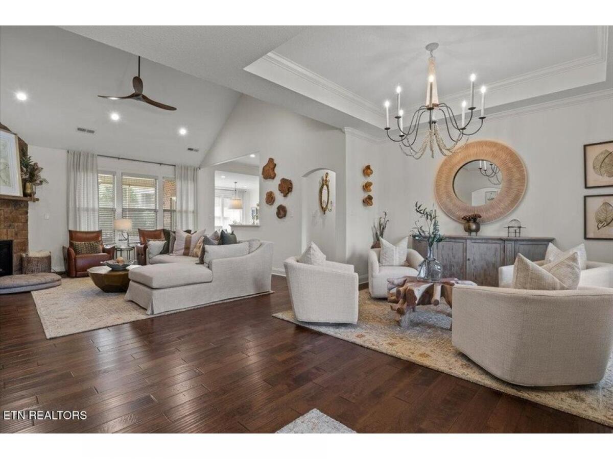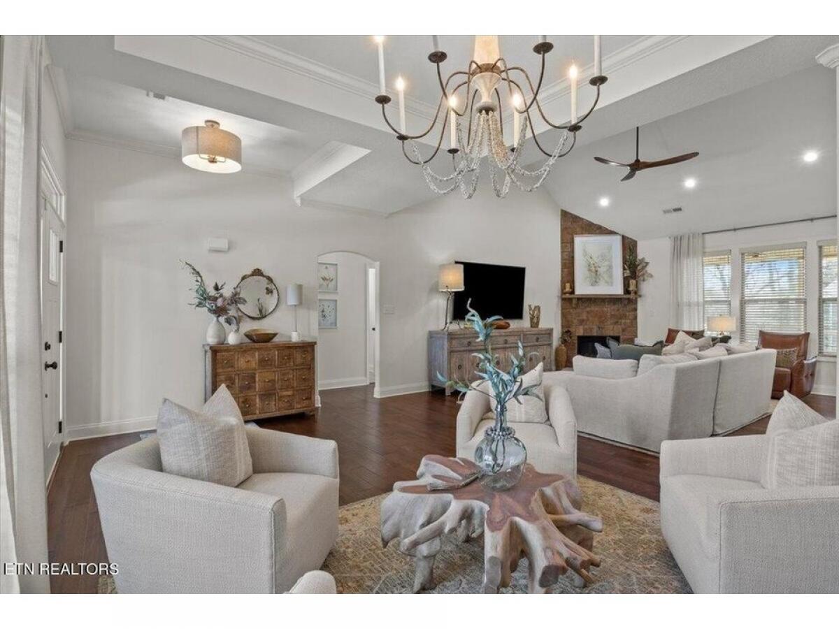 ALCOA CITY SCHOOLS. Check out this stunning, all brick home in Andover subdivision. This elegant, custom built home on a cul-de-sac street in Alcoa features a split bedroom floor plan with amazing upgrades you#039;re sure to appreciate. The perfectly manicured lawn is complete with mature landscaping amp; a tranquil fire pit area surrounded by roses. Inside boasts hardwood floors, 9 ft ceilings amp; crown molding throughout. The cathedral ceiling great room with stone fireplace is open to the dining room with trey ceiling amp; the gourmet kitchen that offers granite, stainless appliances, gas cook top, pantry amp; large breakfast room. The spacious owner#039;s suite is complete with trey ceilings, dual vanity, tile walk-in shower, soaker tub amp; walk-in closet with custom closets. Large guest rooms are on the main level plus a huge en-suite upstairs. Relax on the screened porch amp; enjoy the mountain view amp; serenity of your private backyard or make a fire and enjoy the outdoor space! There is also a 2000+/- SF TALL crawl space is sealed and is perfect for all your storage needs