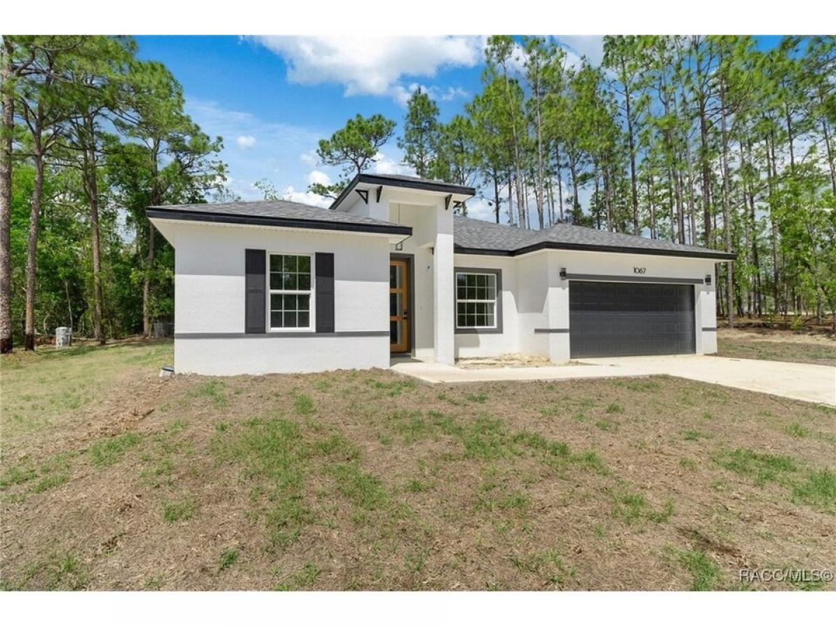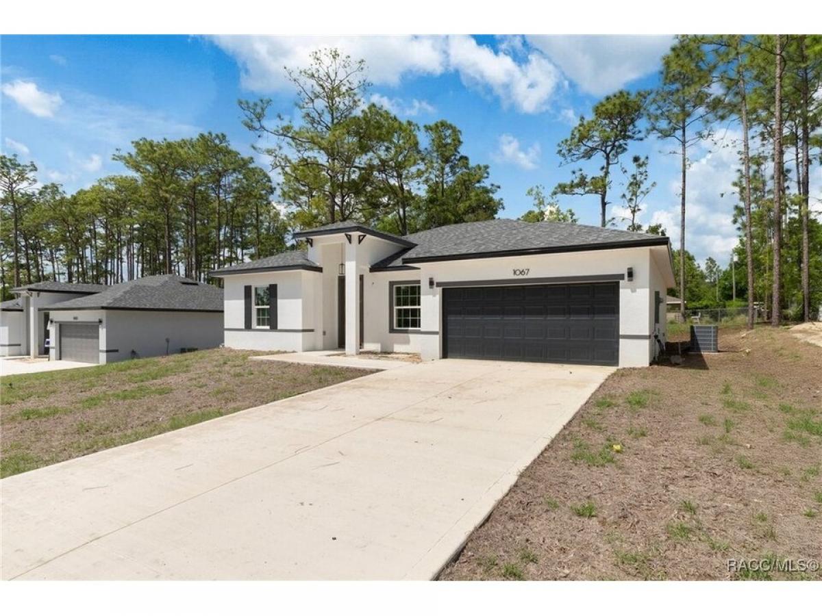 COMPLETED amp; MOVE-IN READY! 2 ADJACENT MODEL HOMES AVAIL NOW - This stunning new construction home in Citrus Springs, slated for completion in March, offers modern design and thoughtful details. Featuring an open-concept layout and split-bedroom floor plan, the home welcomes you with an extra-tall entry door with glass panes for natural light. Luxury vinyl plank flooring flows throughout drawing you from living area to dining and then into the beautiful kitchen, which boasts a quartz waterfall island with bar seating, wood cabinets, a full appliance package, and a pantry. The home includes 4 bedrooms and 2 full baths, including a spacious primary suite with a walk-in closet, dual sinks, and a sleek shower. Sliding glass doors lead to a back patio overlooking the yard, perfect for relaxation or entertaining. Additional highlights include an interior laundry room conveniently located near the primary suite and a two-car garage. With $0 HOA fees, the Citrus Springs community offers parks, playgrounds, golf, and an active community center. An adjacent home is also available for multi-family needs or investment opportunities. This one is calling you home secure it today and start packing those boxes!