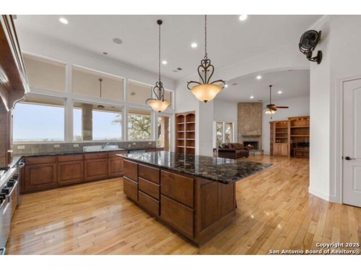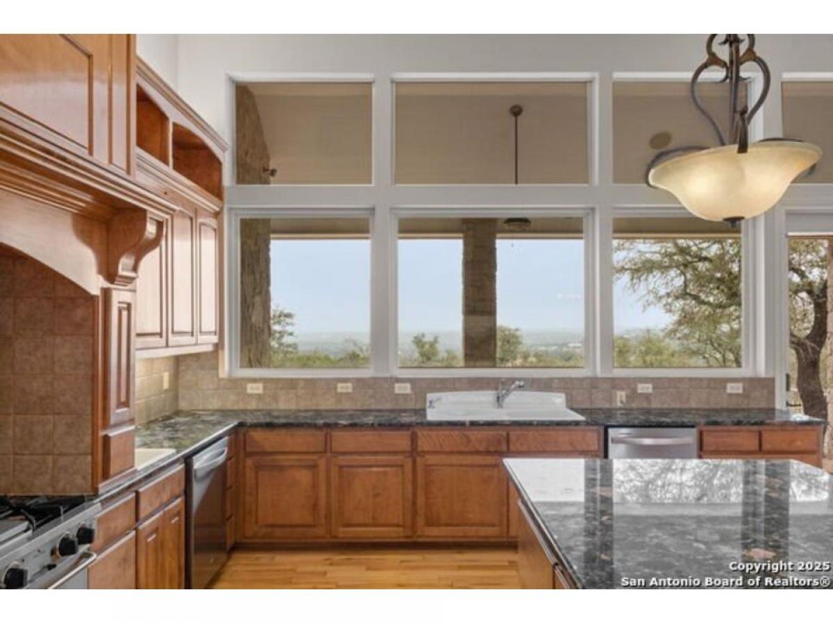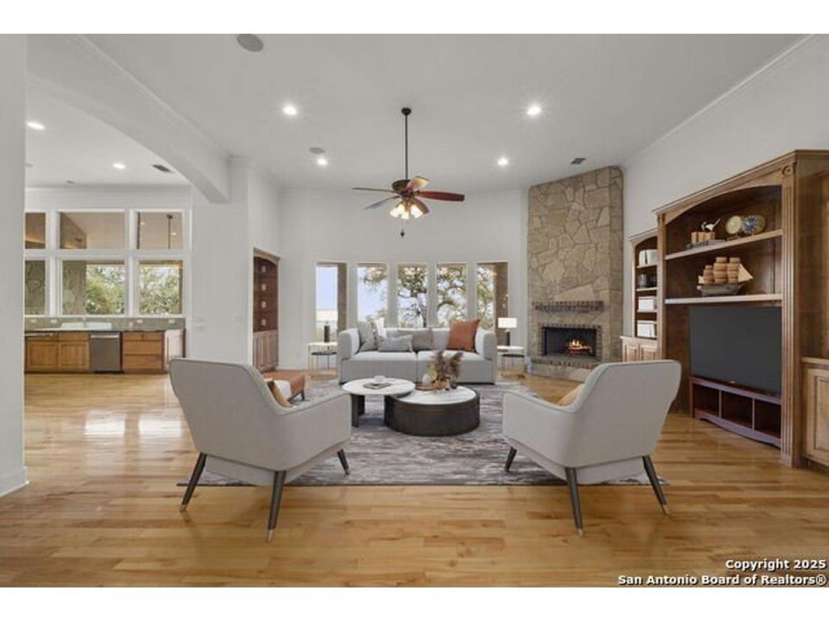 Tucked away in the rolling landscapes of Spring Branch, Texas, this Mike Dawson Custom Home is a symphony of luxury, comfort, and Hill Country charm. Set on over five private acres, this estate is designed for those who seek serenity without sacrificing sophistication. As you approach, the beauty of the natural surroundings sets the stage, offering a sense of peace and exclusivity. Step inside, and you#039;re greeted by soaring ceilings, pristine oak wood flooring, and walls of windows, flooding the space with natural light and framing breathtaking views of the rolling Hill Country terrain. The open-concept design creates a seamless flow-perfect for both grand entertaining and intimate family moments. The heart of the home is its gourmet kitchen, a culinary sanctuary thoughtfully designed for those who love to cook and entertain. Outfitted with a Five Star six-burner gas range, stainless steel double-door refrigerator, two dishwashers, and a built-in wine refrigerator, this kitchen blends high-end functionality with refined aesthetics. Granite countertops provide an elegant workspace, while the sink overlooks serene views of the resort-style pool and rolling Hill Country landscape. Just beyond, the formal dining room elevates every meal with its tray ceiling and refined ambiance, creating the perfect setting for intimate dinners or grand social gatherings. The main living area is nothing short of spectacular. Anchored by a custom rock gas fireplace, it exudes warmth and elegance, inviting gatherings, conversations, and cozy evenings by the fire. Thoughtfully designed custom built-ins add both character and functionality, while a state-of-the-art intercom system ensures effortless connectivity throughout the home. For those who cherish entertainment, the media room with a projector setup offers the ultimate retreat for movie nights, game-day excitement, or fun-filled sleepovers-a dedicated space designed for pure enjoyment. The primary suite is a sanctuary unto itself-a masterfully designed retreat that indulges the senses. A dual-sided gas fireplace flickers softly between the bedroom and spa-like en-suite bath, setting the tone for romantic evenings and tranquil mornings. The oversized soaking tub, spacious walk-in shower, and dual vanities create a lavish, spa-inspired experience, while the expansive walk-in closet offers ample storage and organization, ensuring every detail is effortlessly in place. A beautifully appointed guest house provides a luxurious yet inviting space for friends and family, featuring three bedrooms and two bathrooms, including a Jack-and-Jill bath with a glass-enclosed shower. Whether hosting overnight visitors or extended stays, this separate retreat ensures comfort, privacy, and style. Stepping outside, the true magic of this estate unfolds. With its rolling topography, mature live oak trees, and resort-style pool, this home offers an unparalleled connection to nature. Spend mornings savoring coffee on the covered patio, afternoons basking in the Texas sun by the pool, and evenings unwinding beneath a canopy of stars. Beyond its secluded setting, this estate is perfectly positioned-offering both privacy and convenience, with dining, shopping, and entertainment just minutes away. A home of this caliber and craftsmanship is a rare find. From its timeless design to its breathtaking surroundings, 1069 Fawn River Dr. is a Texas Hill Country experience waiting to be embraced.