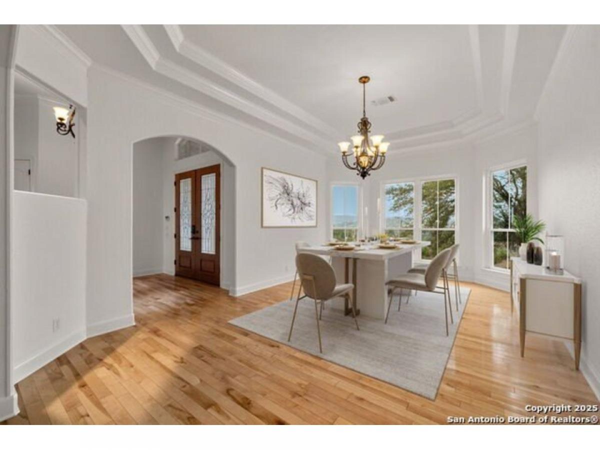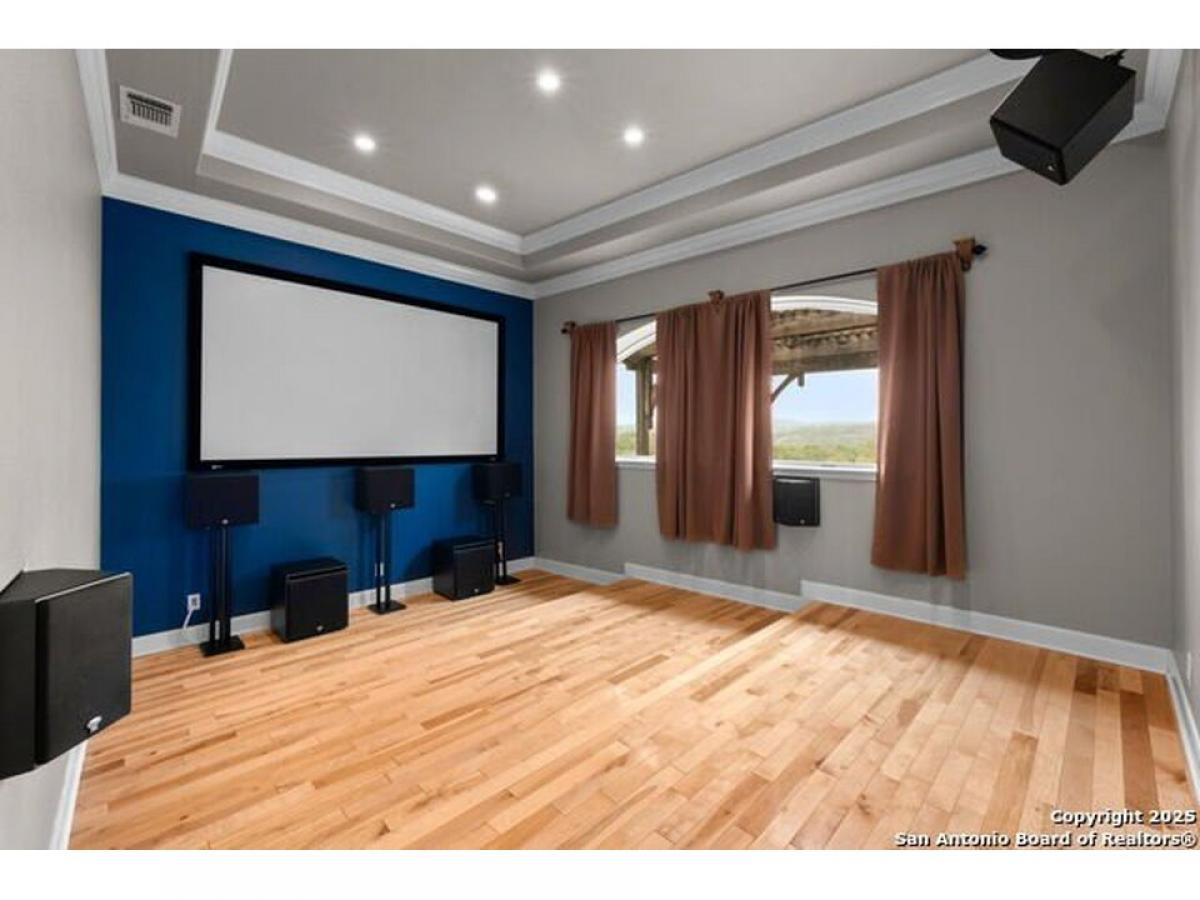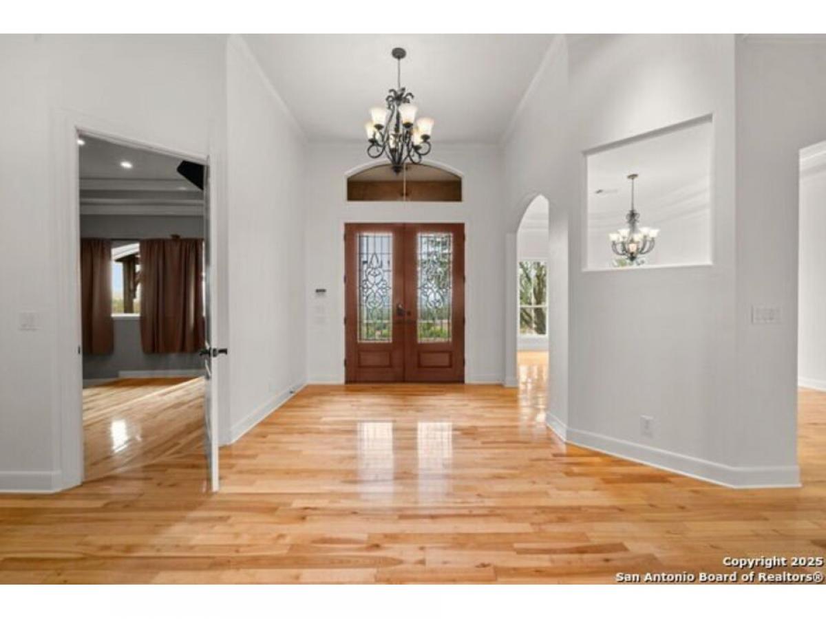 Tucked away in the rolling landscapes of Spring Branch, Texas, this Mike Dawson Custom Home is a symphony of luxury, comfort, and Hill Country charm. Set on over five private acres, this estate is designed for those who seek serenity without sacrificing sophistication. As you approach, the beauty of the natural surroundings sets the stage, offering a sense of peace and exclusivity. Step inside, and you#039;re greeted by soaring ceilings, pristine oak wood flooring, and walls of windows, flooding the space with natural light and framing breathtaking views of the rolling Hill Country terrain. The open-concept design creates a seamless flow-perfect for both grand entertaining and intimate family moments. The heart of the home is its gourmet kitchen, a culinary sanctuary thoughtfully designed for those who love to cook and entertain. Outfitted with a Five Star six-burner gas range, stainless steel double-door refrigerator, two dishwashers, and a built-in wine refrigerator, this kitchen blends high-end functionality with refined aesthetics. Granite countertops provide an elegant workspace, while the sink overlooks serene views of the resort-style pool and rolling Hill Country landscape. Just beyond, the formal dining room elevates every meal with its tray ceiling and refined ambiance, creating the perfect setting for intimate dinners or grand social gatherings. The main living area is nothing short of spectacular. Anchored by a custom rock gas fireplace, it exudes warmth and elegance, inviting gatherings, conversations, and cozy evenings by the fire. Thoughtfully designed custom built-ins add both character and functionality, while a state-of-the-art intercom system ensures effortless connectivity throughout the home. For those who cherish entertainment, the media room with a projector setup offers the ultimate retreat for movie nights, game-day excitement, or fun-filled sleepovers-a dedicated space designed for pure enjoyment. The primary suite is a sanctuary unto itself-a masterfully designed retreat that indulges the senses. A dual-sided gas fireplace flickers softly between the bedroom and spa-like en-suite bath, setting the tone for romantic evenings and tranquil mornings. The oversized soaking tub, spacious walk-in shower, and dual vanities create a lavish, spa-inspired experience, while the expansive walk-in closet offers ample storage and organization, ensuring every detail is effortlessly in place. A beautifully appointed guest house provides a luxurious yet inviting space for friends and family, featuring three bedrooms and two bathrooms, including a Jack-and-Jill bath with a glass-enclosed shower. Whether hosting overnight visitors or extended stays, this separate retreat ensures comfort, privacy, and style. Stepping outside, the true magic of this estate unfolds. With its rolling topography, mature live oak trees, and resort-style pool, this home offers an unparalleled connection to nature. Spend mornings savoring coffee on the covered patio, afternoons basking in the Texas sun by the pool, and evenings unwinding beneath a canopy of stars. Beyond its secluded setting, this estate is perfectly positioned-offering both privacy and convenience, with dining, shopping, and entertainment just minutes away. A home of this caliber and craftsmanship is a rare find. From its timeless design to its breathtaking surroundings, 1069 Fawn River Dr. is a Texas Hill Country experience waiting to be embraced.