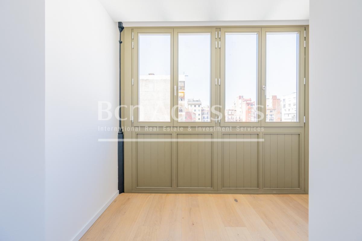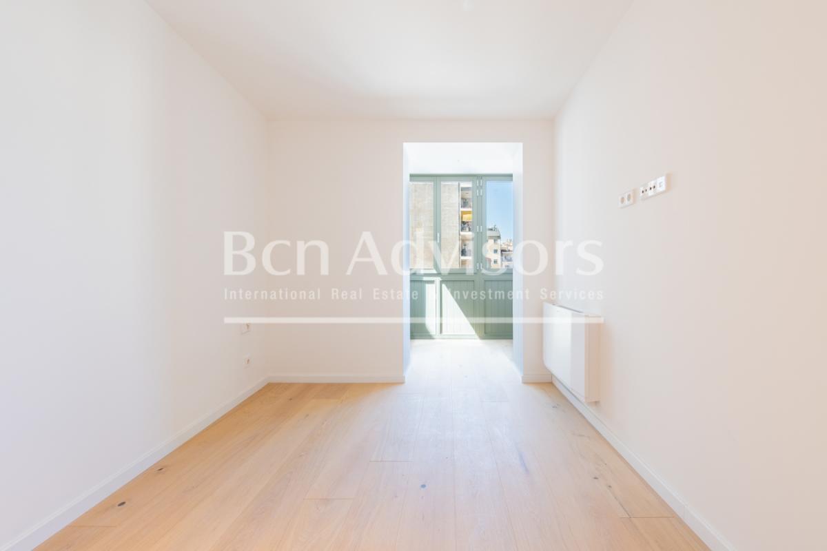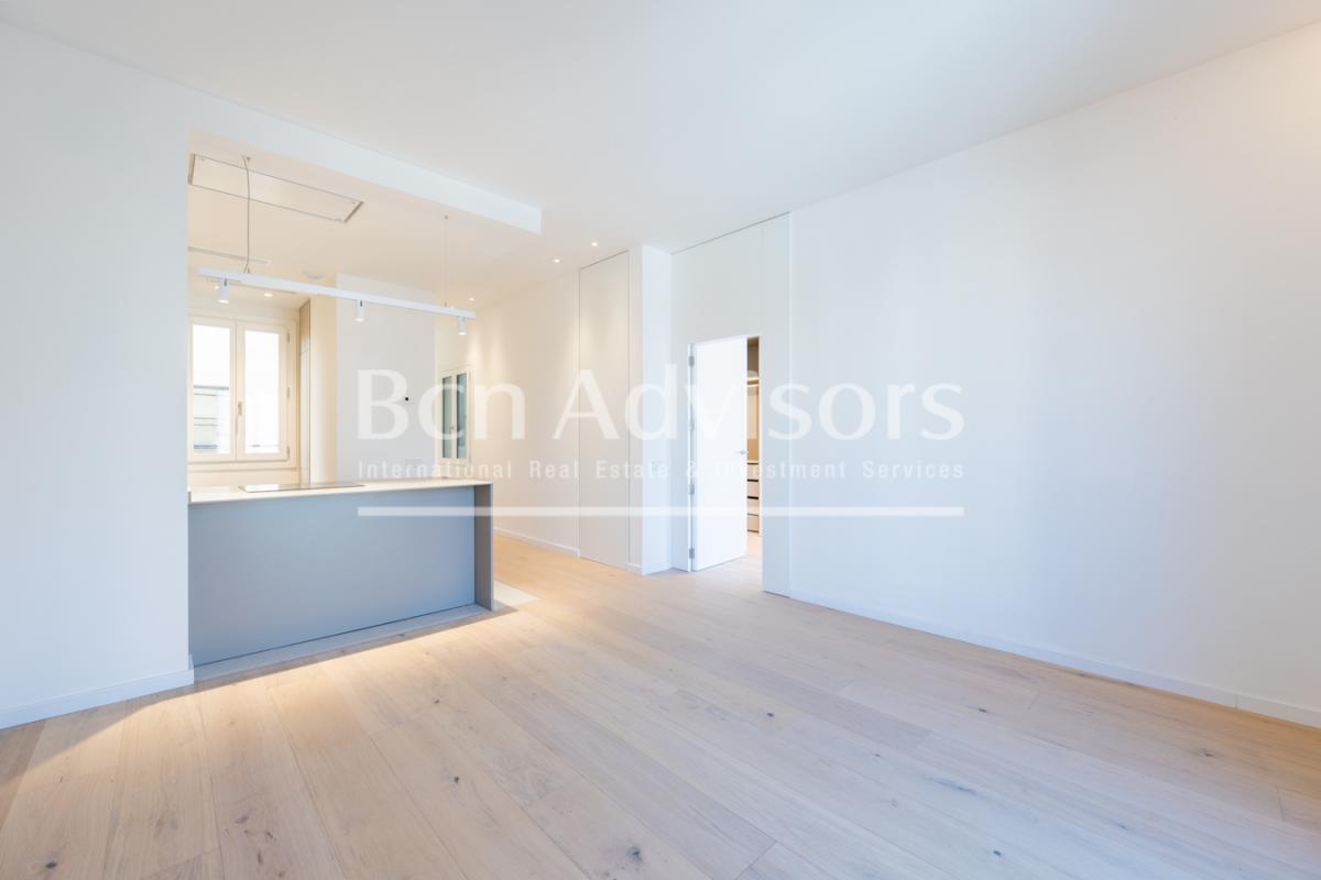 This upscale new build project is located in one of the most privileged areas of Barcelona: Rambla de Catalunya, in the Eixample. The building, dating back to the end of the 19th century, has a beautiful facade and a mix of contemporary and timeless interiors. Here you can enjoy luxury urban living at its best.The flat is located on the 2nd real floor of the building and has 96 built interior sqm. It has been completely renovated and carefully designed by the prestigious interior design studio Vilablanch. With high ceilings, exposed brick walls and top quality finishes, this flat is a dream home. It conveys the cultural and aesthetic appeal of Barcelona, providing a strategic base from which to enjoy all that the city has to offer.