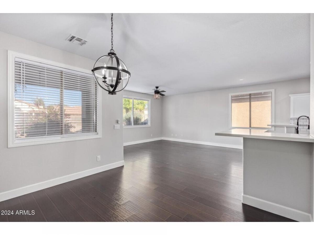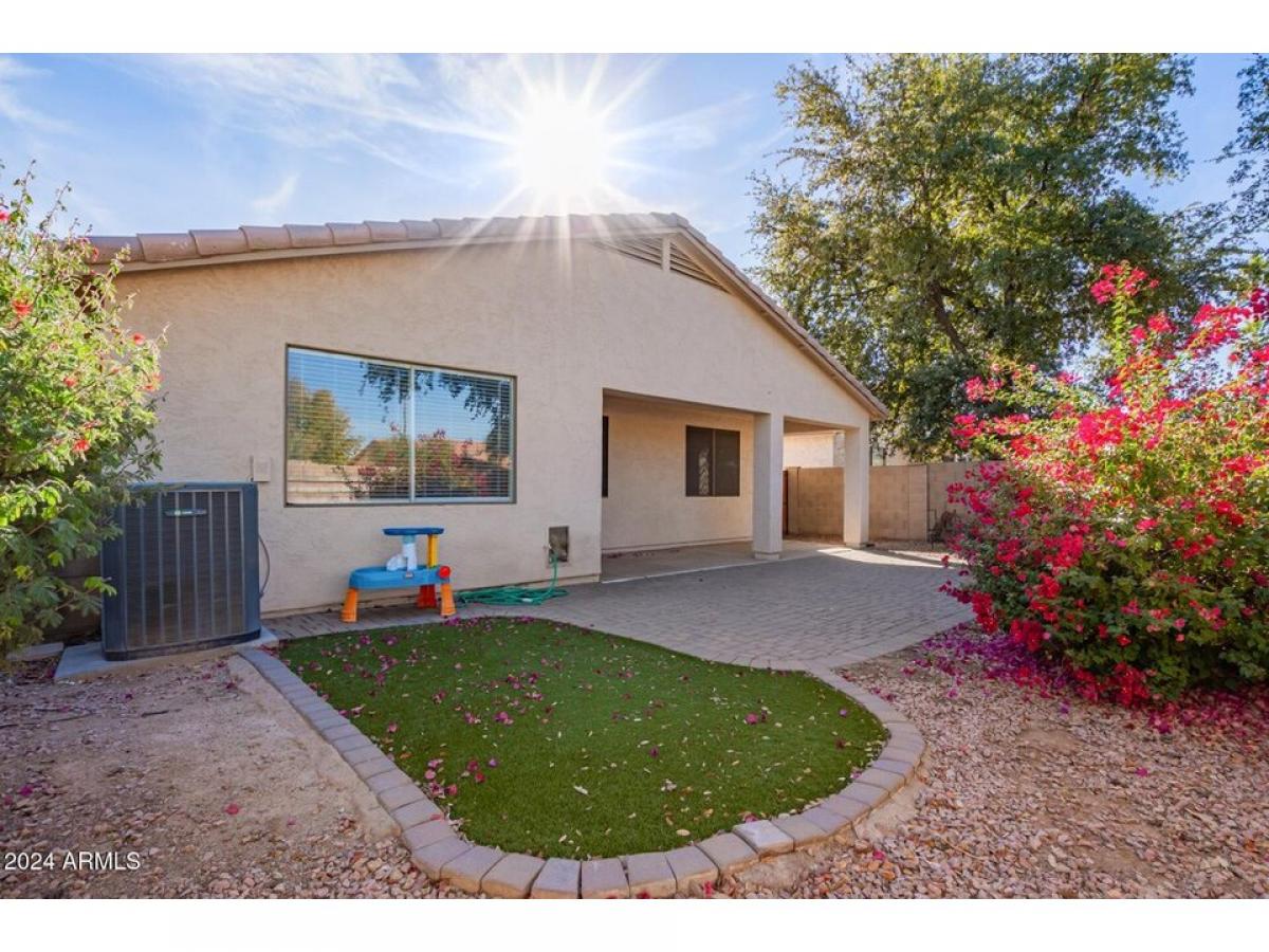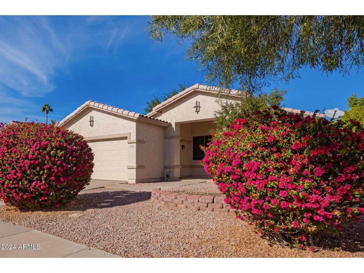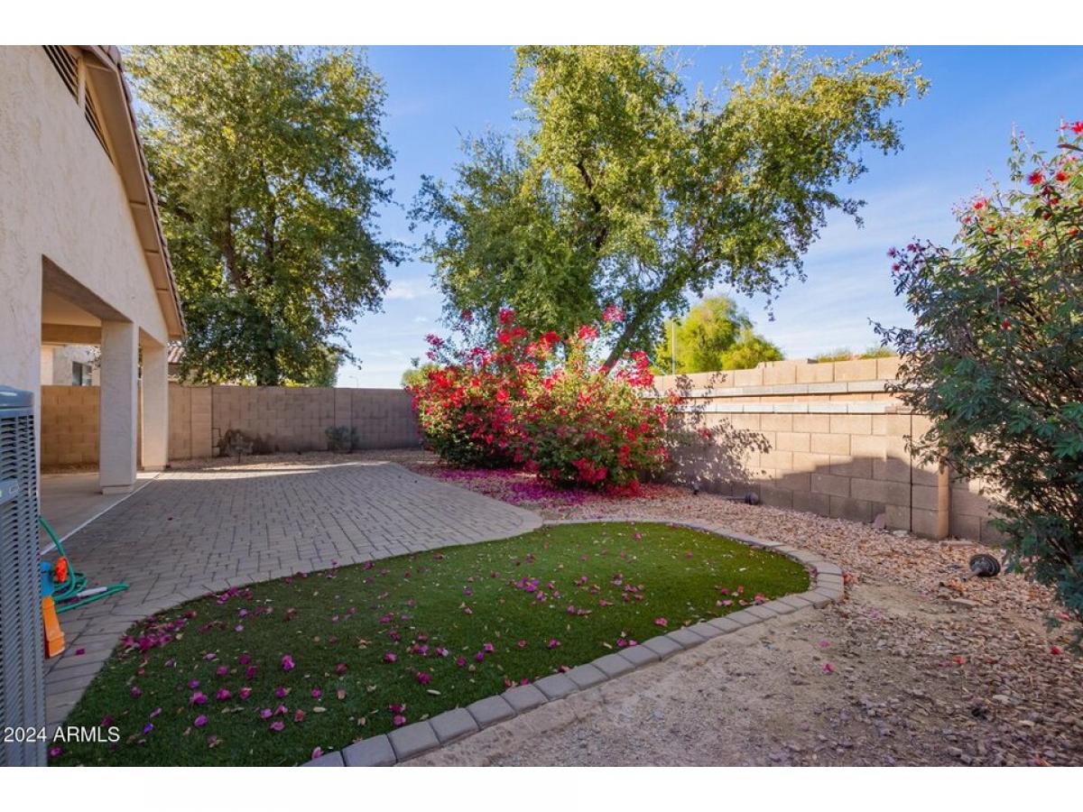 BUYER INCENTIVE! $11k towards closing costs or RATE BUY DOWN! This charming Garden Lakes 3 bedroom features fresh paint amp; carpet, and stylish fixtures amp; hardware throughout! Enter to high ceilings, modern lighting, and wood-look flooring. Gather loved ones in the great room, which includes French doors to the backyard and brick look accent wall in dining room. Delightful kitchen sparkles w/sleek quartz counters, including peninsula with breakfast bar, crisp white cabinetry with crown moulding, recessed lighting, tile backsplash, SS appliances, and pantry. All hard surface flooring, except bedrooms offering fresh plush carpeting. Enjoy stylish bath vanities, fixtures amp; lighting. Relaxing backyard, showcasing expansive covered patio, stylish pavers, artificial turf amp; mature bushes.