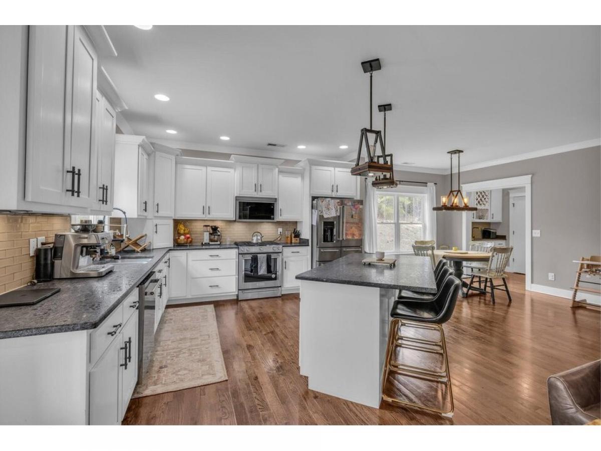 Welcome to this charming, one-level home in the highly desirable Old Thacker Plantation neighborhood in Soddy Daisy. With a partially finished basement and a spacious, open floor plan, this home offers both comfort and style. Step up to the inviting rocking chair front porch and enter into a wide foyer that leads into the heart of the home. Gleaming hardwood floors flow throughout the family room, kitchen, dining area, wet bar, and primary suite, enhancing the open, airy feel. The family room features a cozy gas log fireplace with custom built-ins, offering the perfect spot to unwind. The kitchen is a chef#039;s dream, complete with a large eat-up island, brand new Energy Star appliances, and ample counter space. It#039;s open to the dining room and a convenient wet bar, ideal for entertaining. The spacious primary suite, located just off the family room, offers enough space for a sitting area, making it a perfect retreat. The ensuite bath is equipped with a large custom shower and a generous walk-in closet. Two additional well-sized bedrooms are located at the front of the home, both carpeted, with a full bath conveniently located between them. A massive laundry mud room is located just off the two-car garage, making organization a breeze. Enjoy outdoor living on the oversized, covered deck, which overlooks a large, fenced-in backyardmdash;perfect for privacy, relaxation, or hosting gatherings. A mounted flat-screen TV currently graces the space, ideal for family entertainment (please note, the TV and speakers are not included, but the mount will remain). This home features an energy-efficient HVAC system, only a year old, as well as Energy Star-rated appliances, a tankless water heater, and a smart Nest thermostat. Below the home is the partially finished basement that is accessed from the side yard and currently serves as an exercise room, complete with a brand new mini-split for comfort. This space could also easily be transformed into a workshop or additional storage. The Ring doorbell, and a smart Nest thermostat both will will remain with the property. Don#039;t miss your chance to own this stunning home in a peaceful, family-friendly neighborhood. Schedule your private showing today! *Items that do not remain are the the 3 TV#039;S, the ring outdoor security camera, the curtains and the speakers that are hung on the back deck.