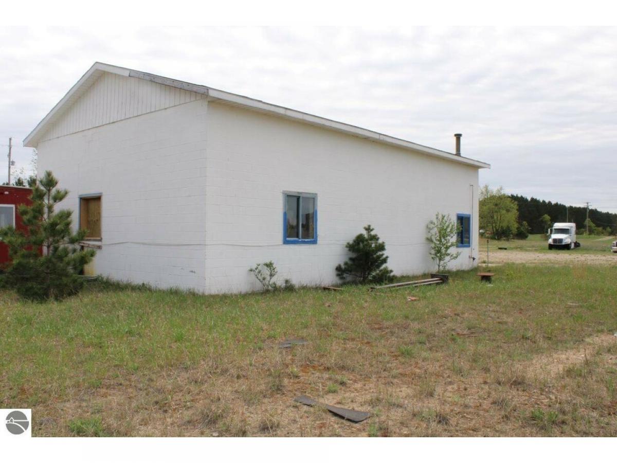 Located just South of Mancelona on high visibility US-131. 30' x 50' block building with 14' + ceiling height & 13' + height overhead door (13' x 12'), 225 amp breaker panel, 5" well . Previous years has been used as Mechanic shop for big equipment ( Semi's, Oilfield Rigs etc). Many Possibilities.... Seller would consider Land Contract for Qualified Buyer, with 25 % + downpayment ( $ 45,000 +, 15 yr term, 7 % interest) ... Note: Perimeter of property appears to be marked with pipe. Year built is estimated.