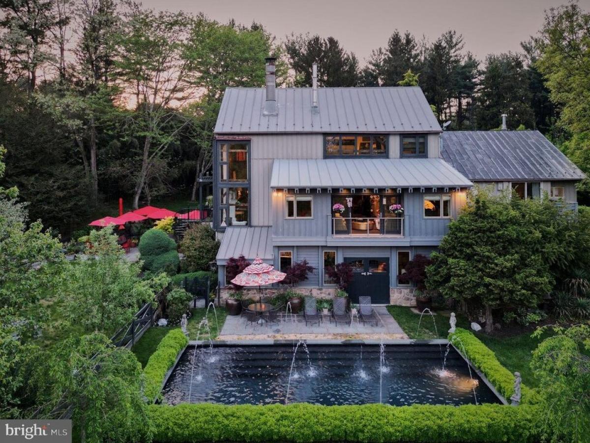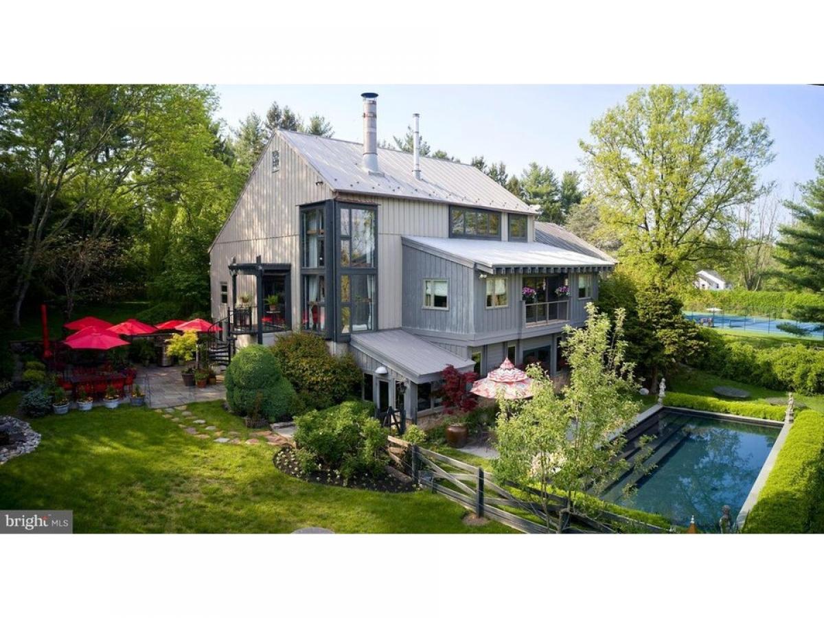 This stunning barn conversion seamlessly blends rustic charm with modern luxury. The barn and farmhouse date back to 1710. The character of the original barn has been carefully preserved featuring the original exposed beams and magnificent stonework. Upon entering the home, you are greeted by a spacious open and flexible living area with soaring ceilings and large windows that flood the space with natural light. There are also radiant heated hard wood floors throughout this level. This designer decorated home is available fully furnished. A beautiful bright gourmet kitchen boasts high end appliances, a large center island and lots of counter space and custom cabinetry. The living room is spectacular with a magnificent Rumsford fireplace at its center. There is also a large dining area surrounded by windows overlooking the gardens. This floor also has a well-sized office and a full bath. The stone walls, wood beams and radiant heated floors continue to the lower level featuring an amazing primary suite which includes a large bedroom, gorgeous marble bathroom with mother of pearl mosaic floors, glass shower and soaking tub. A dressing hall features rows of closets and there is a sitting/dressing room with beautiful lit cabinetry. A balcony works perfectly as a home gym overlooking a sunroom and double doors out to the pool and gardens. The second floor includes 2 guest suites and a full bath. The third floor has an interesting, cozy space for either an additional bedroom or home office. The home also includes a completely private one-bedroom guest apartment with a full kitchen, living room and deck overlooking the gardens. The apartment is accessible from either inside the home or through its own private entrance with an elevator. Step outside to discover the extensive lush gardens and mature trees, creating a peaceful escape. The expansive Blue Stone terrace with outdoor kitchen is ideal for seasonal al fresco dining while overlooking the swimming pool complete with eight fountain heads. There is also a koi pond with waterfall and magnificent illuminated gardens. A tennis/pickle ball court completes the outdoor amenities. The home is conveniently located with a wide variety of shopping and dining options minutes away. Drive time to Princeton is 20 minutes, 40 minutes to Philadelphia and 70 minutes to NYC while the nearest train station is a 20-minute drive. Behind the gated entrance, Eight Bells is truly a private oasis located in one of Bucks Countyrsquo;s most prestigious/upscale towns. A perfect getaway retreat, this property promises a lifestyle of elegance and tranquility.