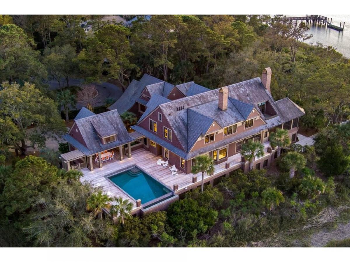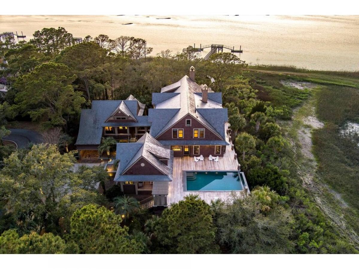 Nestled on approximately 1.5 acres of pristine Kiawah Island landscape, 108 Salthouse Lane is a private sanctuary offering an unparalleled blend of seclusion and panoramic beauty. Built by Buffington Homes, its slate roof and cedar shake siding harmonize perfectly with the natural surroundings. This one-owner residence is thoughtfully integrated into its environment, boasting breathtaking, unobstructed views of the Kiawah River and marsh, with a picturesque glimpse of The River Course#039;s 17th hole. An expansive deck with frameless glass railings invites you to immerse yourself in the ever-changing Lowcountry scenery. Designed for both intimate living and grand entertaining, this exceptional compound features a main residence with attached and detached guest houses, providing ample space for family and friends. The residence, offering both attached and detached guest houses, is truly unique in its ability to offer both intimacy for everyday living and ample space to host family and friends in an unforgettable setting. Outdoor living is elevated with a shared, private deep-water dock ideal for exploring the river, as well as an oversized infinity-edge pool with a summer kitchen and pool bathroom, creating a true outdoor oasis. A screened porch complete with a fireplace and stone spa, extends enjoyment into every season. The main residence showcases architectural elegance with transom-topped, oversized windows and French doors, a grand foyer with a striking staircase, and a spacious great room featuring coffered ceilings and sweeping views. A gourmet kitchen, butler#039;s pantry, and elegant dining room cater to sophisticated entertaining. The main level also includes a luxurious primary suite, while upstairs provides four ensuite bedrooms, one of which opens to a private balcony with breathtaking river views, a well-appointed bunkroom, a loft sitting area, and an office. Designed for both convenience and accessibility, the home includes two elevators, a three-car garage with a guest suite above, and a separate guest suite with its own washer/dryer. Additional features include covered walkways, wired for a Control4 Smart Home System, and premium exterior finishes that blend durability with timeless coastal charm. Located in The Settlement at Kiawah Island, this home includes access to the exclusive Kiawah Island Club, offering championship golf, tennis, a deluxe spa, an oceanfront beach club, fine dining, and exclusive social events. 108 Salthouse Lane is more than a home, it#039;s a retreat where luxury meets nature, offering an exceptional lifestyle on Kiawah Island. (Kiawah Island Club Membership is a condition of purchase.)