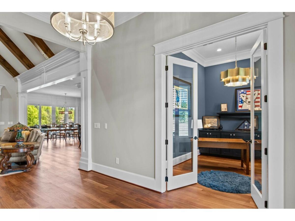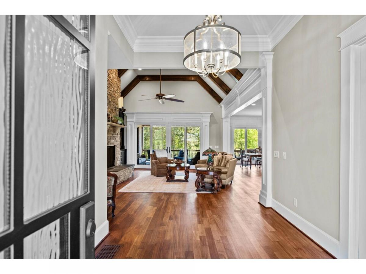 Welcome to your dream lakefront retreat! Nestled on nearly 5 acres of pristine land in a gated community, this is a true rarity at Lake Oconee. This custom-built lake masterpiece promises unparalleled privacy and boundless potential, offering the unique opportunity to create your very own private resort with space for a large pool, pool house with guest suite, and more! Elegance and sophistication define the 5-bedroom haven, where quality craftsmanship and an open-concept design harmonize to create an inviting ambiance. You are welcomed by a large foyer adjacent to a stunning office. Brazilian teak floors throughout grace this home. The great room, warmed by a striking stacked stone fireplace, serves as the perfect gathering spot, leading out to expansive, covered porches that offer breathtaking views of Lake Oconee and a beautifully level backyard. The main level is enhanced with a luxurious primary suite with a sun room overlooking the lake and features a spa-like primary bath, while a second bedroom suite offers comfort and convenience. The heart of this home is the gourmet kitchen, boasting a magnificent quartzite island and outfitted with state-of-the-art appliances including Bosch double ovens, a Thermador stove, and a Bosch refrigerator for culinary excellence. Additional highlights include a pot filler and beautiful custom cabinetry. Ascend to the second level, where 3 additional bedroom suites present serene lake vistas, each a sanctuary of peace and tranquility. Car enthusiasts and outdoor adventurers alike will appreciate the spacious 3-car garage, providing ample room for vehicles and a golf cart. This home is conveniently situated just 10 minutes by boat from the luxurious Ritz Carlton and a mere 5 minutes from the renowned Jumping Rock. It also features a spacious, private composite dock equipped with a boat lift. The property's unique allure is enhanced by a scenic walking trail leading to a community fishing pond, with the property line facing the pond, presenting endless possibilities for expansion, be it an extended living space or accommodations for multigenerational living. This lakefront gem is a rare find, especially with such expansive acreage, promising a lifestyle of luxury, privacy, and connection with nature. Seize the opportunity to own a piece of paradise in Lake Oconee.