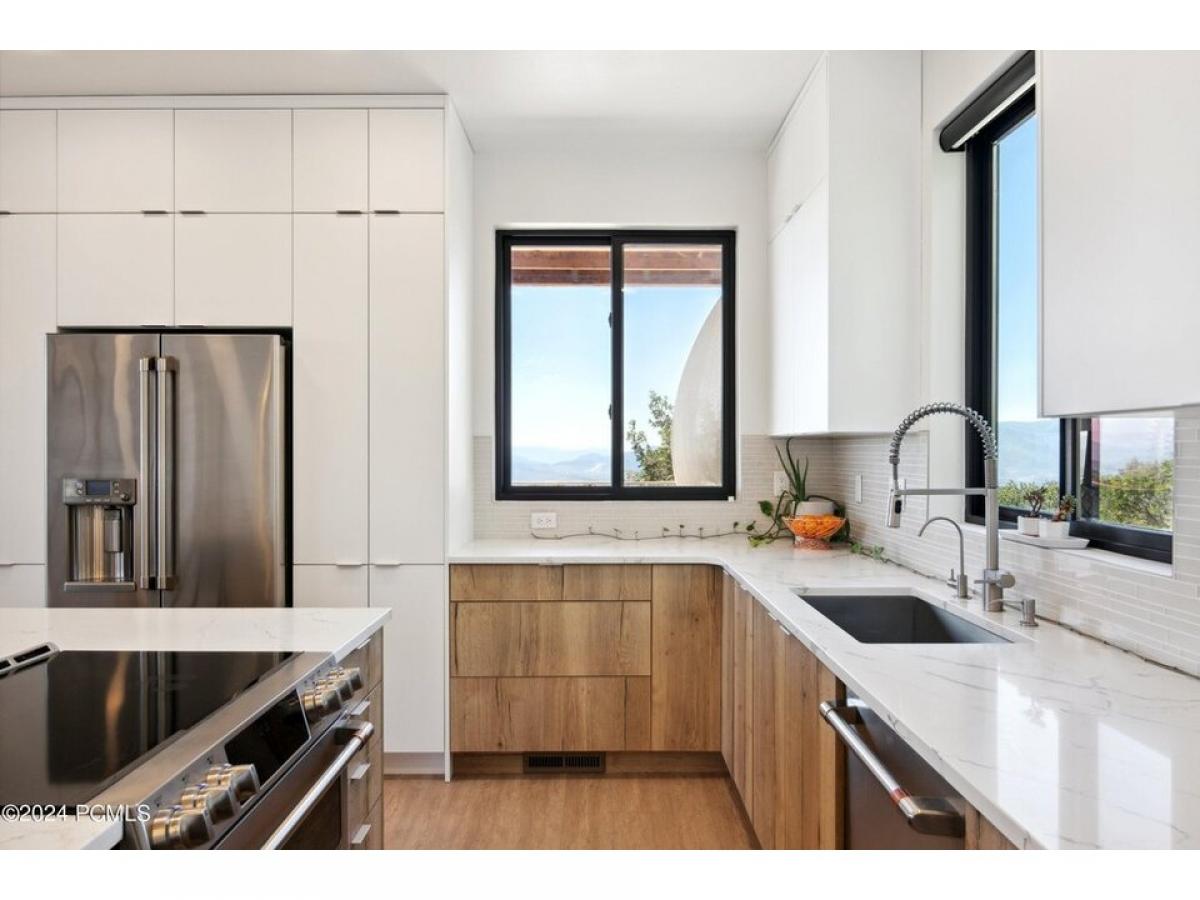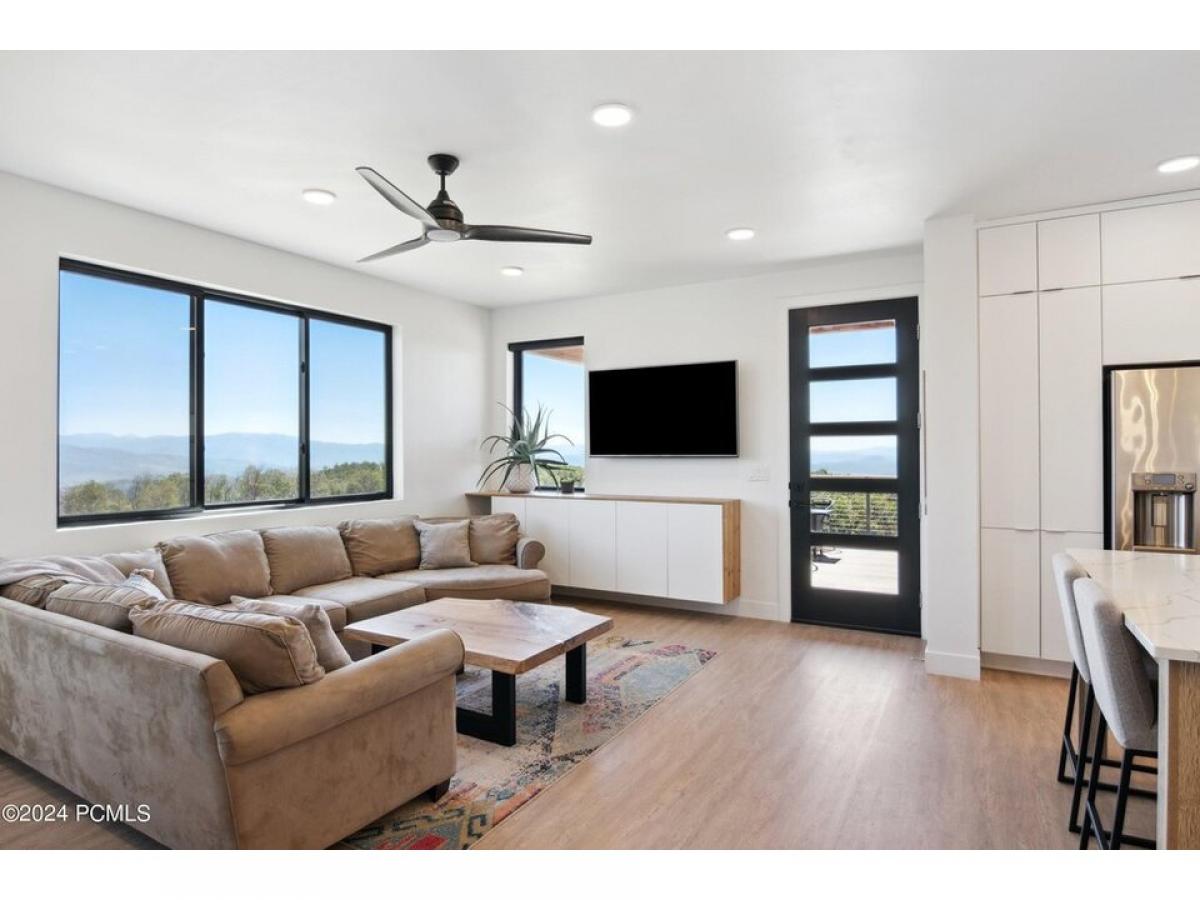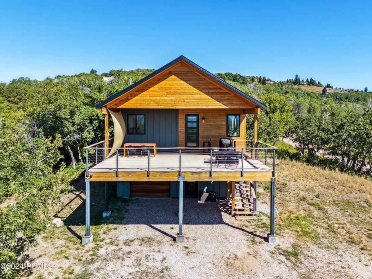 This stunning mountain modern property offers unparalleled views of all three Park City ski resorts and the Uinta Mountains, with a design that maximizes every inch of its breathtaking surroundings. The oversized covered deck serves as an extension of the living room and kitchen, perfect for entertaining and enjoying the views year-round. This all-electric home features an efficient heat pump HVAC system, providing both heating and rare AC for mountain homes. Solar gain throughout the day helps keep the interior warm in winter, while the smart layout ensures low utility costs. Key interior highlights include a gourmet kitchen with an induction cooktop, heated bathroom floors, a generous primary suite and walk-in closet. The garage (yes, this home has an attached garage!) is a versatile space, doubling as a workshop or gear room, with covered parking available below the deck. Structurally engineered for snow and wind loads, the home was built for all season living with an emphasis on winter preparedness. With its sleek metal roof design, easy driveway, and cement siding, you have the perfect blend of comfort, functionality, and natural beauty. Located in a recreational paradise, enjoy hiking, skiing, and more right out your back door, with world-class skiing and fishing just 20 minutes away. Wildlife sightings and stunning sunsets are everyday experiences here.