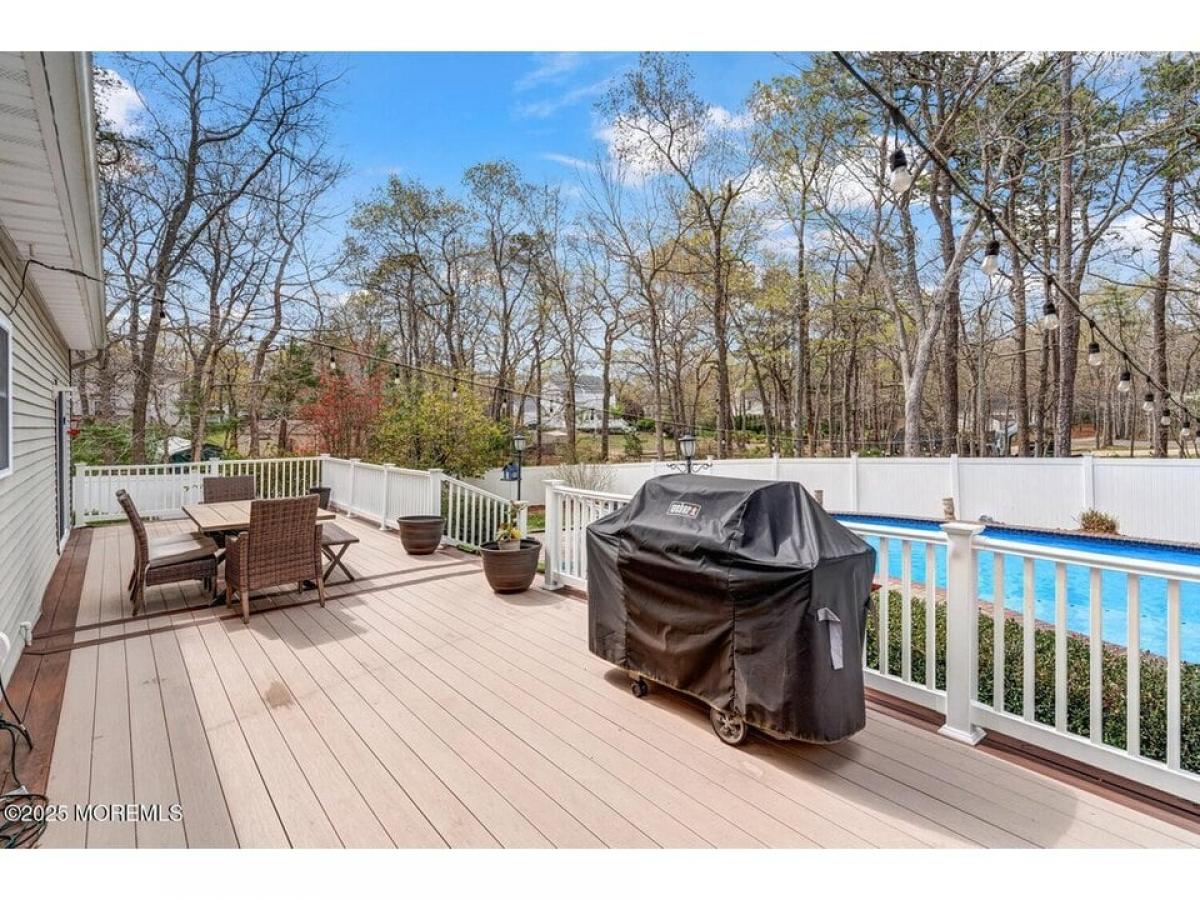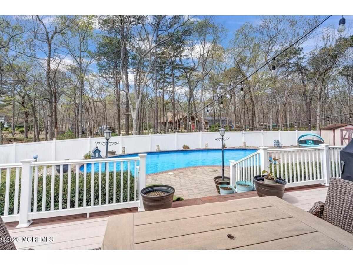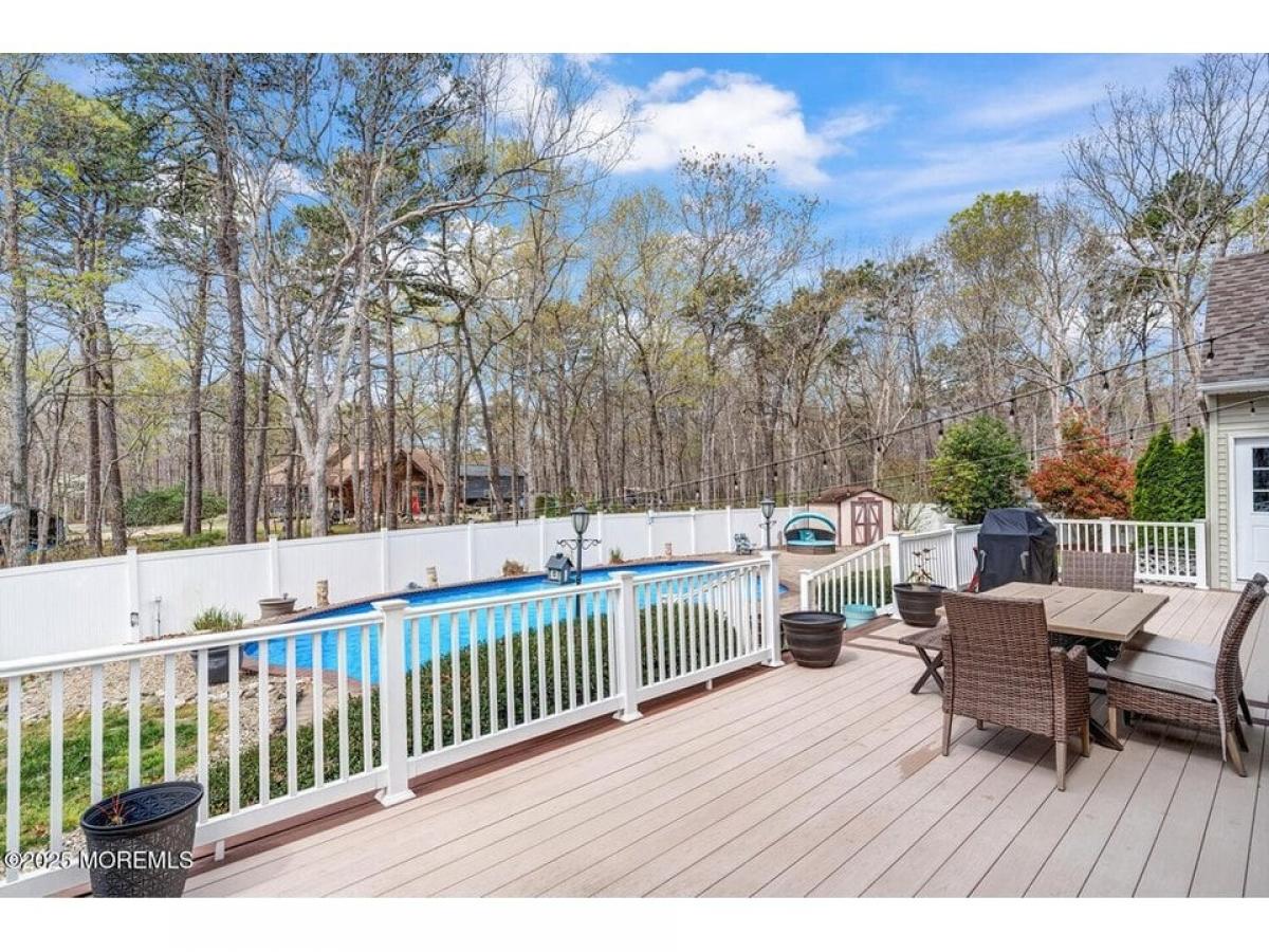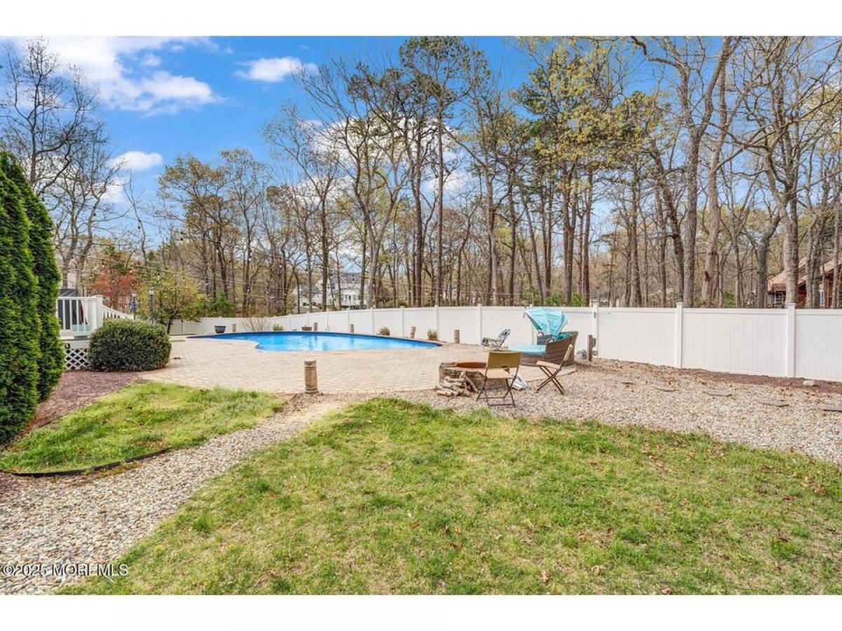 Colonial nestled on 1.08 acres on the peaceful and rural street, Laurel Hill Lane in West Creek. Thoughtfully designed with a spacious floor plan, this home features a desirable first-floor main bedroom suite complete with a soaking tub, stall shower, double vanity, large walk-in closet amp; additional closet, sliding doors leading directly to the back deck overlooking the beautiful heated in-ground saltwater pool. Inside, you#039;ll find generously sized rooms, including a large living room, a family room with vaulted cathedral ceilings, and a huge kitchen outfitted with a center island topped with granite countertopsmdash;perfect for everyday living and entertaining. Upstairs boasts four additional bedrooms, a full bath, and excellent storage space in attic coves. Step outside to your own backyard oasis, featuring a fully fenced yard, pavered patio, fire pit, and storage shed all offering an ideal setting for gatherings or peaceful relaxation. The two-car garage and wood floors throughout the first floor add comfort and convenience. Located just a short drive from the Long Beach Island beaches, regional shopping, and a variety of local restaurants, this home combines serene country living with modern amenities and accessibility. Location is amazing.