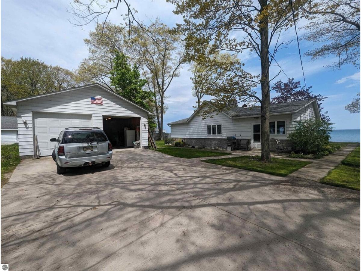 121' of gorgeous sandy beach along the shores of Lake Huron await with this lakefront listing! Offering almost 350' of depth, this property gives space and privacy. The main home offers two bedrooms including a primary bedroom w/ a walk-in closet and private bathroom w/ a great view of the water! Other features includes view from the kitchen and living room that also has a fireplace, city water, natural gas, deck, and basement for storage and mechanicals. There is a bonus guest house on this property that has two bedrooms, one bath, living room, and a kitchen for added living space! Looking for storage? This property offers a large detached garage w/ two 9' overhead doors and also a 30x50 building that is partitioned into two big rooms. Enjoy the expansive sandy beach with a lakeside boathouse that has a roof top deck for ultimate beachfront enjoyment!! Located in between Au Gres and the Tawases and a great view of the Charity Islands! The Lake Awaits!!