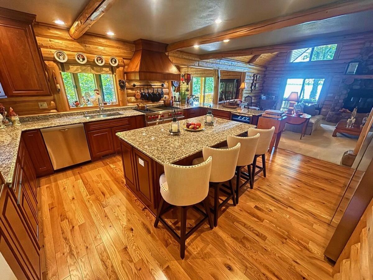 This one-of-a-kind, private retreat located on 3.5 acres with 178 feet of pristine frontage on Grand Lake offers everything you need for distinguished living and entertaining. From the spacious and open floor plan with soaring wood ceilings, the covered lakeside deck, two stone fireplaces with gas inserts, three bedrooms, each with a full bath, to the lake view family room with adjacent gourmet kitchen, your guests will be both welcome and delighted.You can easily provide memorable meals in the 2024 remodeled kitchen complete with Wolfe range, commercial grade range hood, drawer microwave, Bosch dishwasher, beverage refrigerator, spacious side by side refrigerator and island seating area with granite counter tops.* Continued in Private remarks*