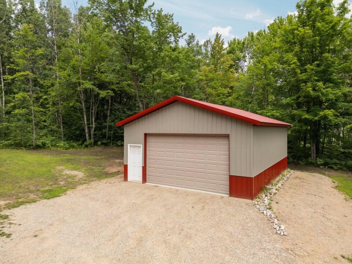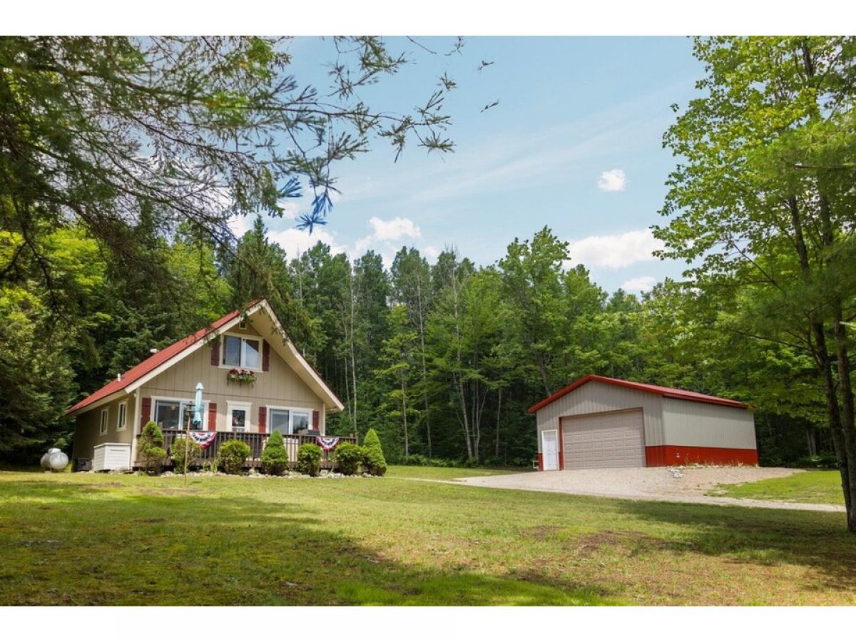 This 4 bedroom 2 bath home has been meticulously updated and easy on the eyes! Beautifully redone with a custom kitchen, flowing floor plan with tons of natural light. Durable vinyl plank flooring, granite counter tops, new appliances, carpet & paint. Detached garage (with electric), patio for entertaining. Situated on two wooded lots making this private and peaceful property one to enjoy. Amenities galore, 18-hole golf course, club house, dining, pool, trails, and more. This home uses all the space wisely and is a VIBE of its own for a full time residence or make it an investment property and rent it out! Schedule a showing today and seize the opportunity to own a great home with all the Lakes of the North amenities!